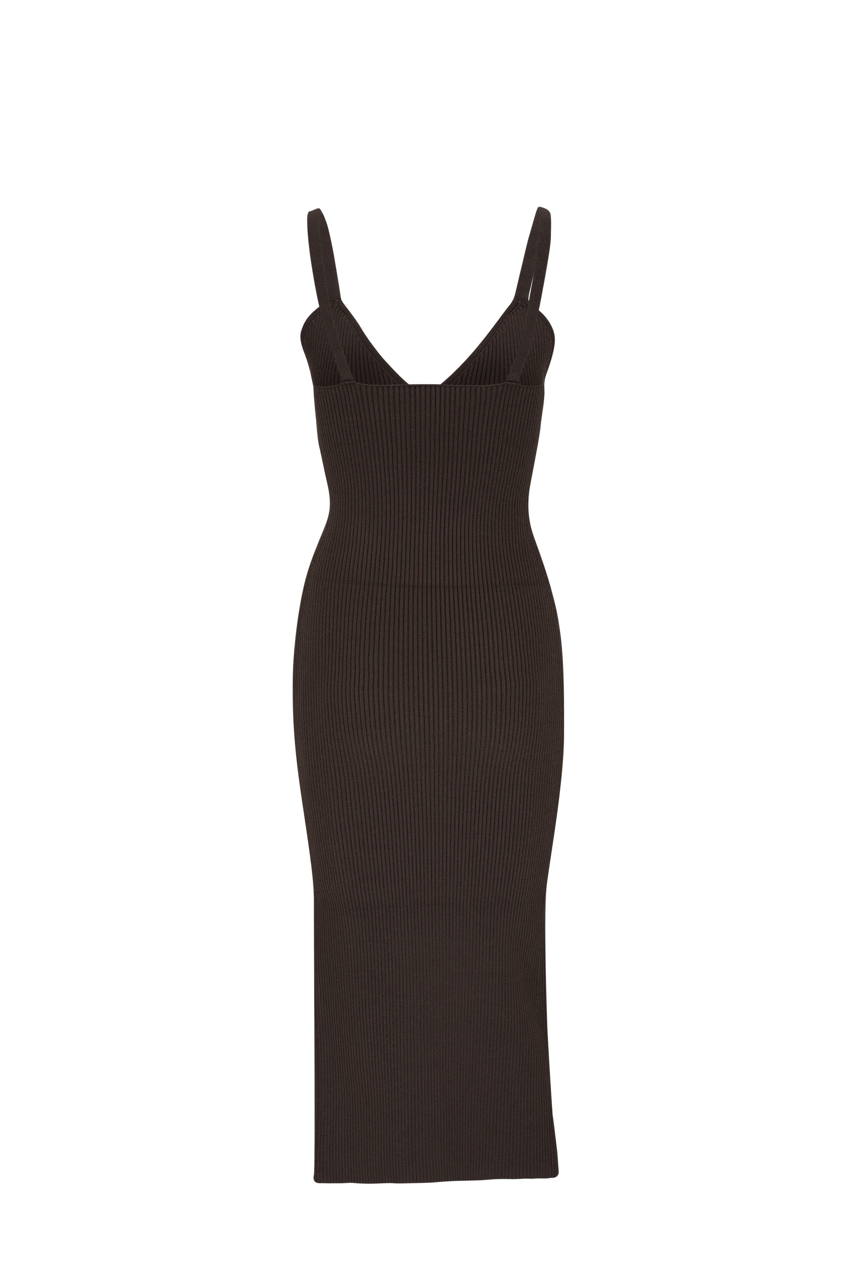 Chocolate Ribbed Stretch Crepe Slit Dress