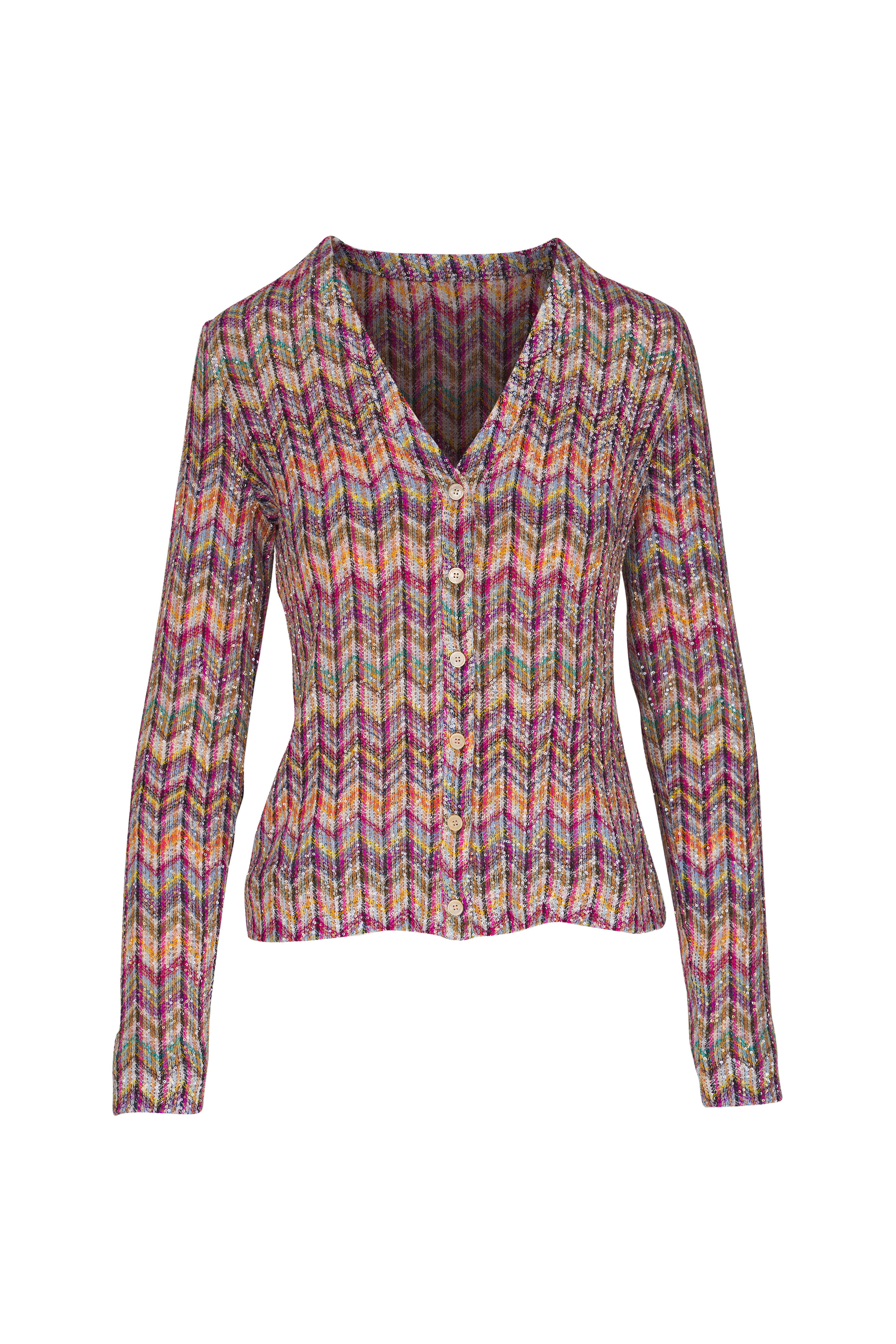Multicolor Cheveron Button Cardigan