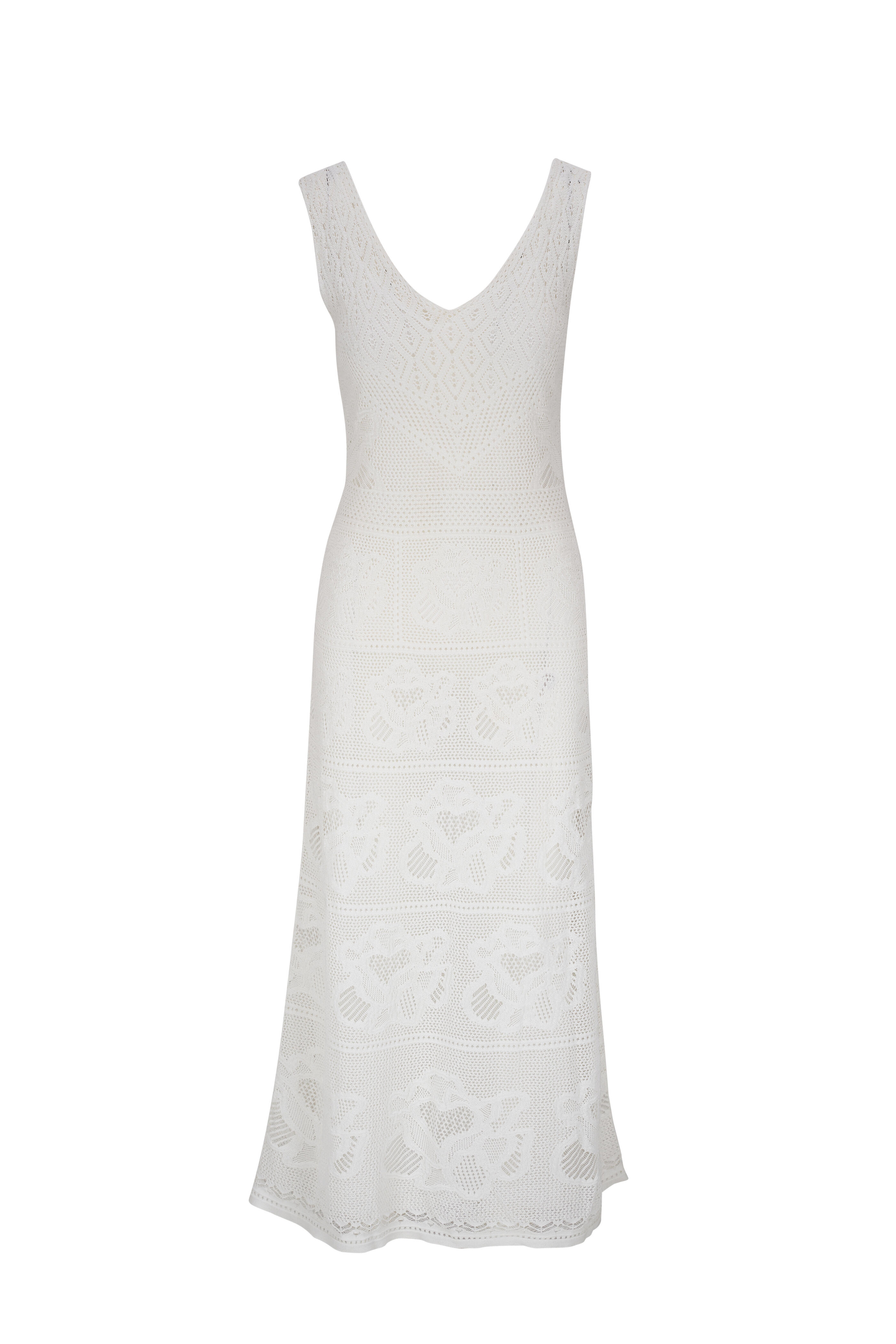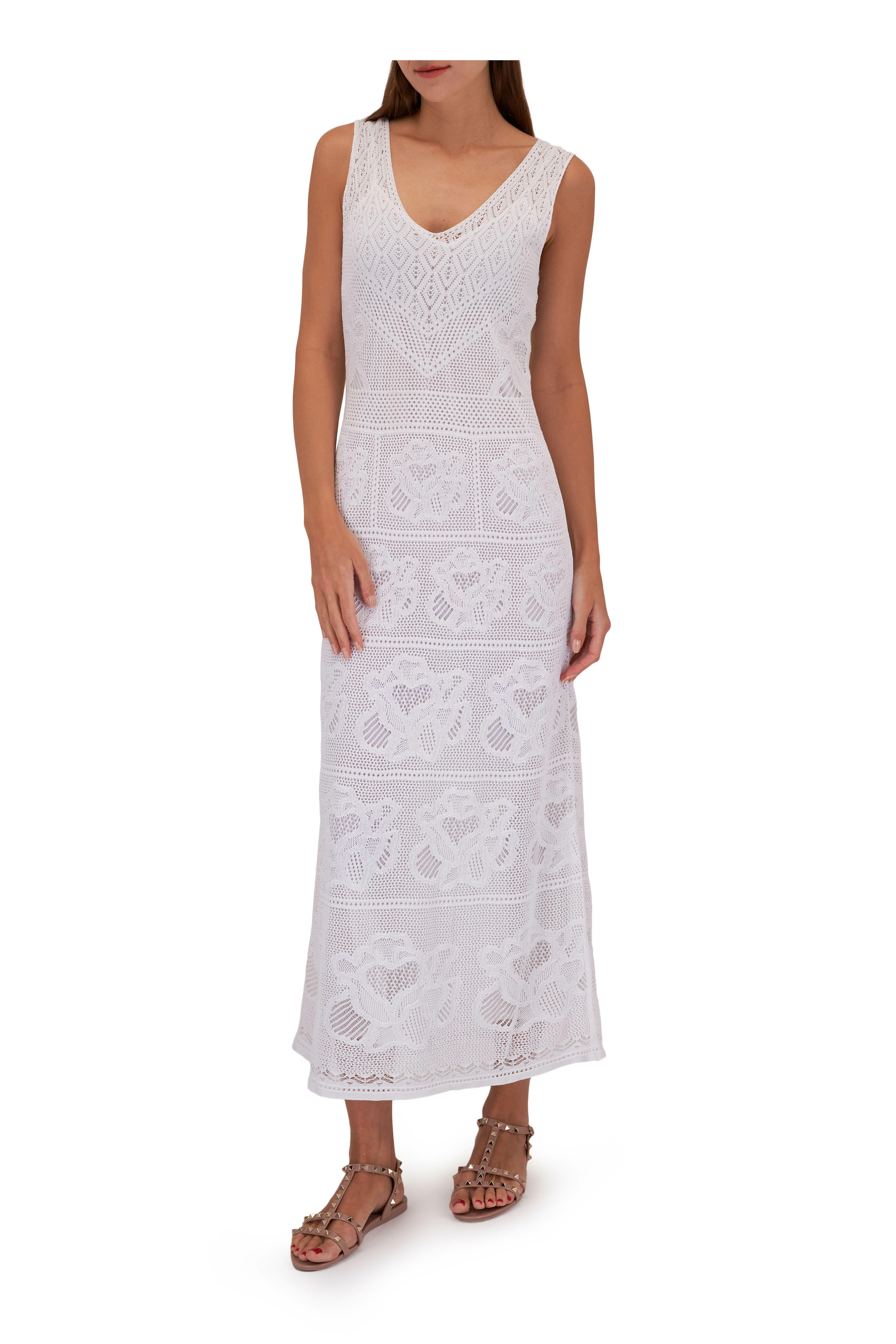 V-neckline. Slip-on style. Made in Italy. Approx. 54 ½” shoulder to hem. 80% cotton, 40% nylon; slip lining. Hand wash.