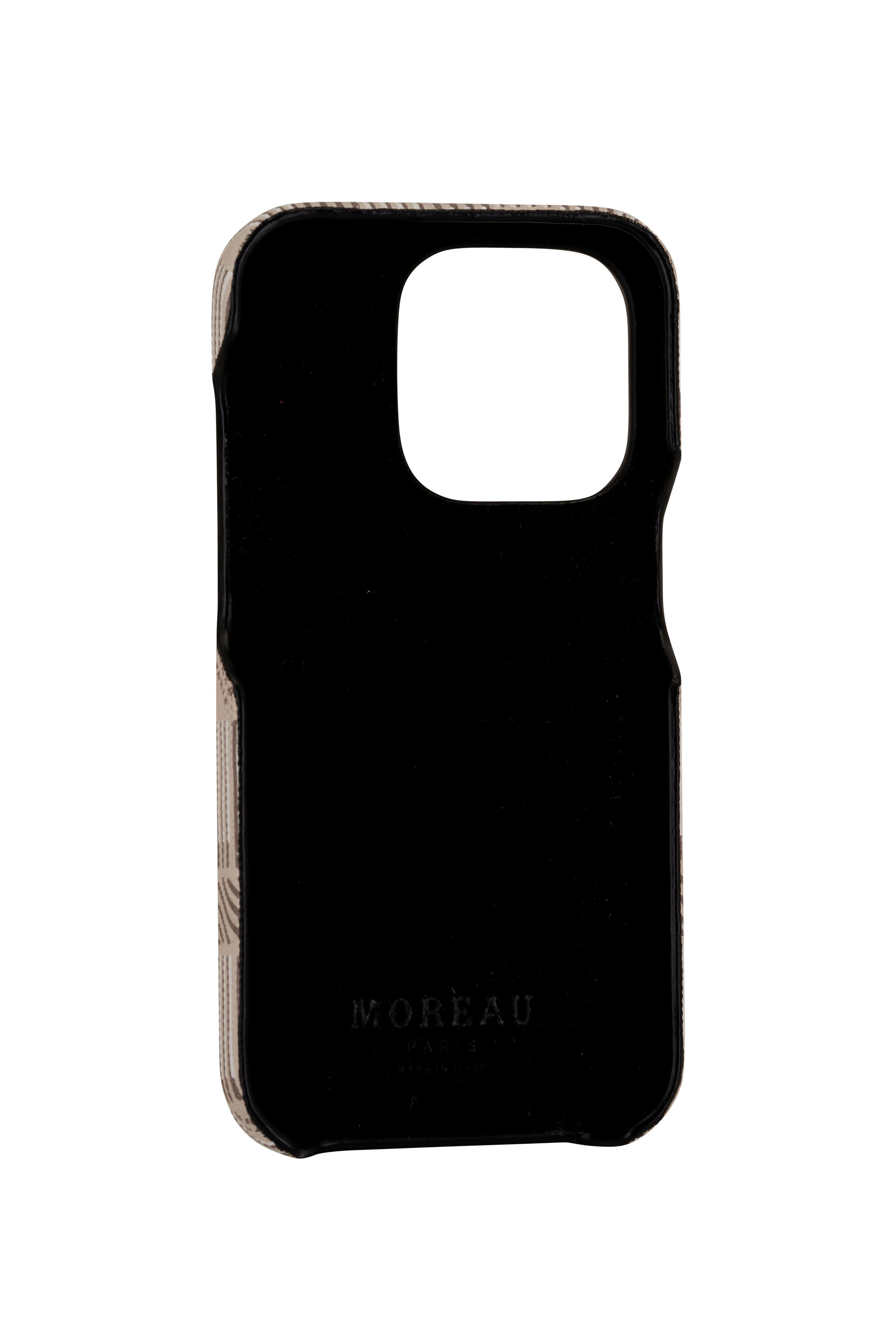 Moreaunette Canvas. For use with iPhone 14 / 14 Pro. Microfiber lining. Made in France. Color: Champagne. Width: 3". Height: 6". Depth: ½".