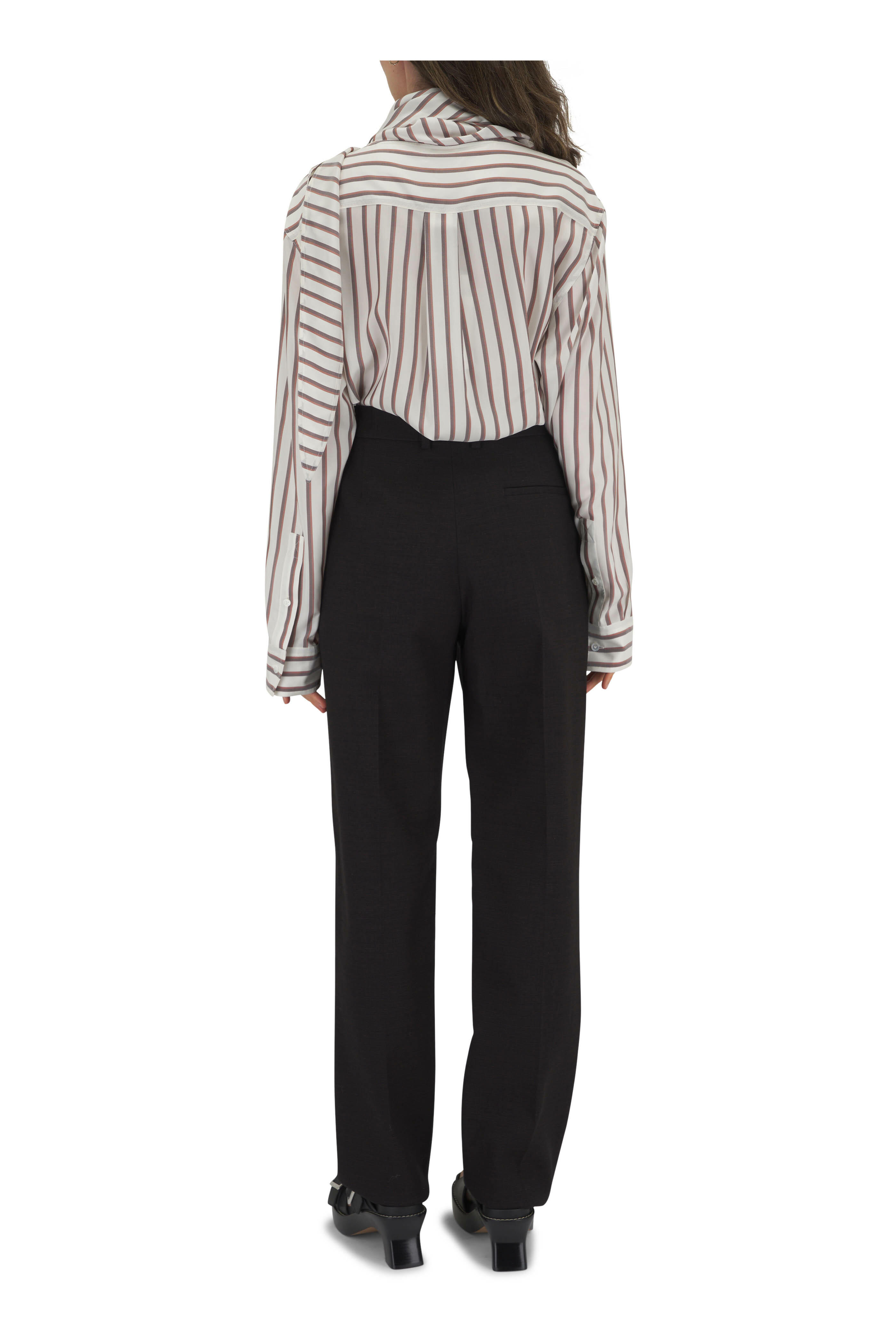 Zip fly with button and hook-and-eye closure. Side slash pockets; back welt pockets. Made in Italy. 36" inseam. 45% cotton, 45% viscose, 8% polyamide, 2% elastane. Dry clean.