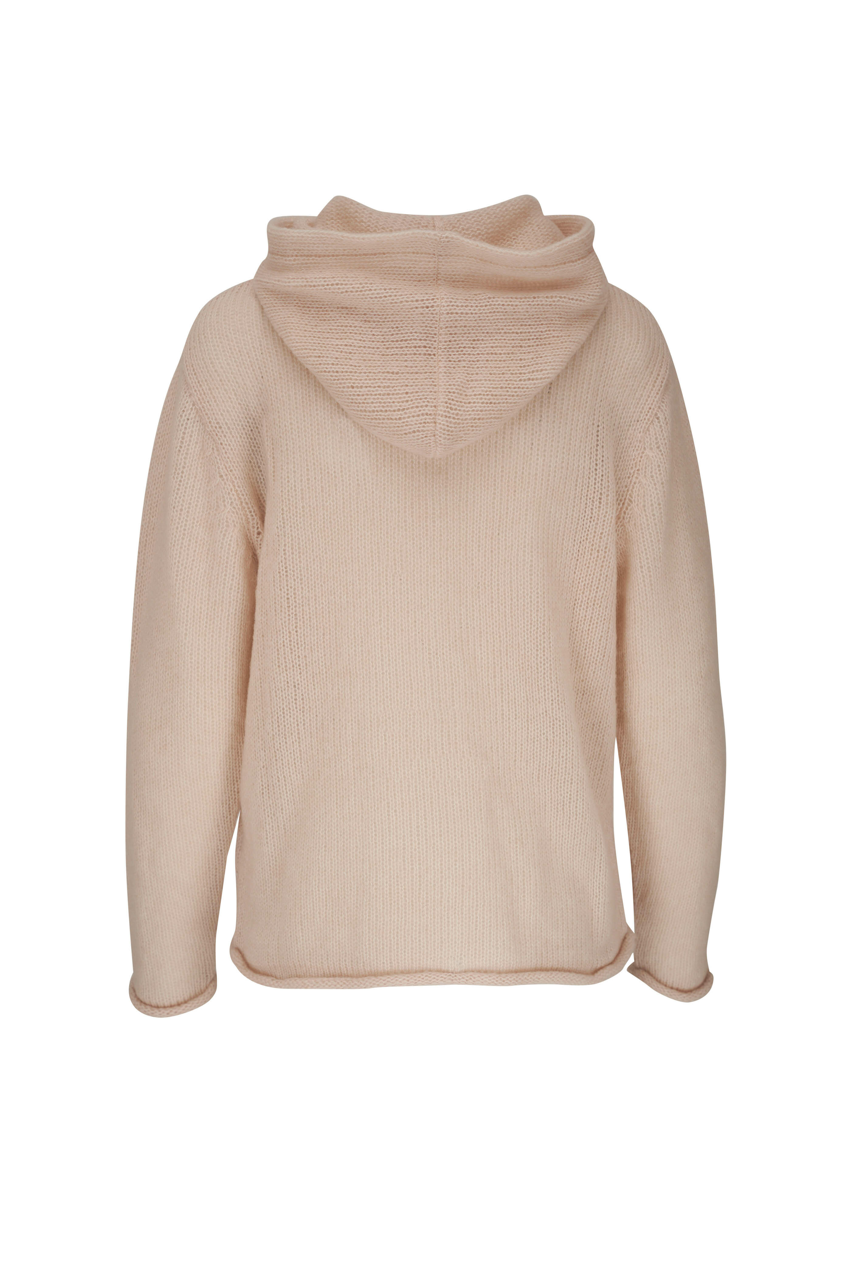 Fixed hood. Slip-on style. Rolled trims. Made in the USA. 63% cashmere, 37% cotton. Dry clean.