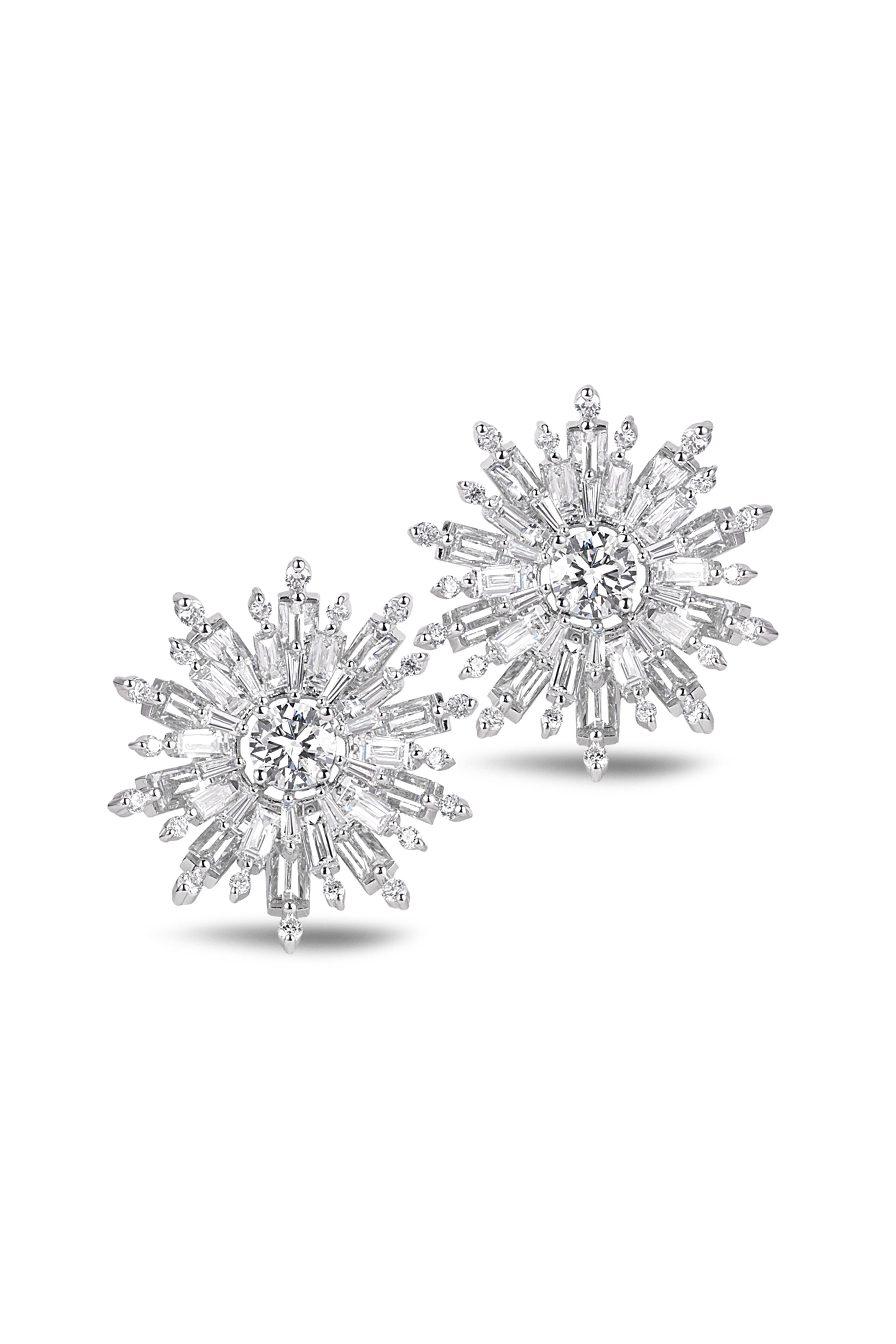 A sculptural reimagining of the stud, these multi-layered earrings showcase 3.40 carats of SI/VS-E quality baguette-cut diamonds radiating in a starburst motif, each “petal” accented with prong-set round diamonds. The vintage-meets-modern sensibility—classic with a twist—is signature Nam Cho. Finished with a collapsible post for pierced and non-pierced ears, they unite versatility with timeless brilliance.