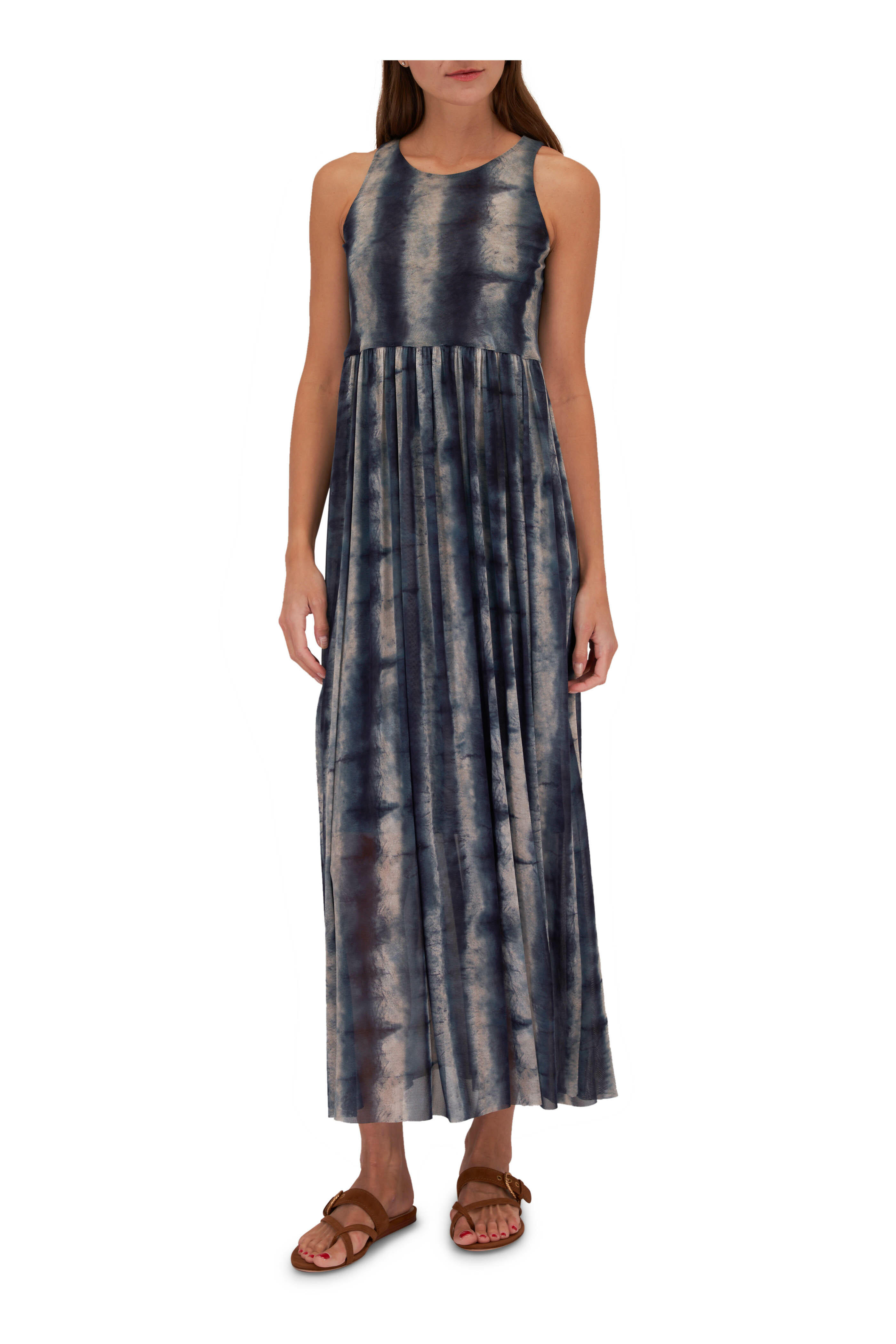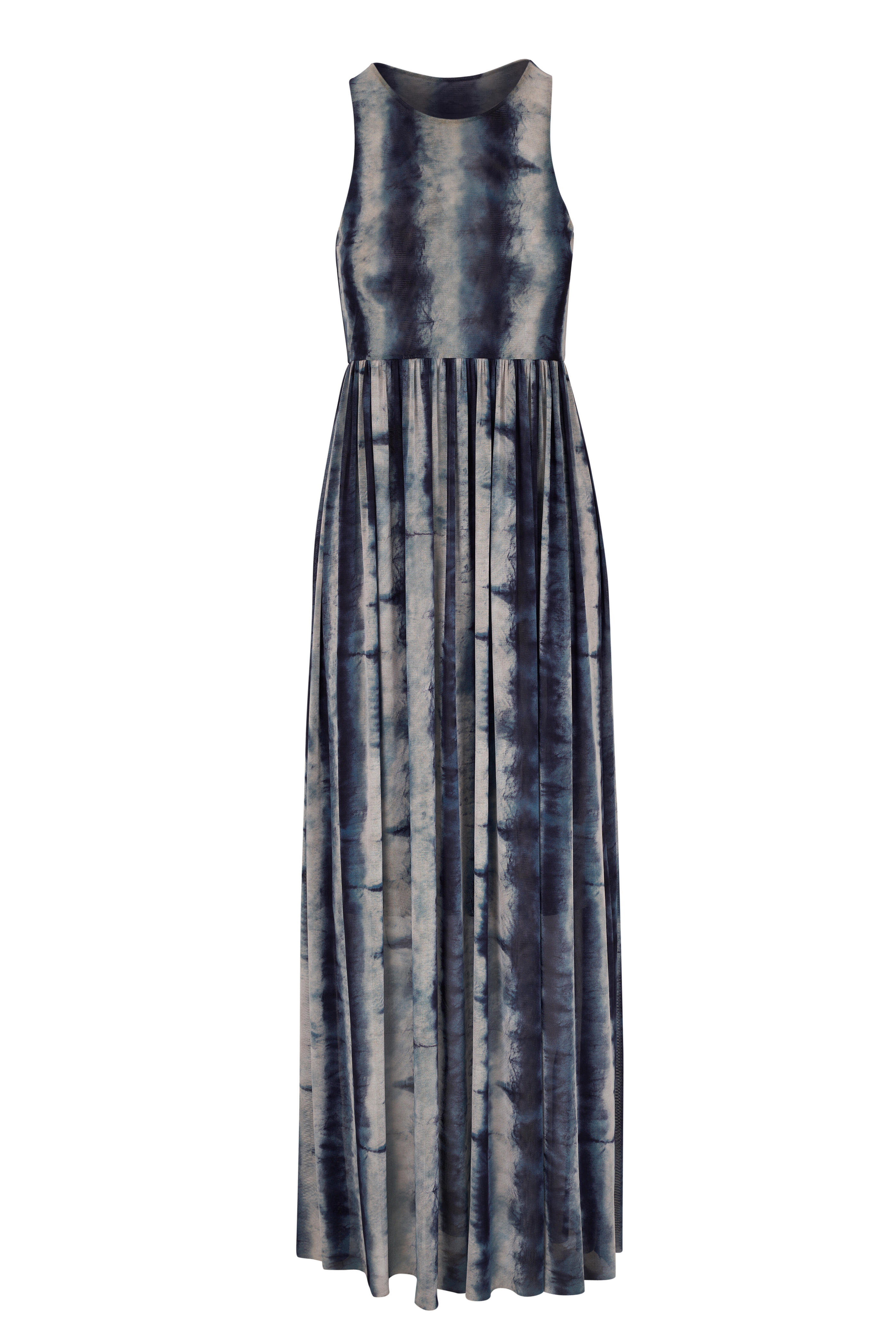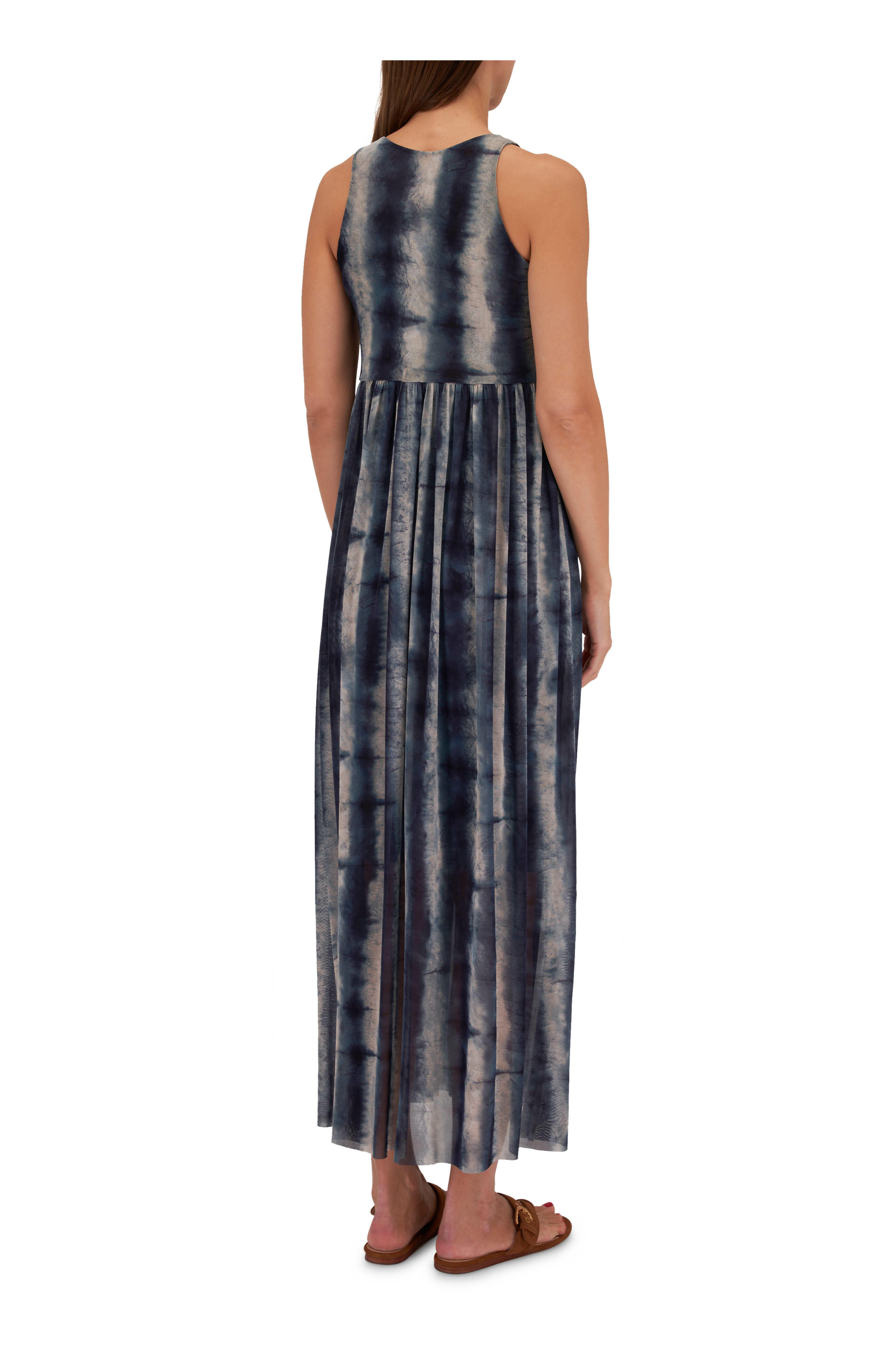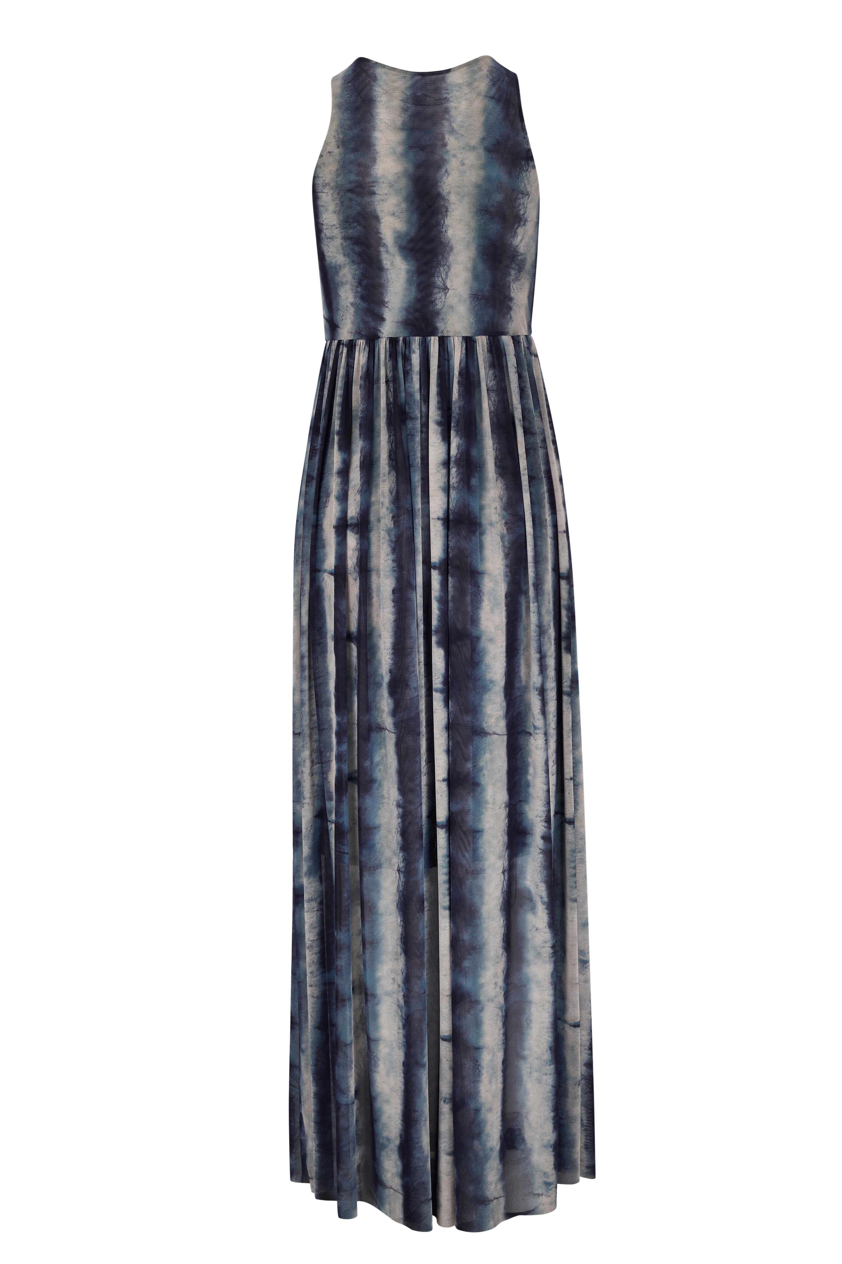 Ionic Blue Tie-Dye Print Tulle Maxi Dress
