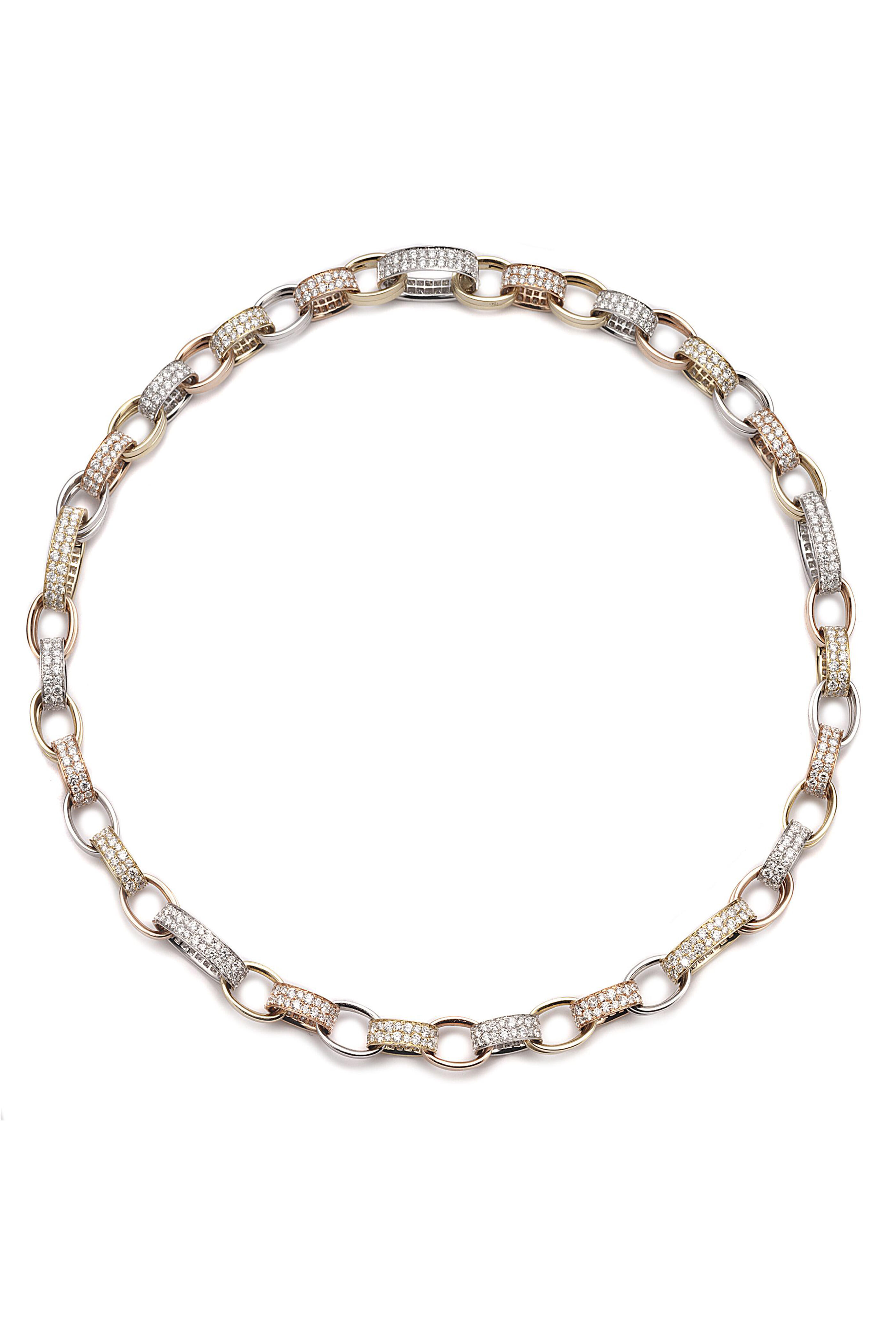 18K Yellow, White and Rose Gold. Round Brilliant Cut White Diamonds: 13.64CT. Measures: 17" Long. designer will customize length upon request.