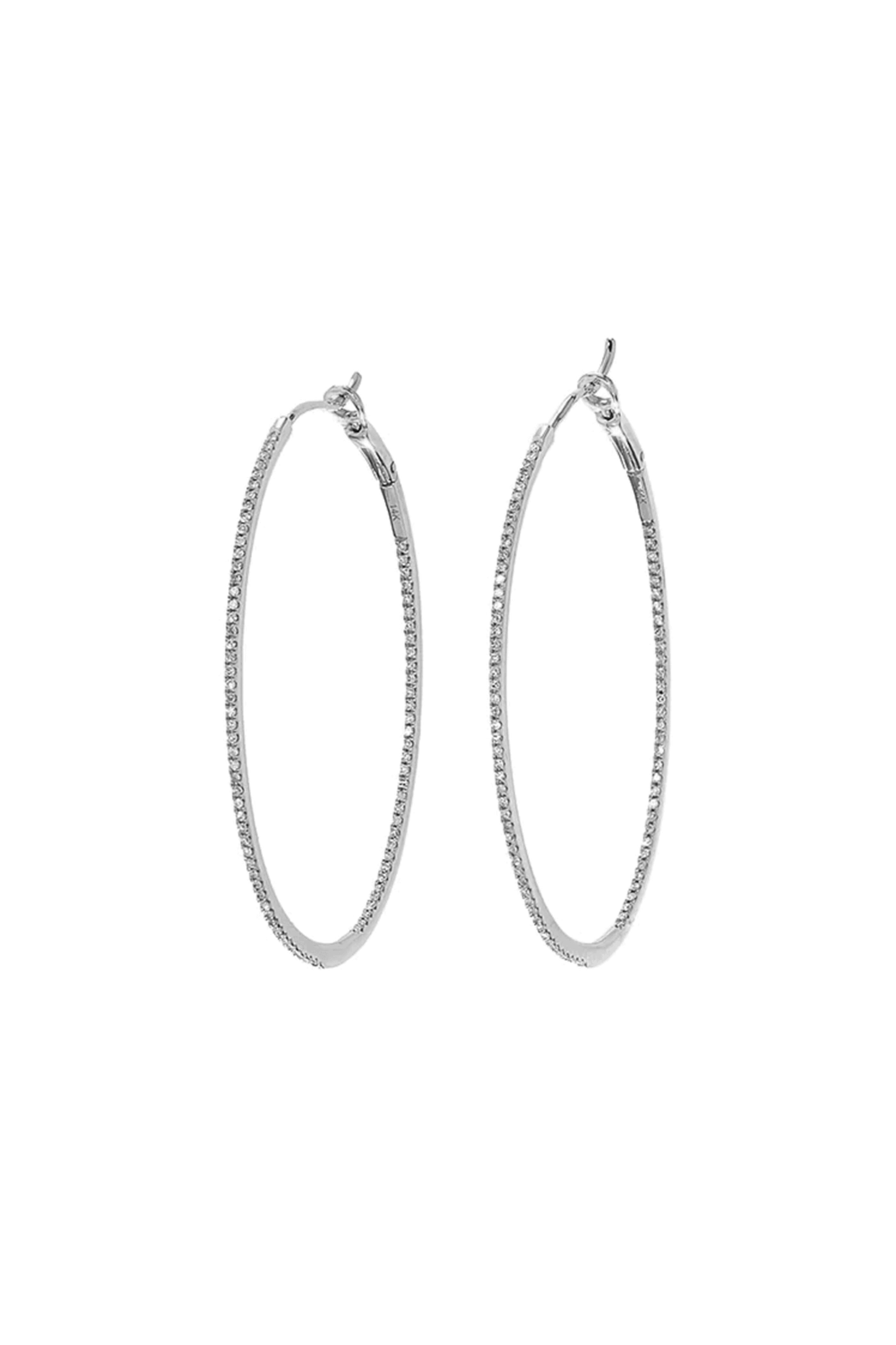 Kai Linz Medium Diamond Hoop Earrings. 14k white gold. Diamond. Hoop style. Lined with pavé diamond. 1.25 D. Latch back.