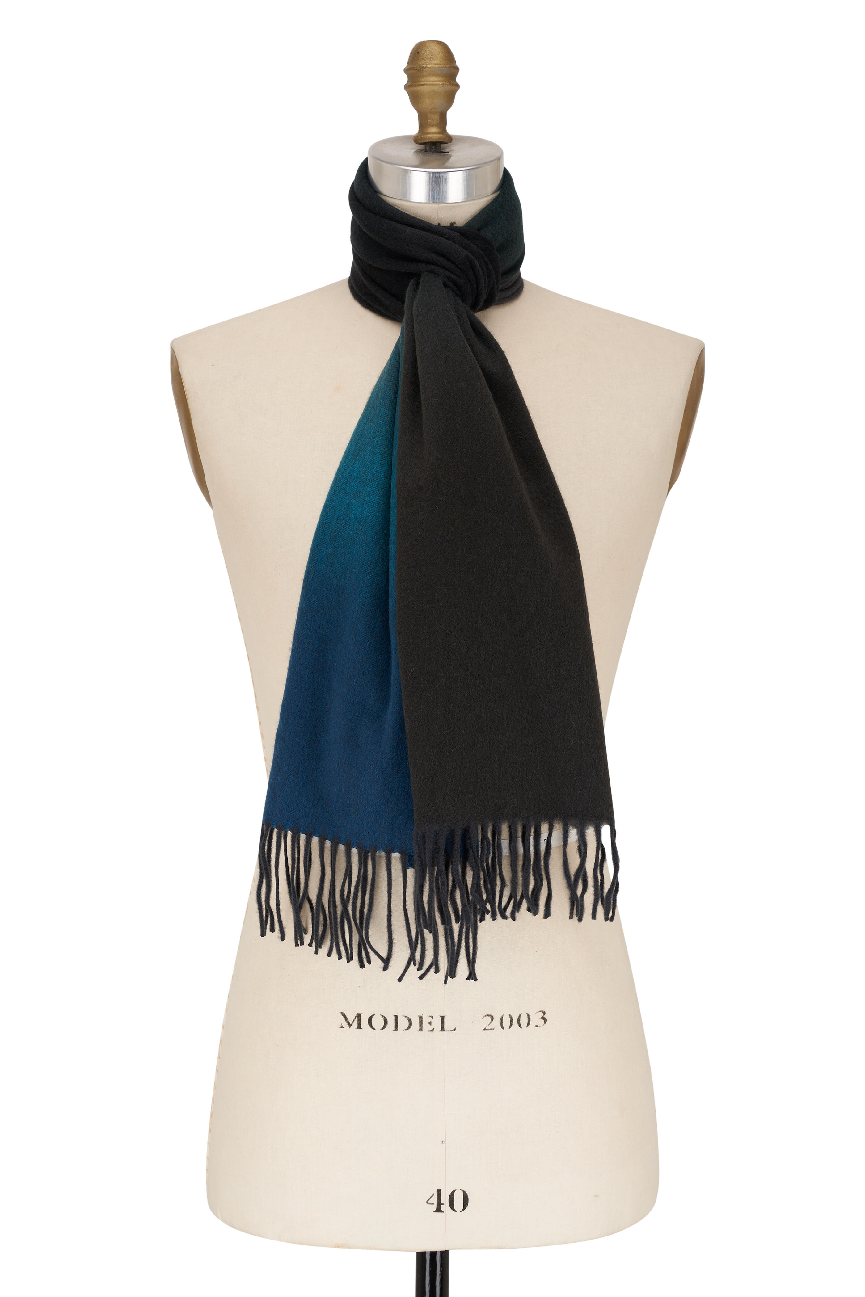 Fringe trim. Made in Scotland. 14" x 72". 100% cashmere. Dry clean.