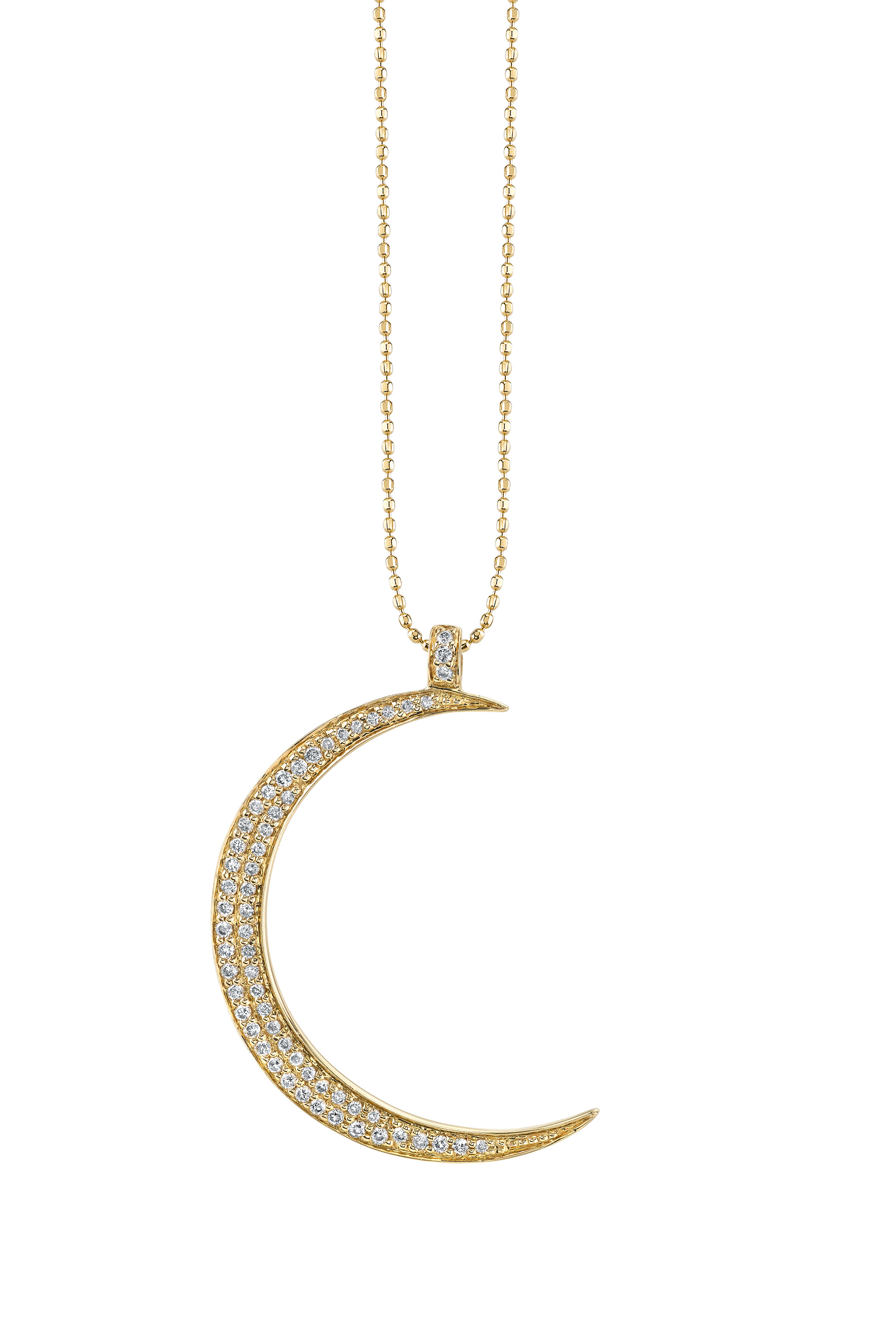 14K Yellow Gold. Diamond. Moon Measures: 1 1/4"H x 3/8"W. Chain Measures: 18" Long.