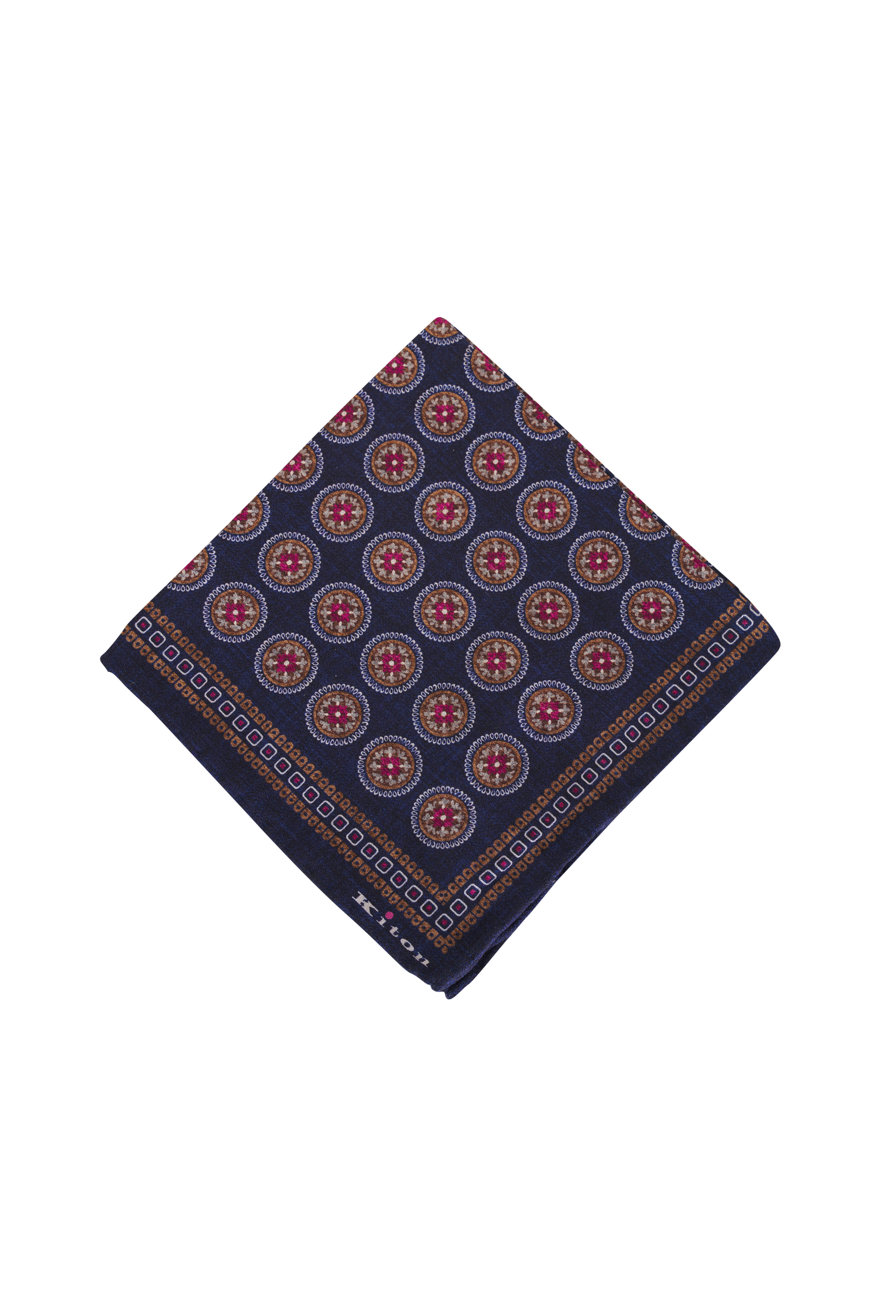 Navy Medallion Silk Pocket Square
