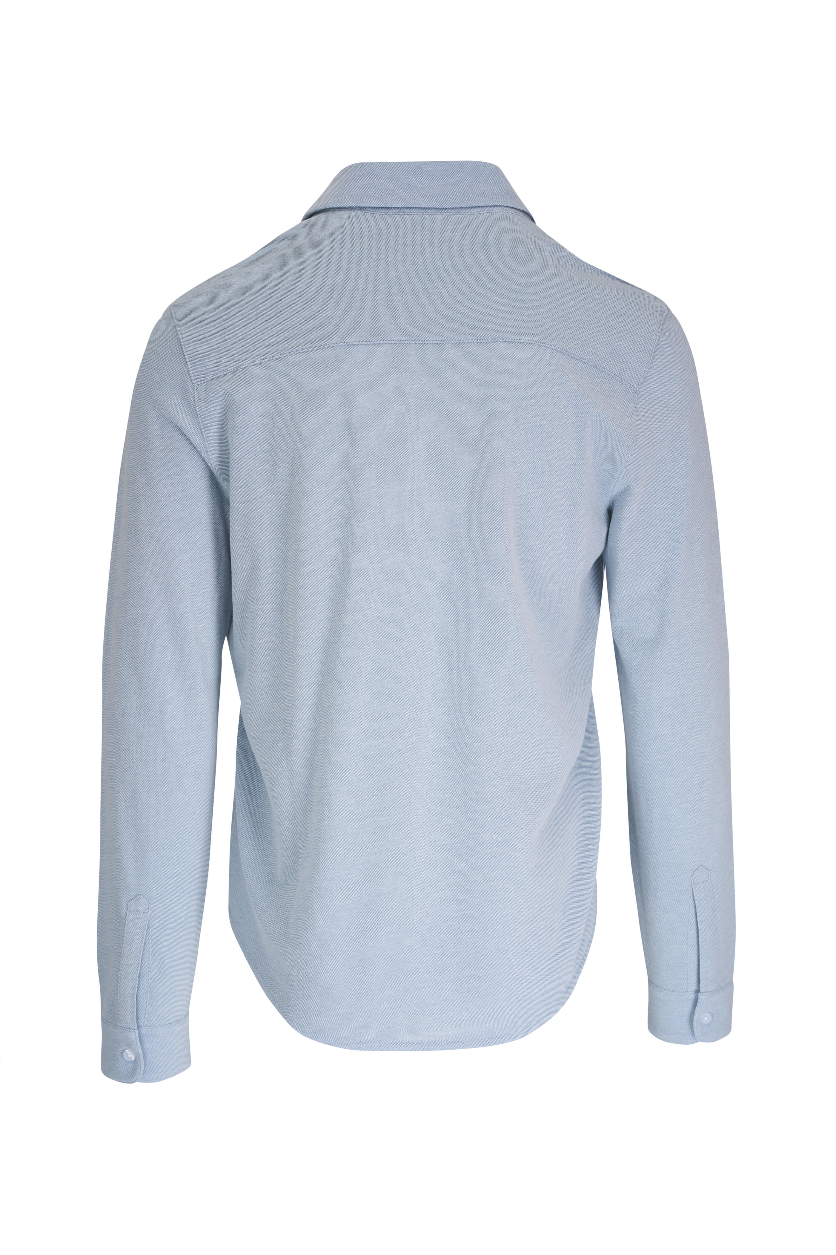 Spread collar. Front button placket. Single button barrel cuffs. Imported. Approximately 27" shoulder to hem (measurements taken from size M). 100% cotton. Machine wash.