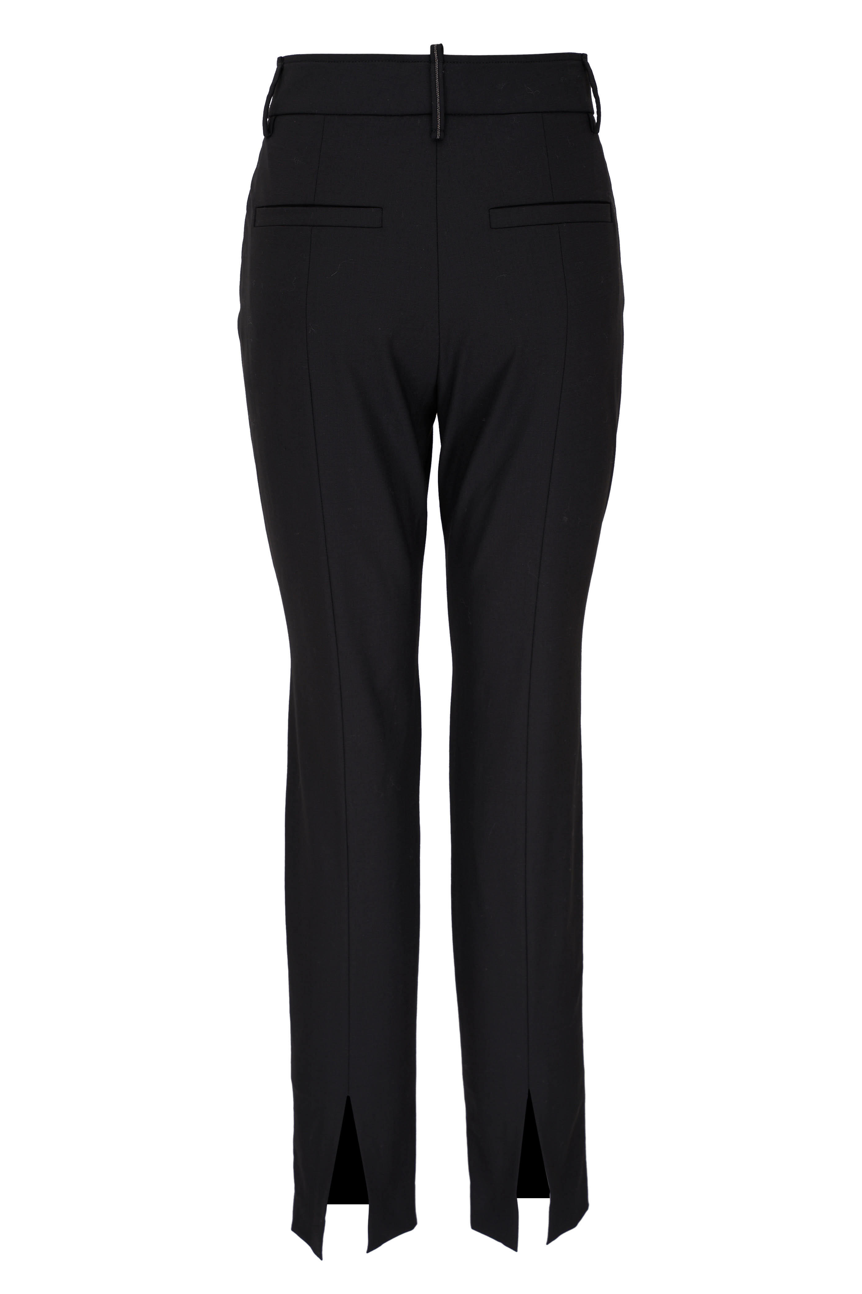 Black Stretch Wool Straight Leg Pant
