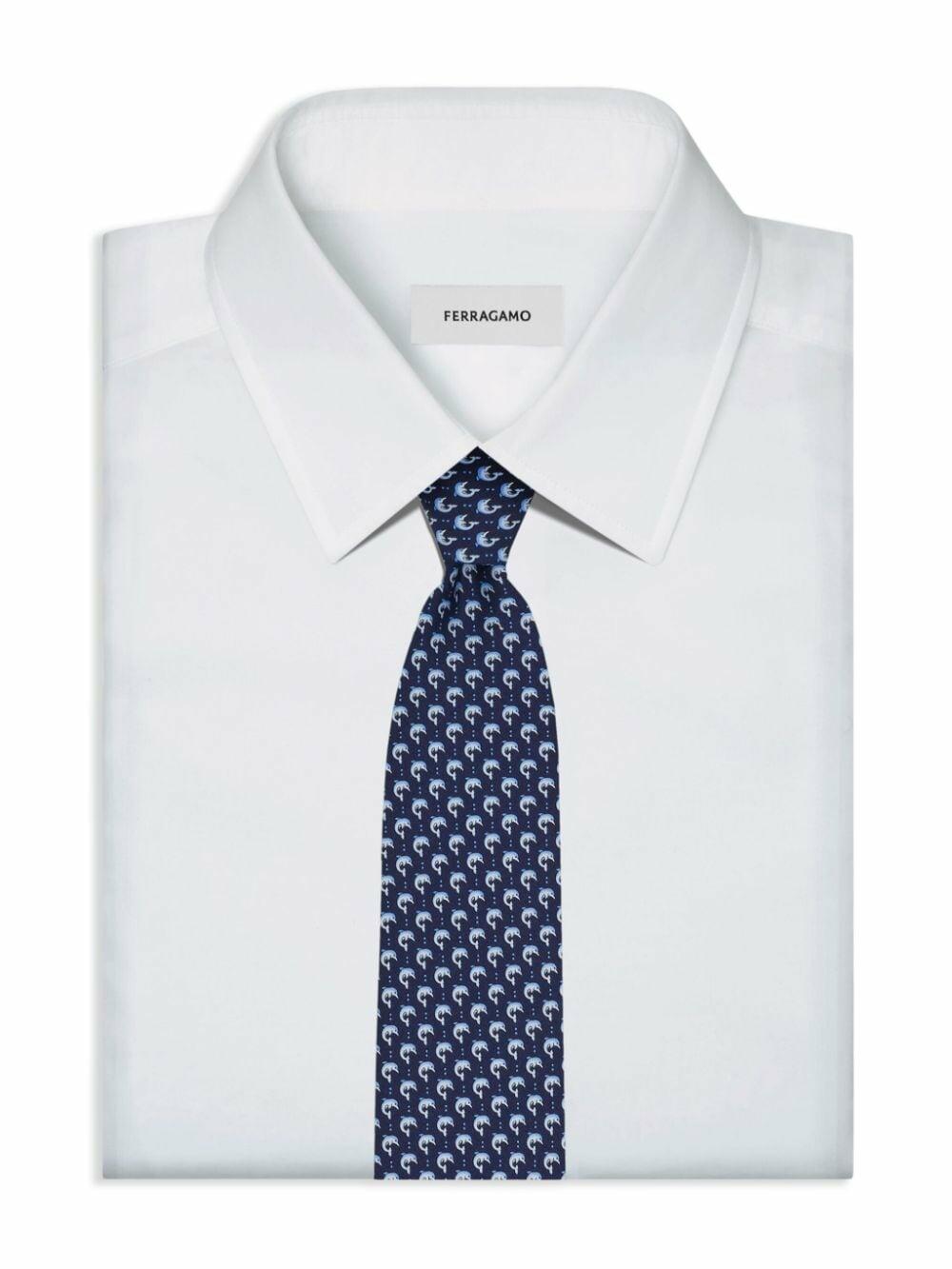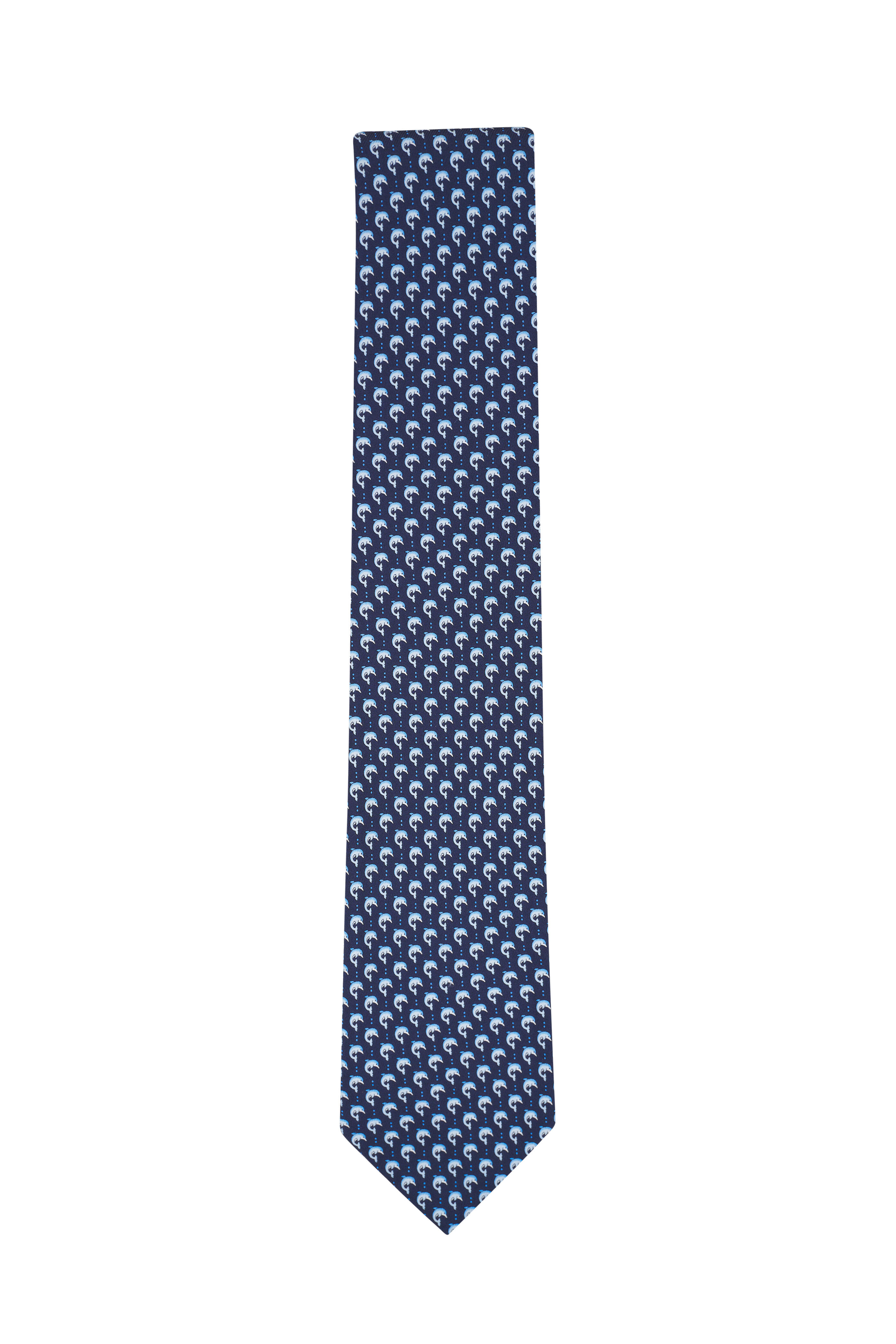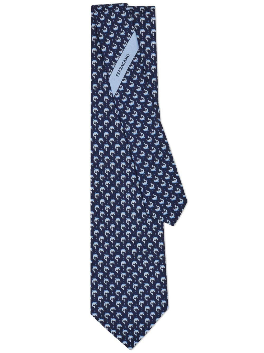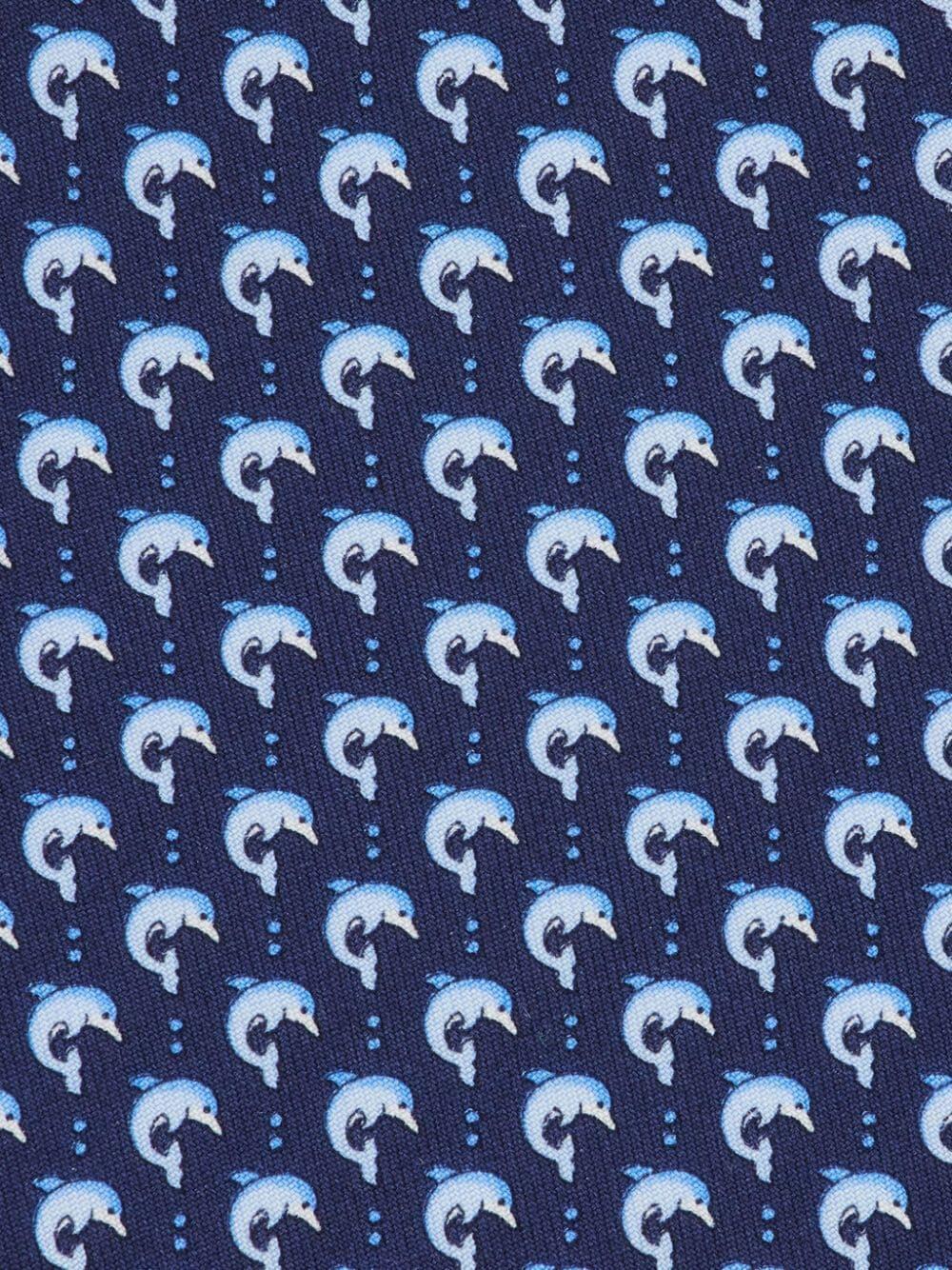 Navy Dolphin Print Silk Necktie