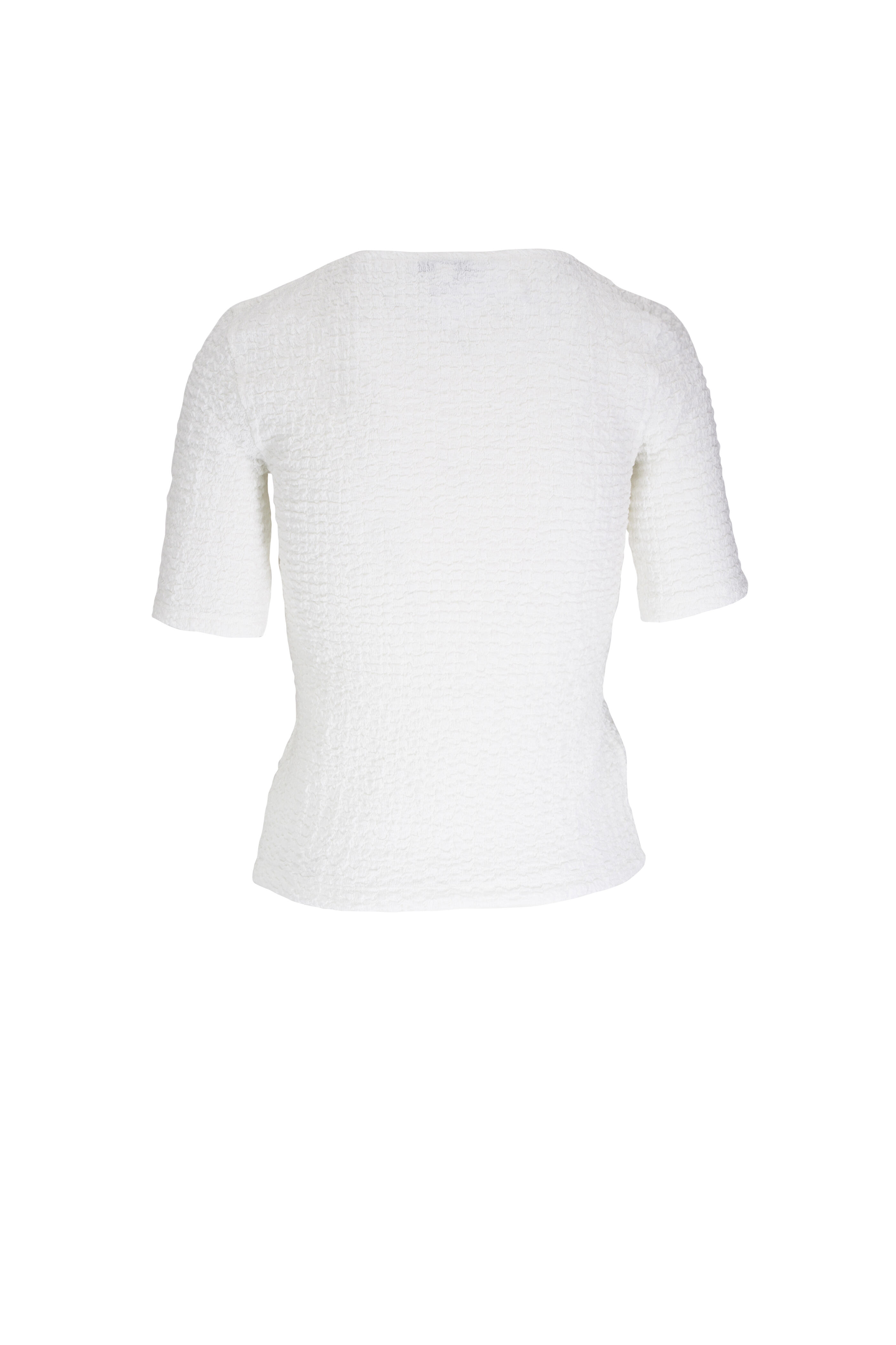 Off White Smocked Elbow-Sleeve V-Neck Top