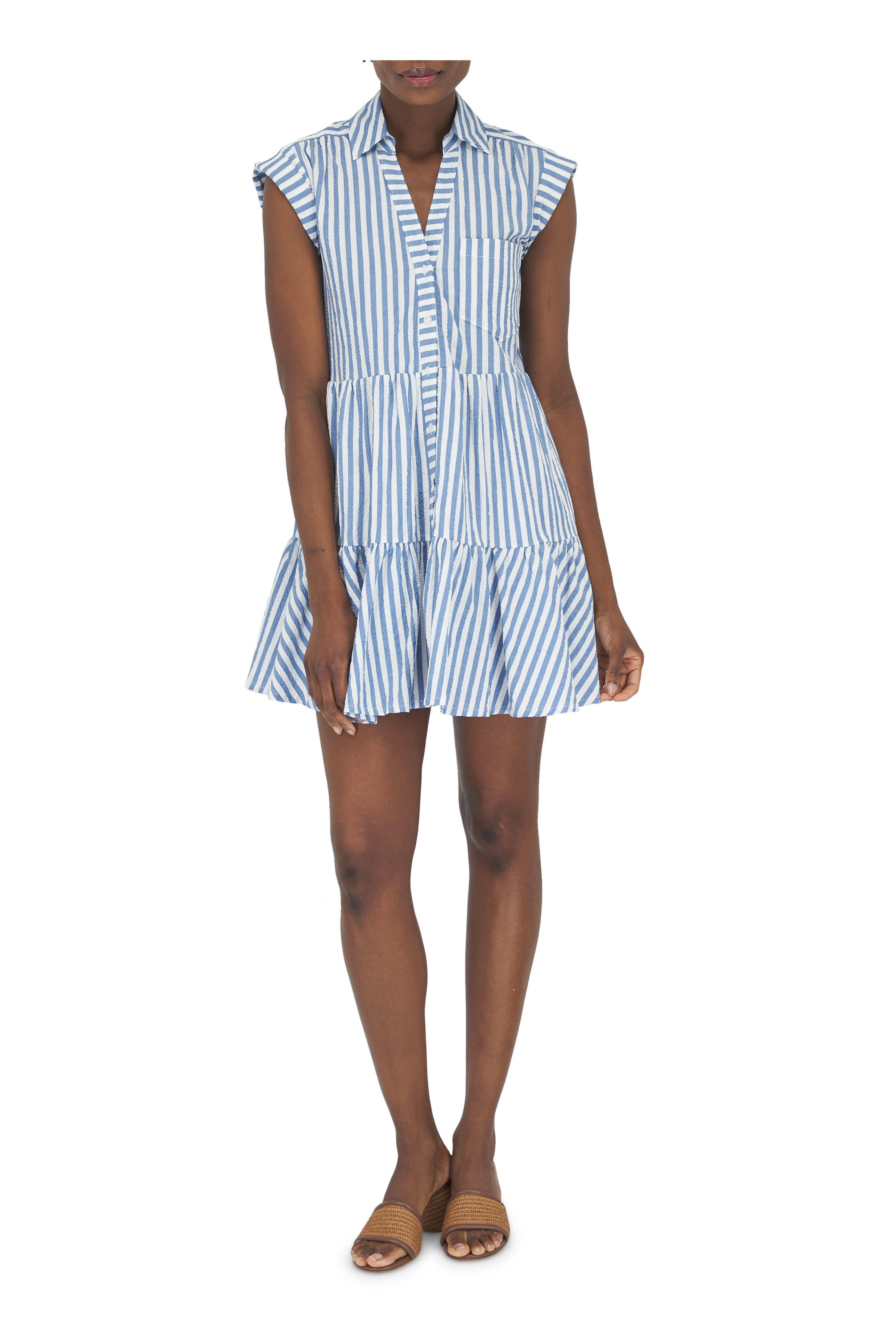 Trisha Blue & White Striped Shirtdress