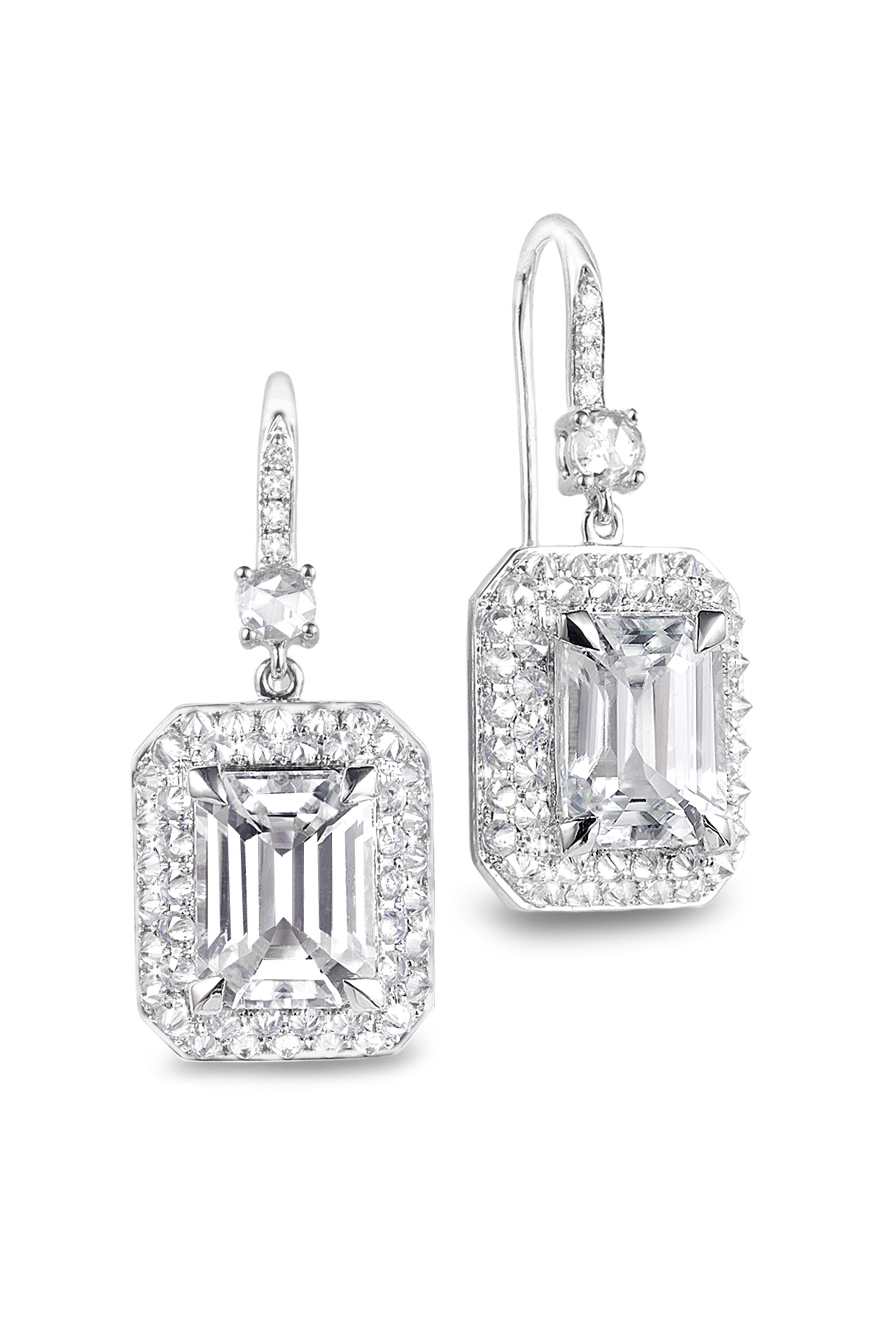 18k White Gold Octagon Single Drop Earring