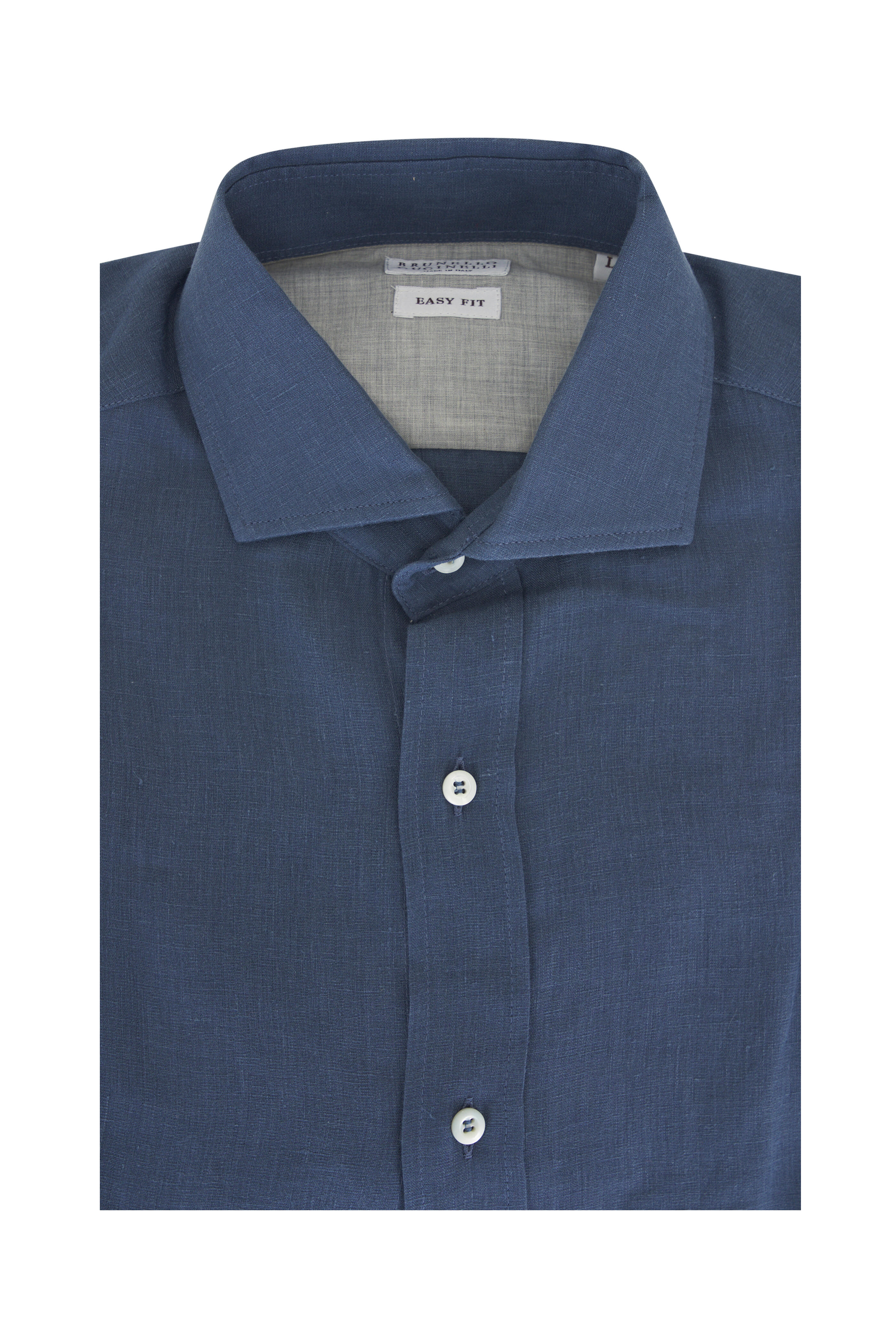 Spread collar. Front button placket. Single button barrel cuffs. Made in Italy. 100% hemp. Machine wash.