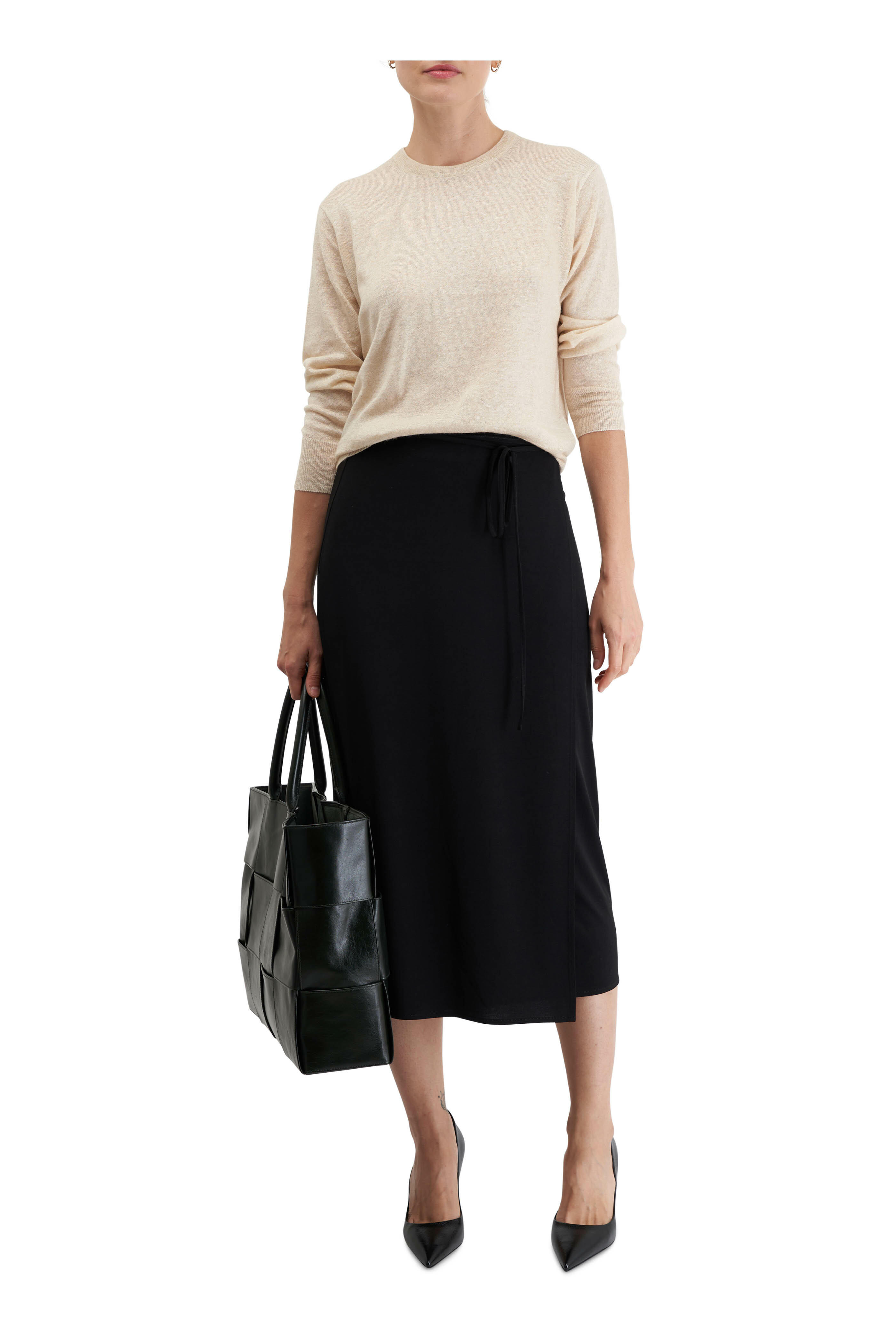 Intrecciato leather. Dual top handles. One main compartment. Interior zip pouch. Suede lining. Made in Italy. Height: 13". Width: 18". Depth: 6". Handle drop: 7.5".