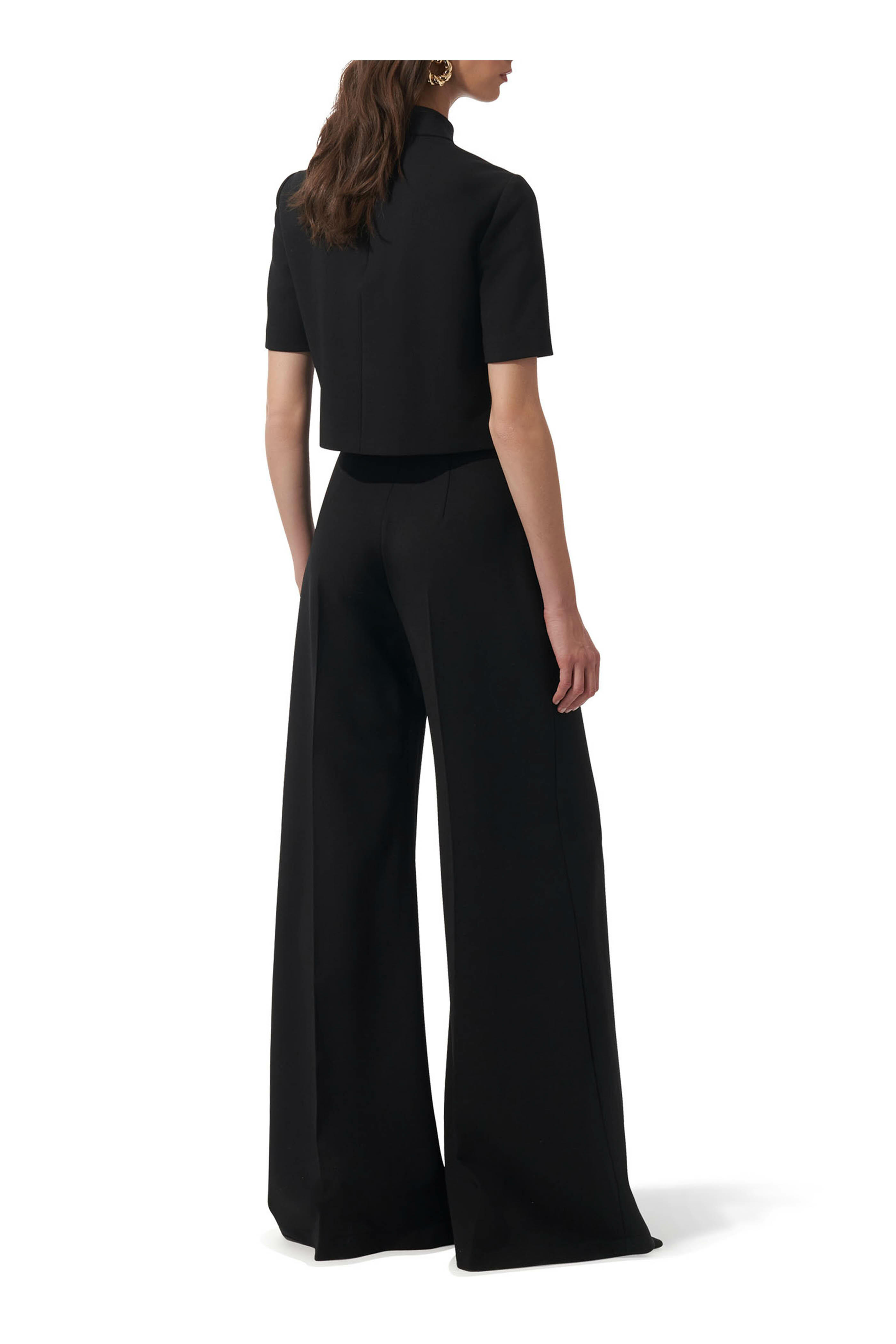 Banded waistband. Concealed side zip. Made in Italy. 34" inseam. 12 ½" rise. 97% virgin wool, 3% elastane. Dry clean.