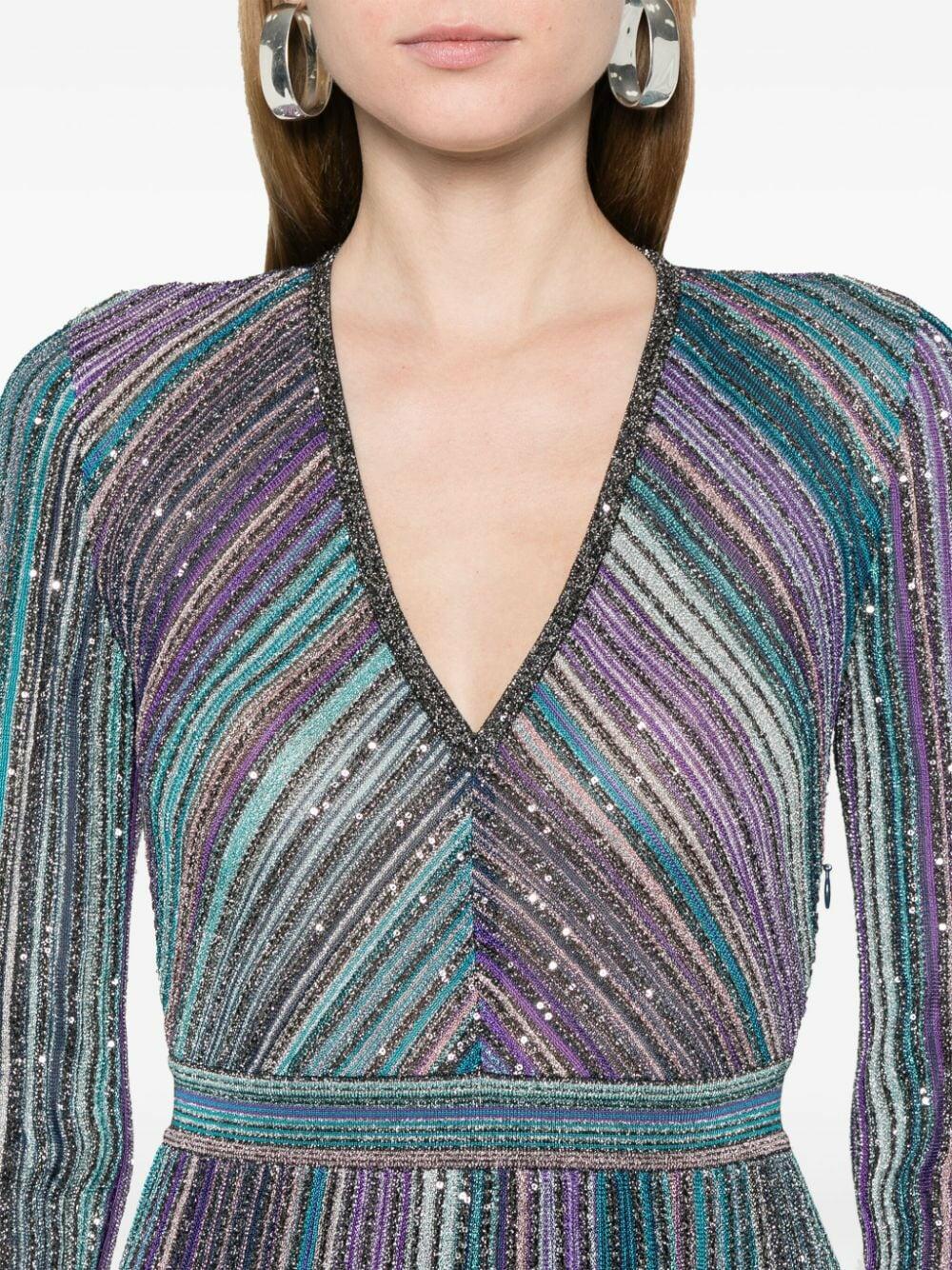 Multicolor Lamé Pleated Sequin Maxi Dress