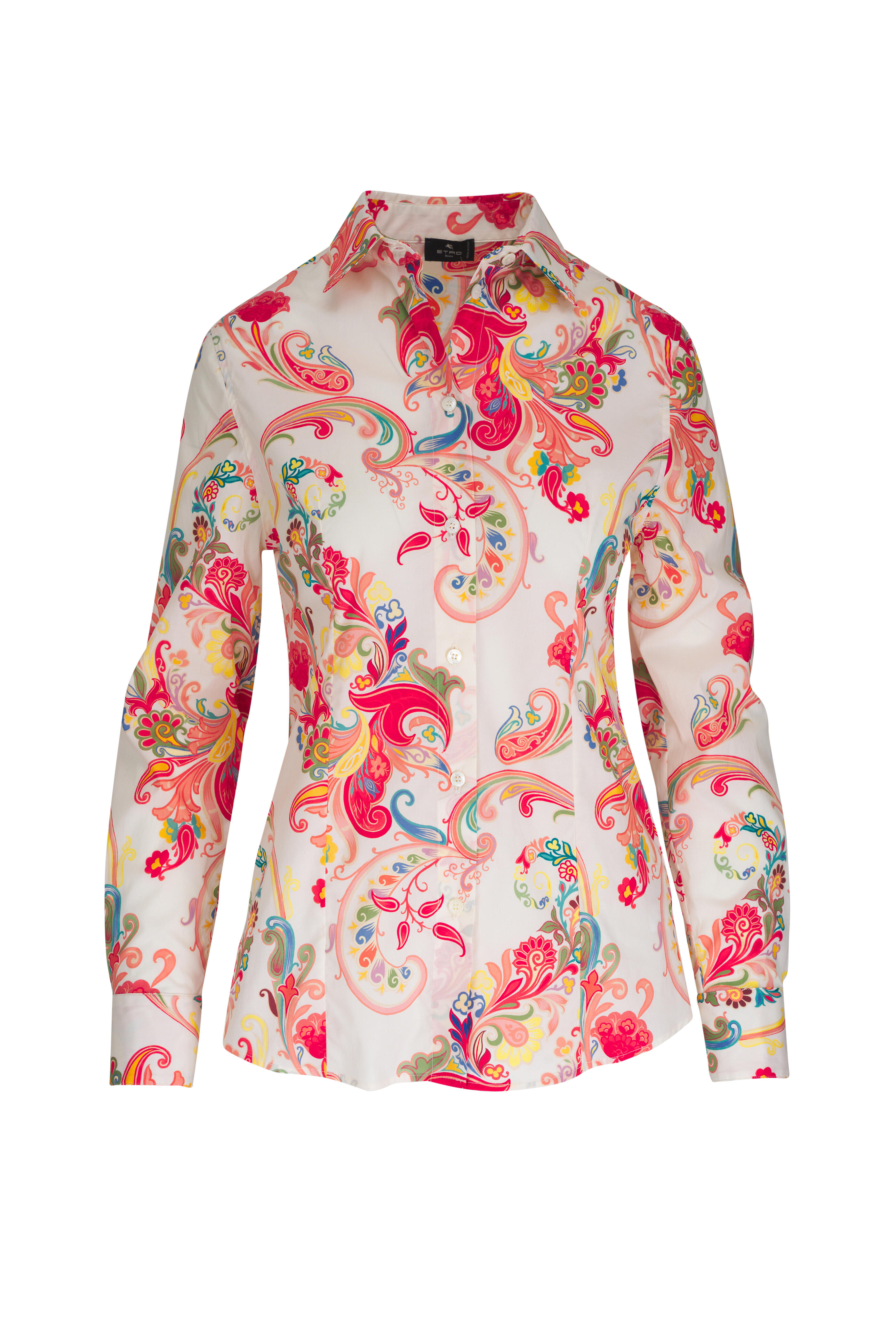 Spread collar. Front button plcaket. Single button cuffs. Made in Italy. 97% cotton, 3% elastane. Dry clean.