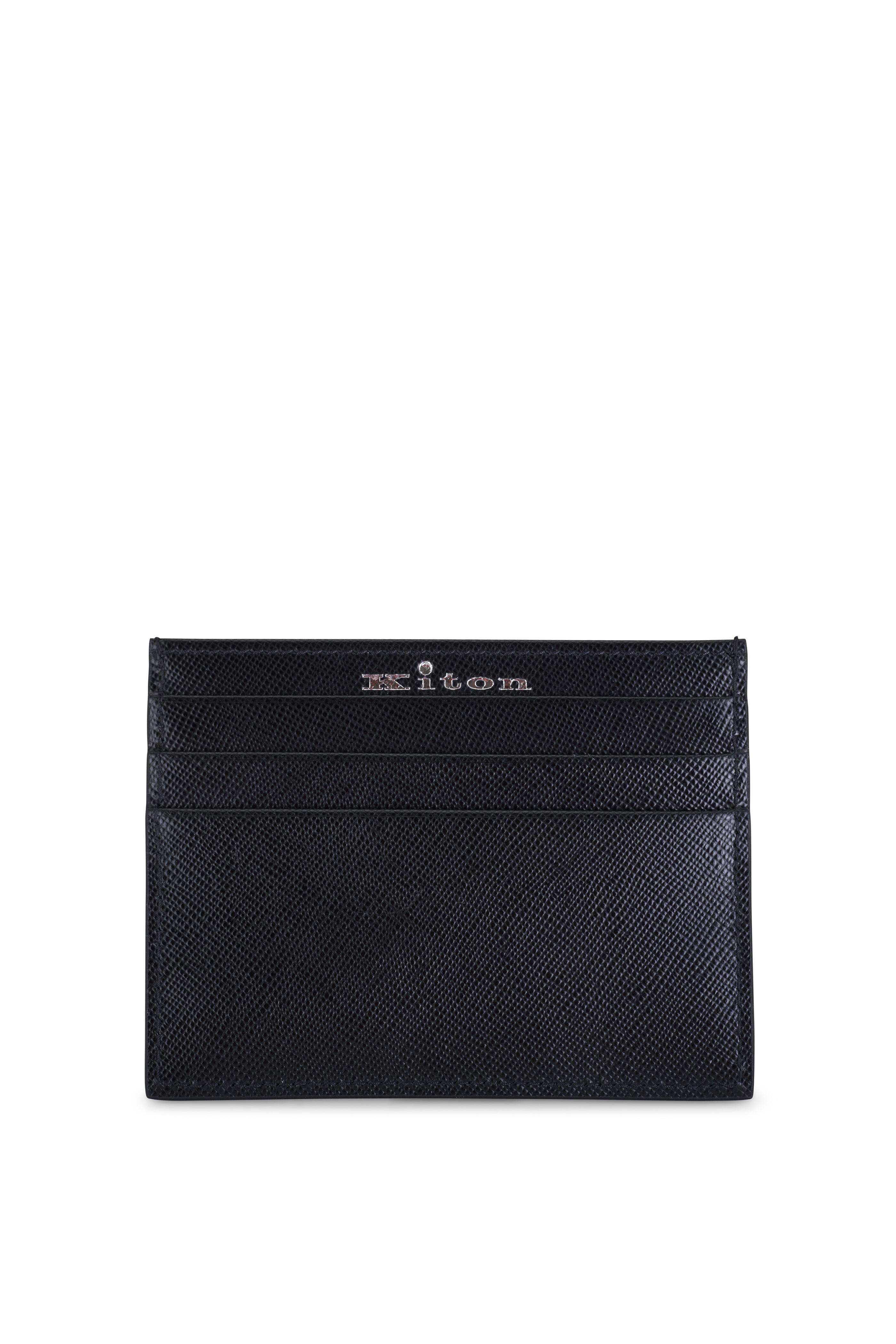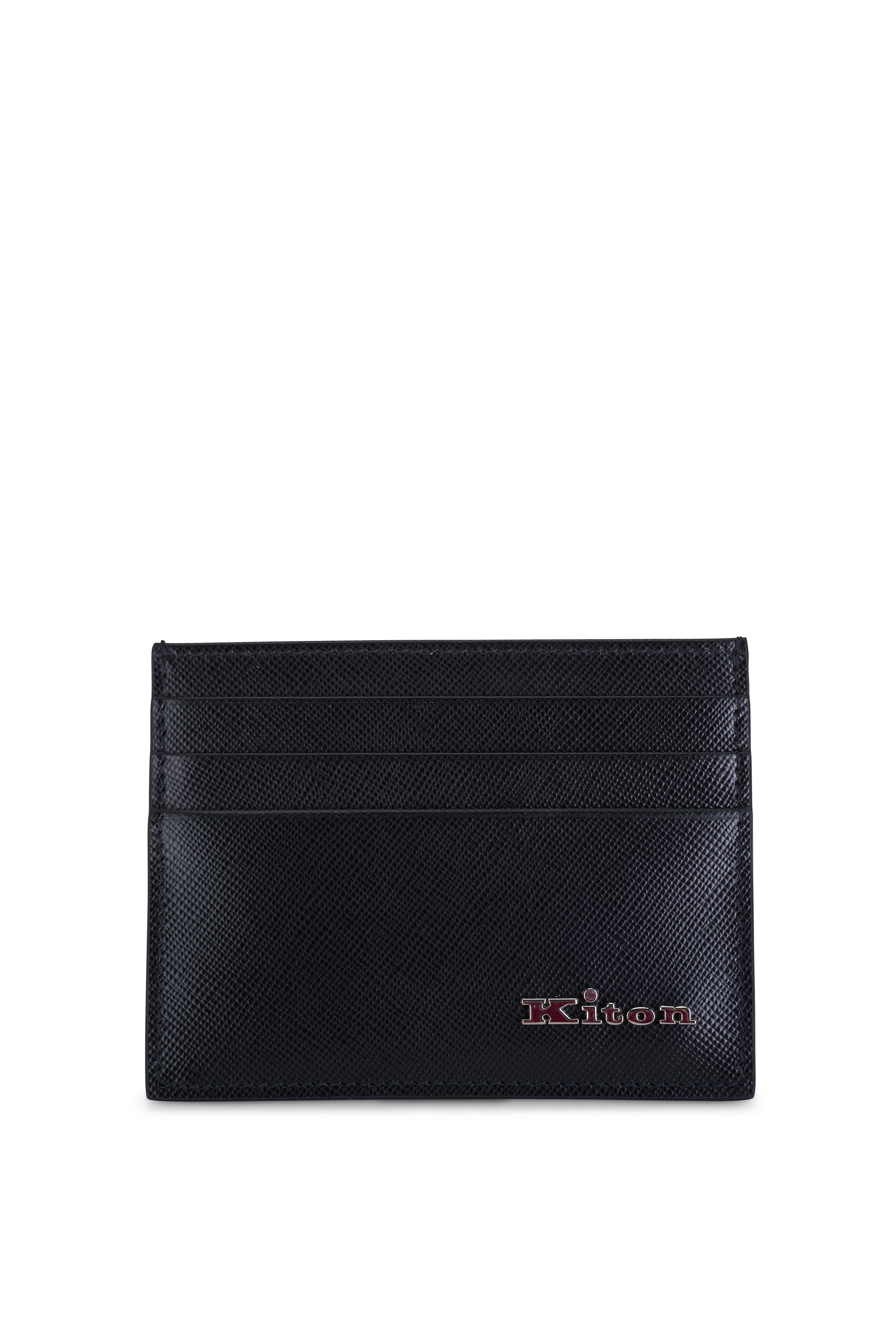 Grained calfskin leather. Six card slots. Center pocket. Silver logo details. Made in Italy. Width: 4". Height: 3.25".