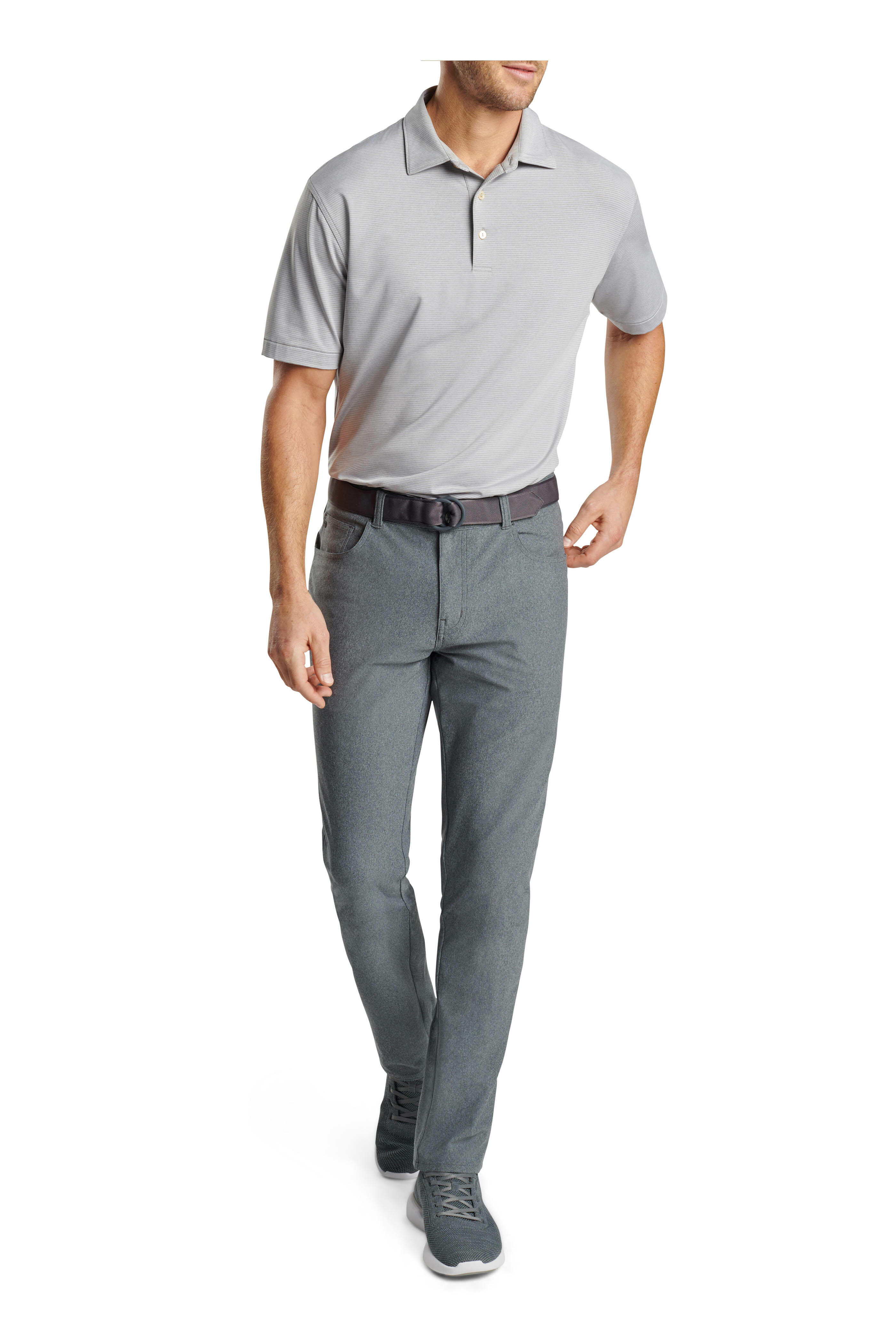 - Banded waistband; belt loops