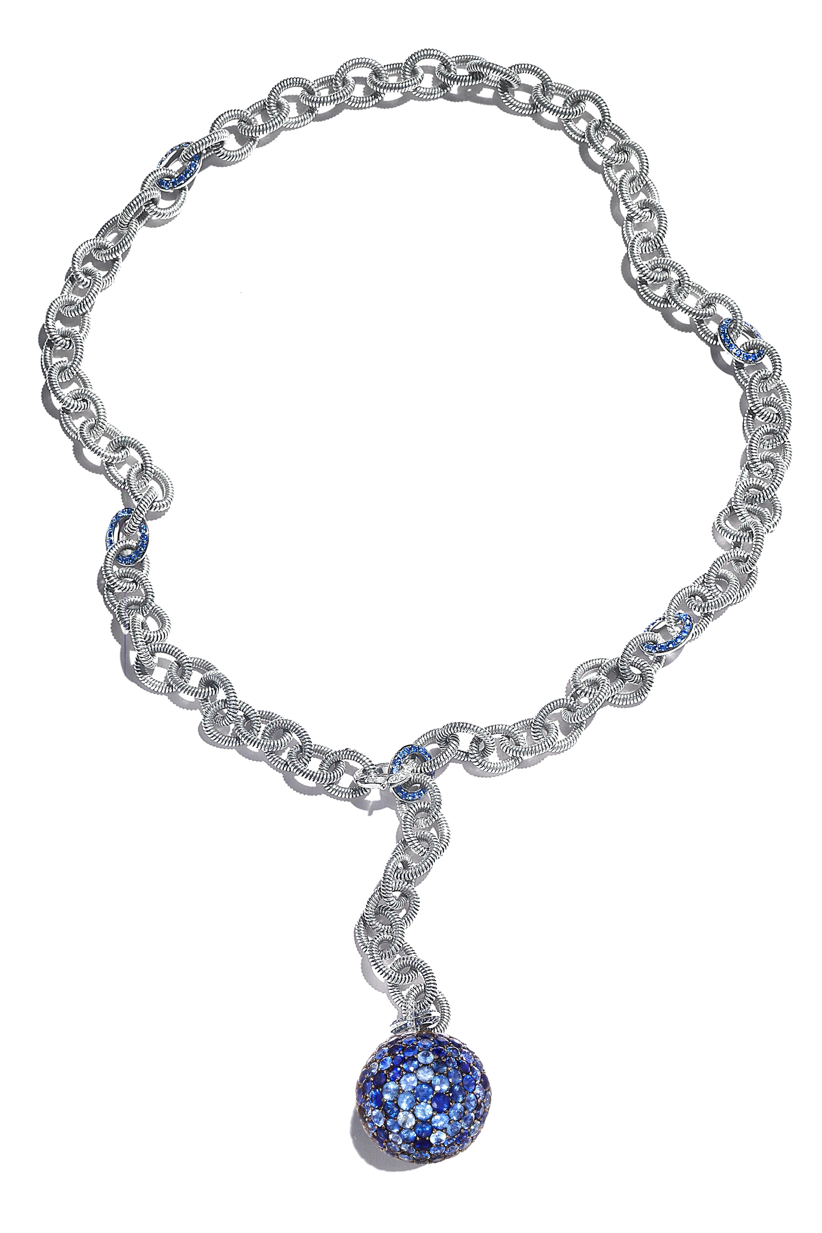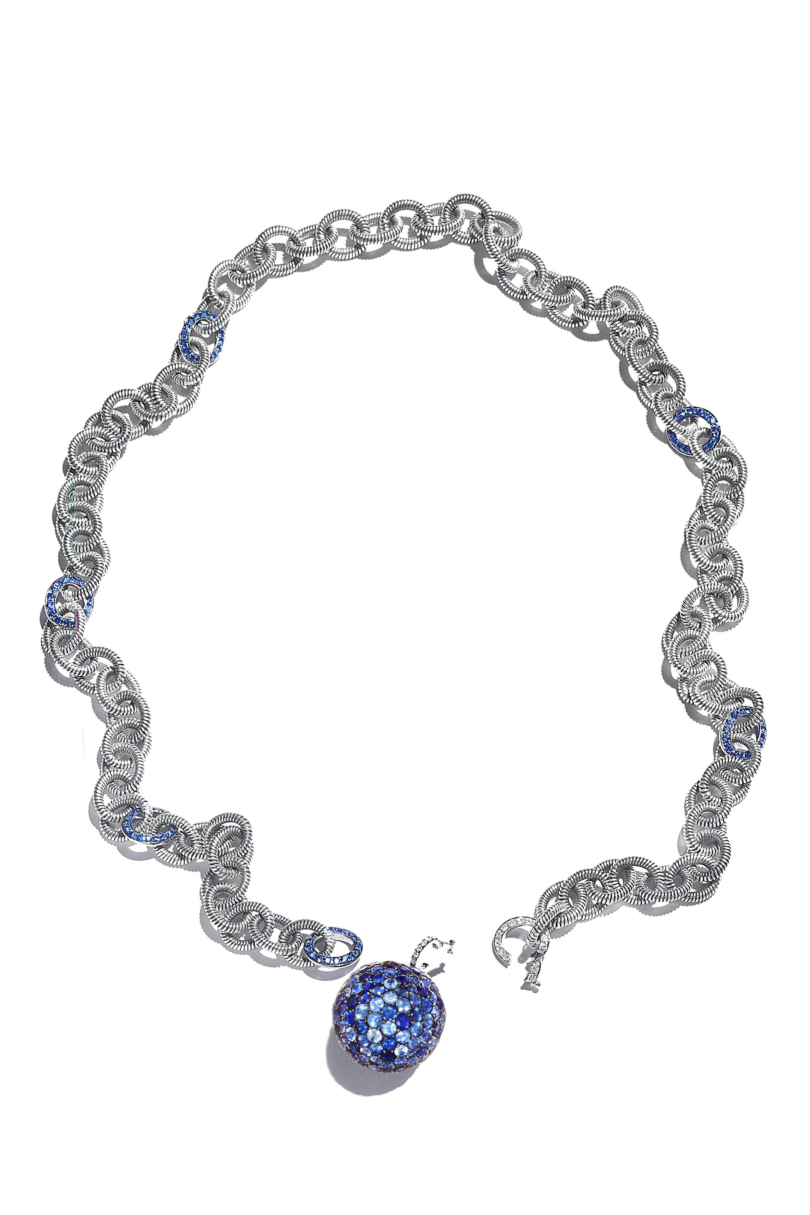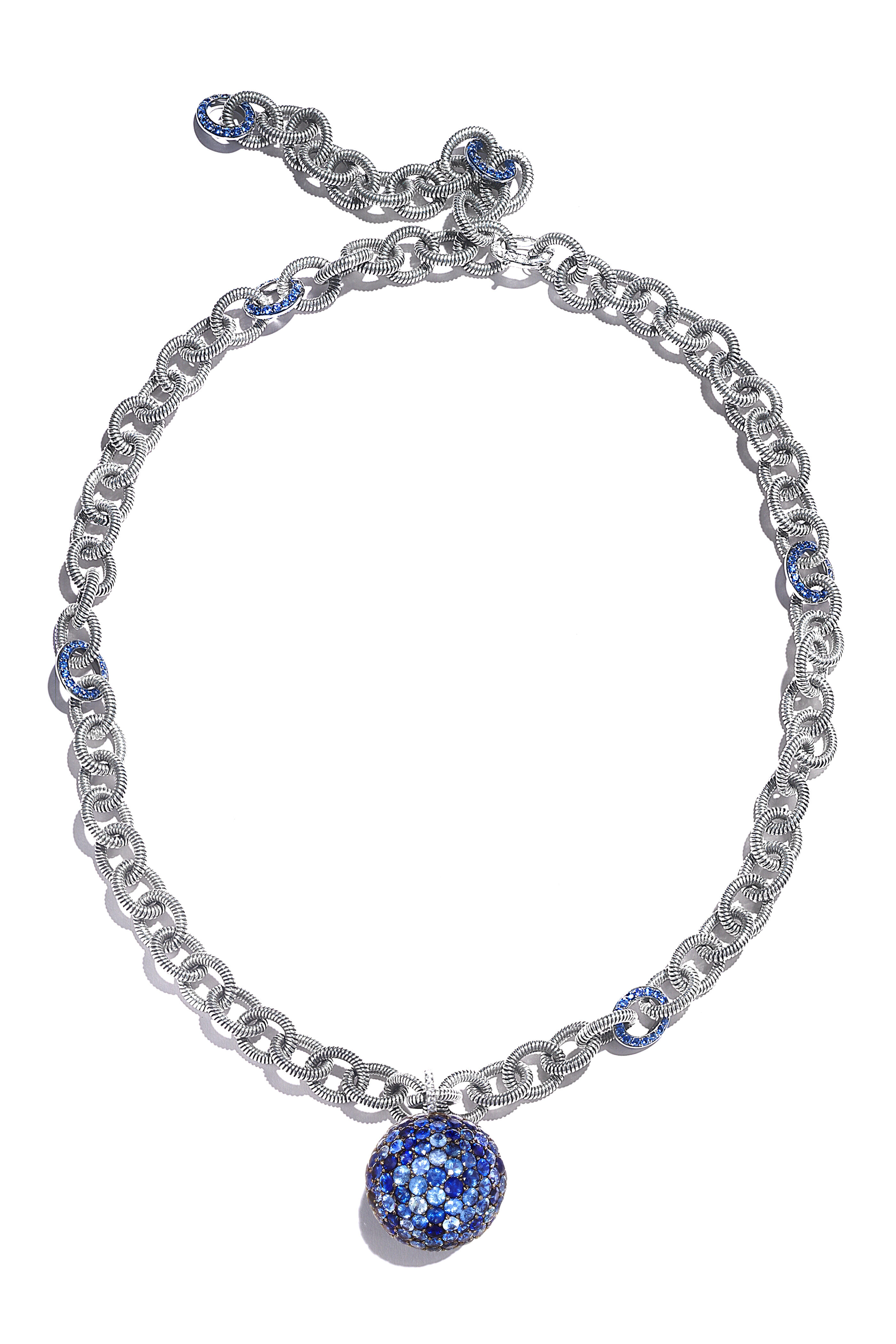 18K White Gold. Rhodium Finish. Diamond: 0.478CT. Blue Sapphire: 17.776CT.