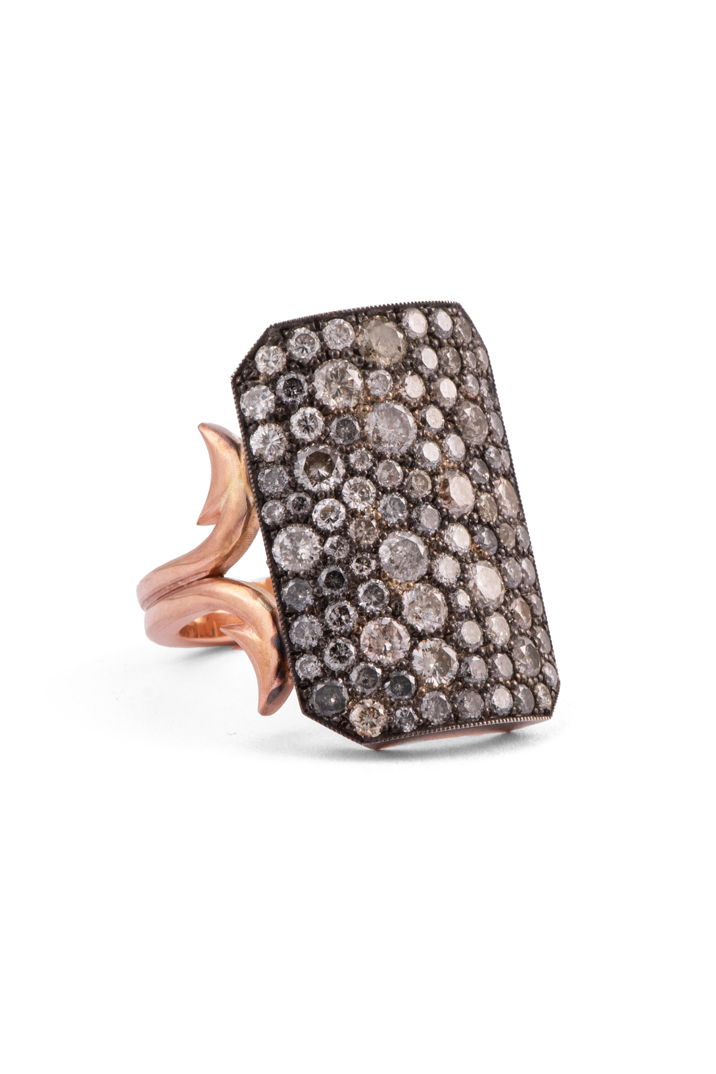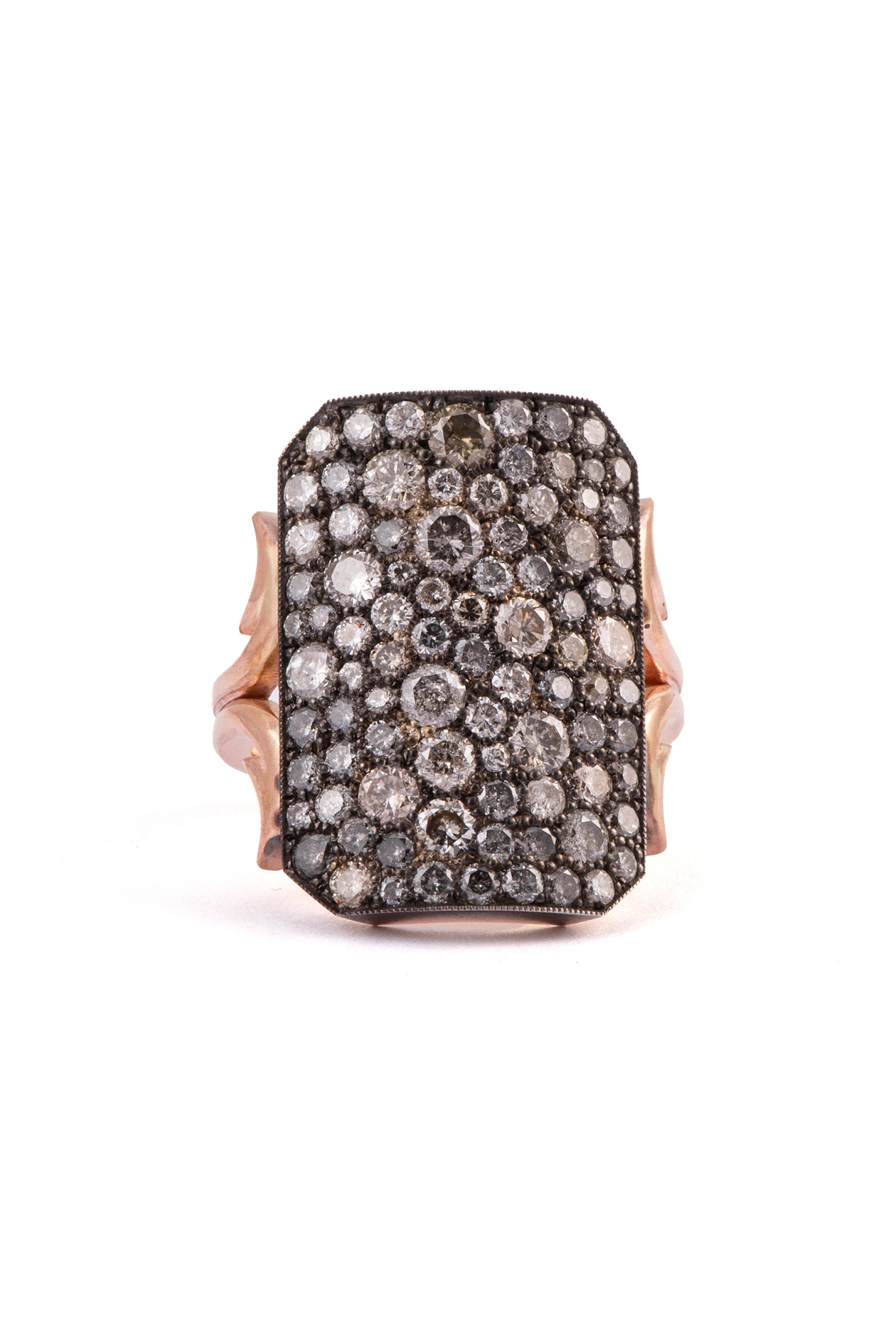 14k Rose Gold. 3.20 ct Gray Champagne Diamond. Size 7.5.