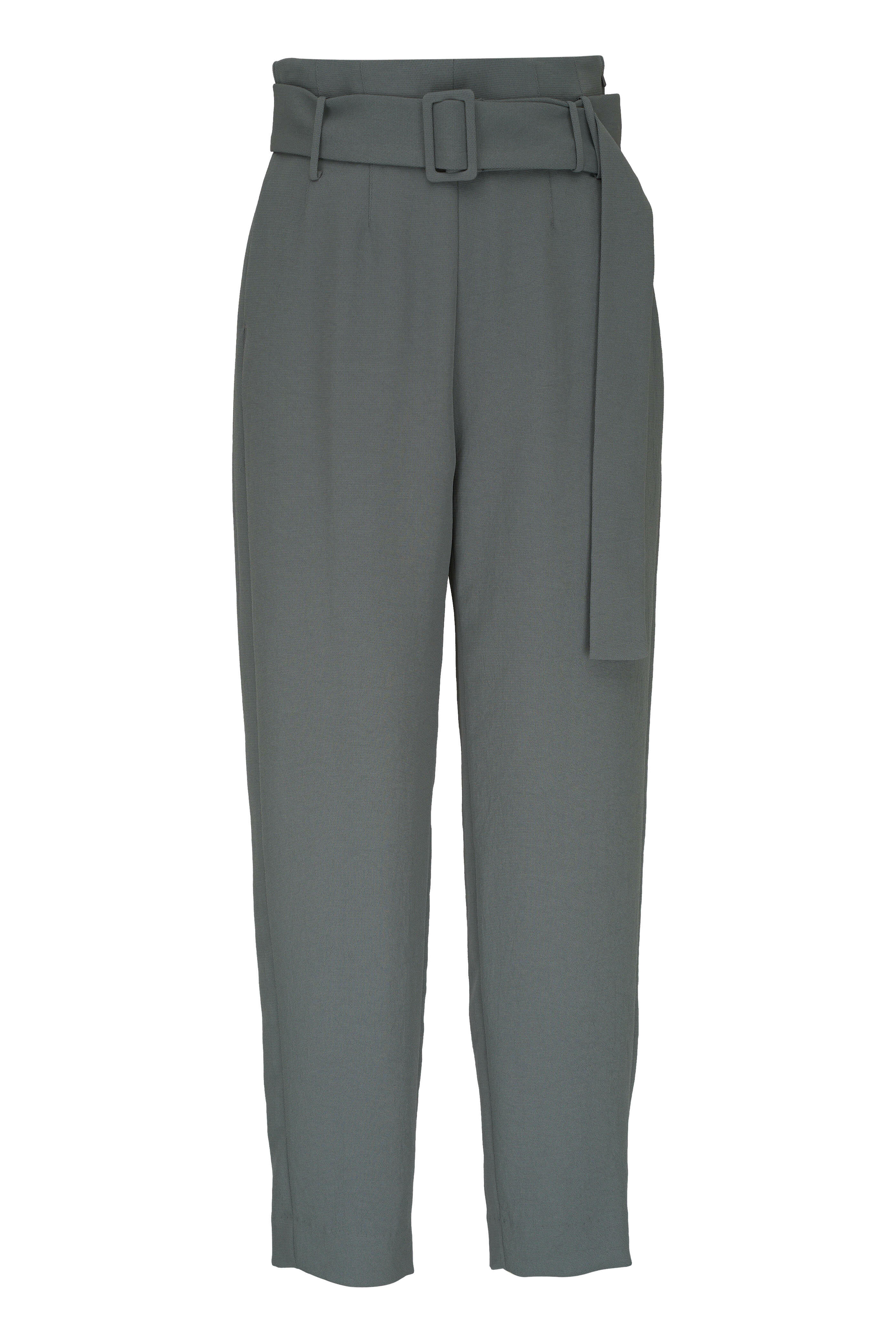 Concealed side zip. Elasticized waistband. Detachable belt; belt loops. Side seam pockets. Cropped hem. Made in the USA. Rise: 12". Inseam: 27". 100% polyester; fully lined. Dry clean.
