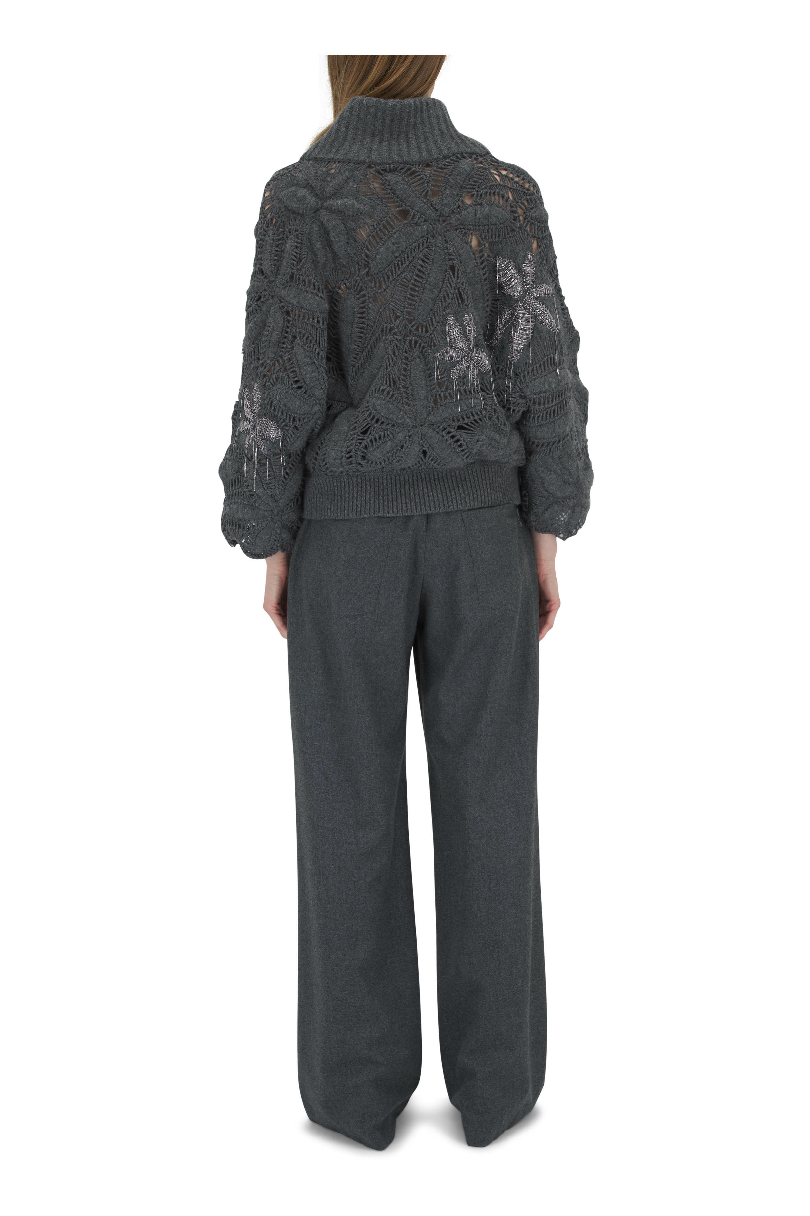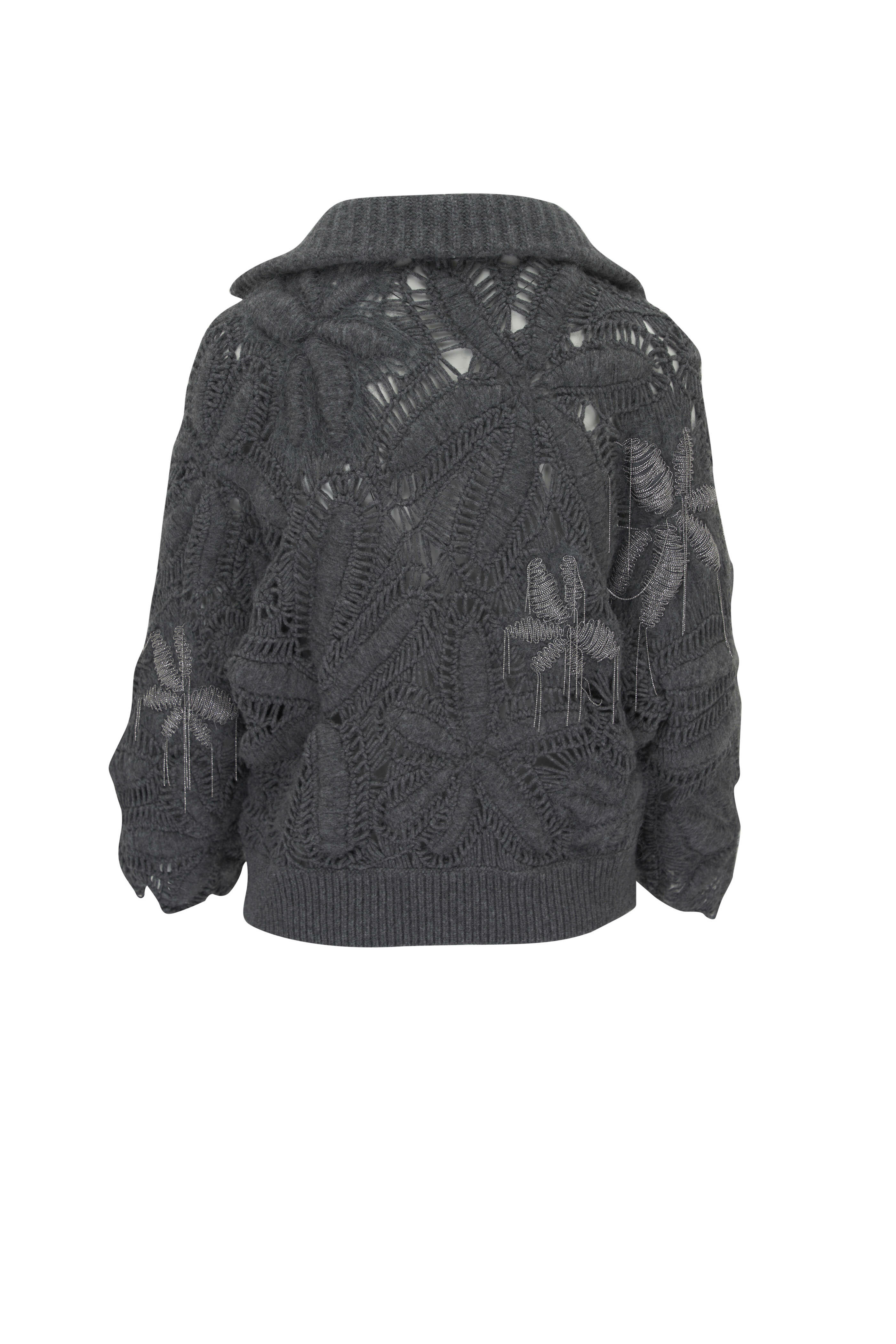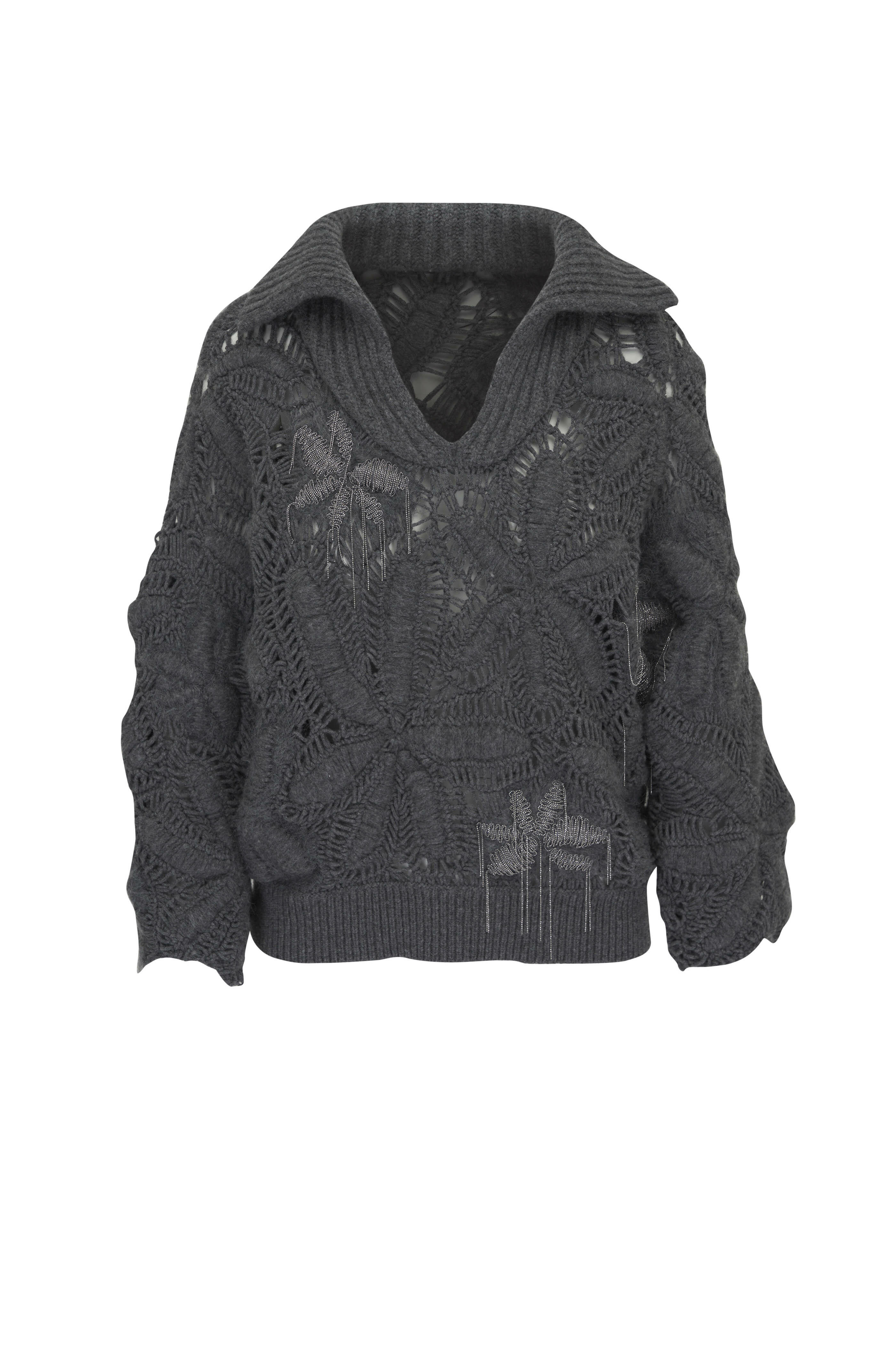 Polo collar. Slip-on style. Monili embellishment detail s. Made in Italy. 100% cashmere. Dry clean.