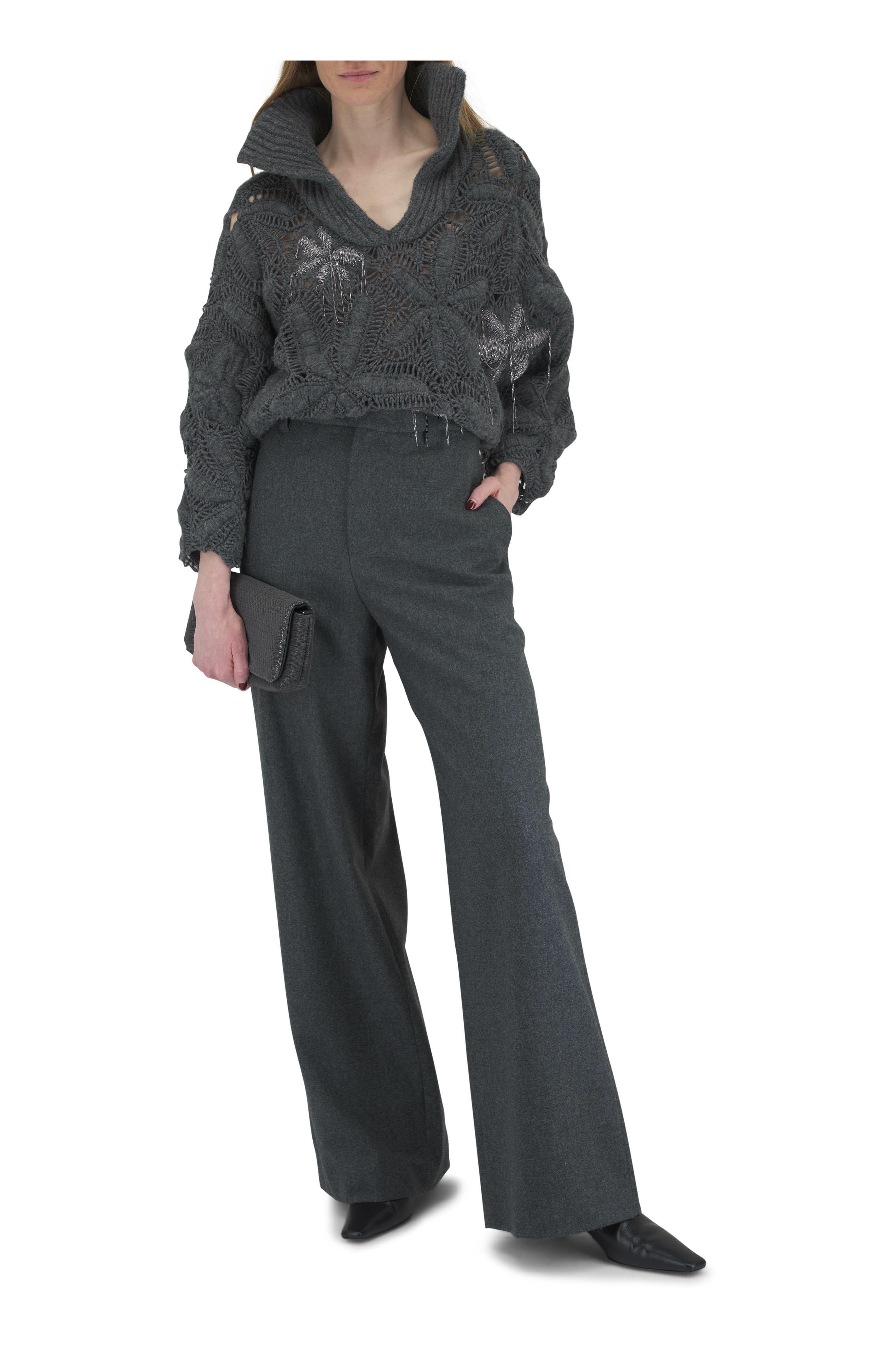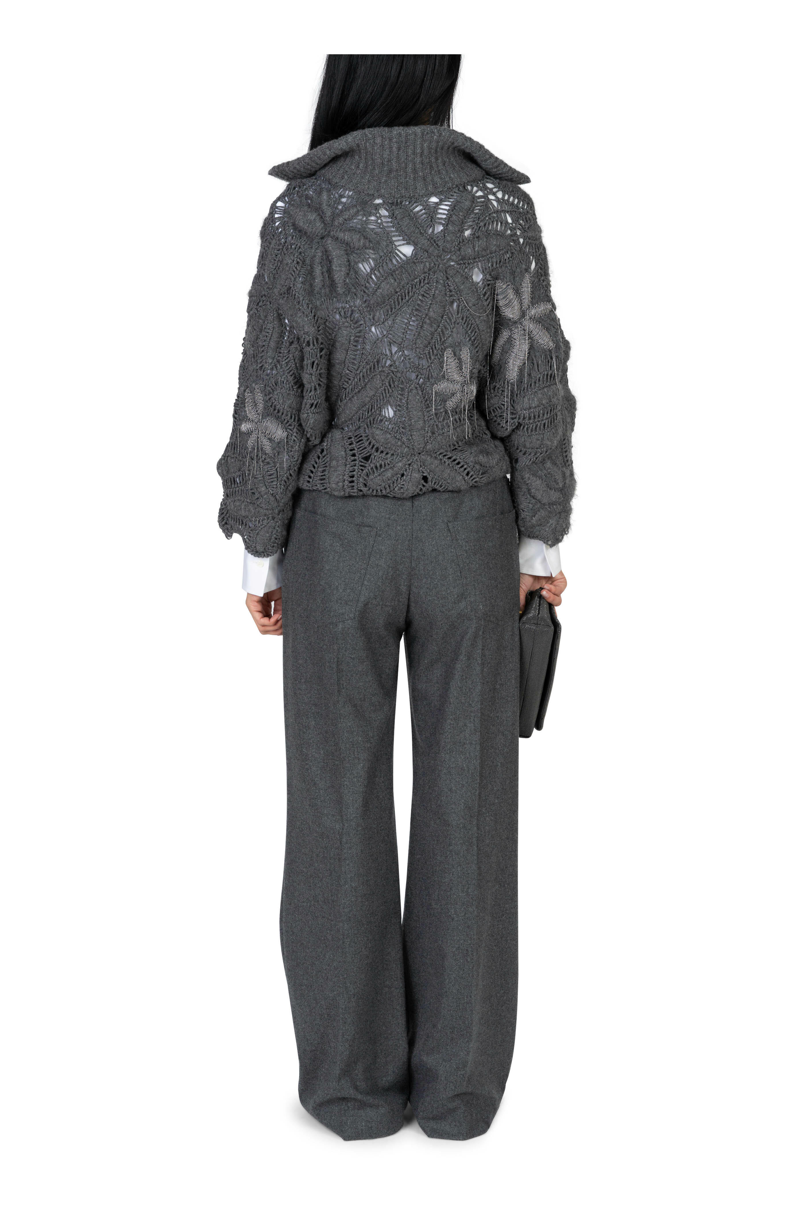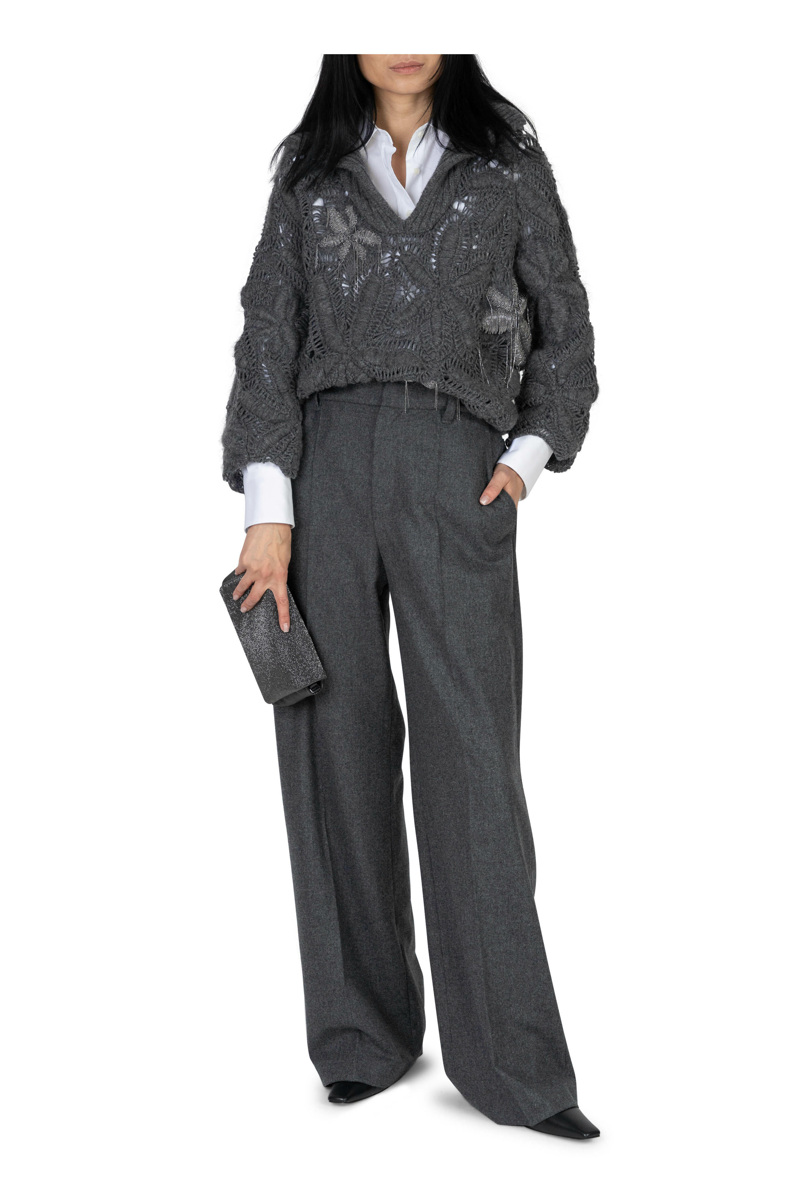 Polo collar. Slip-on style. Monili embellishment detail s. Made in Italy. 100% cashmere. Dry clean.