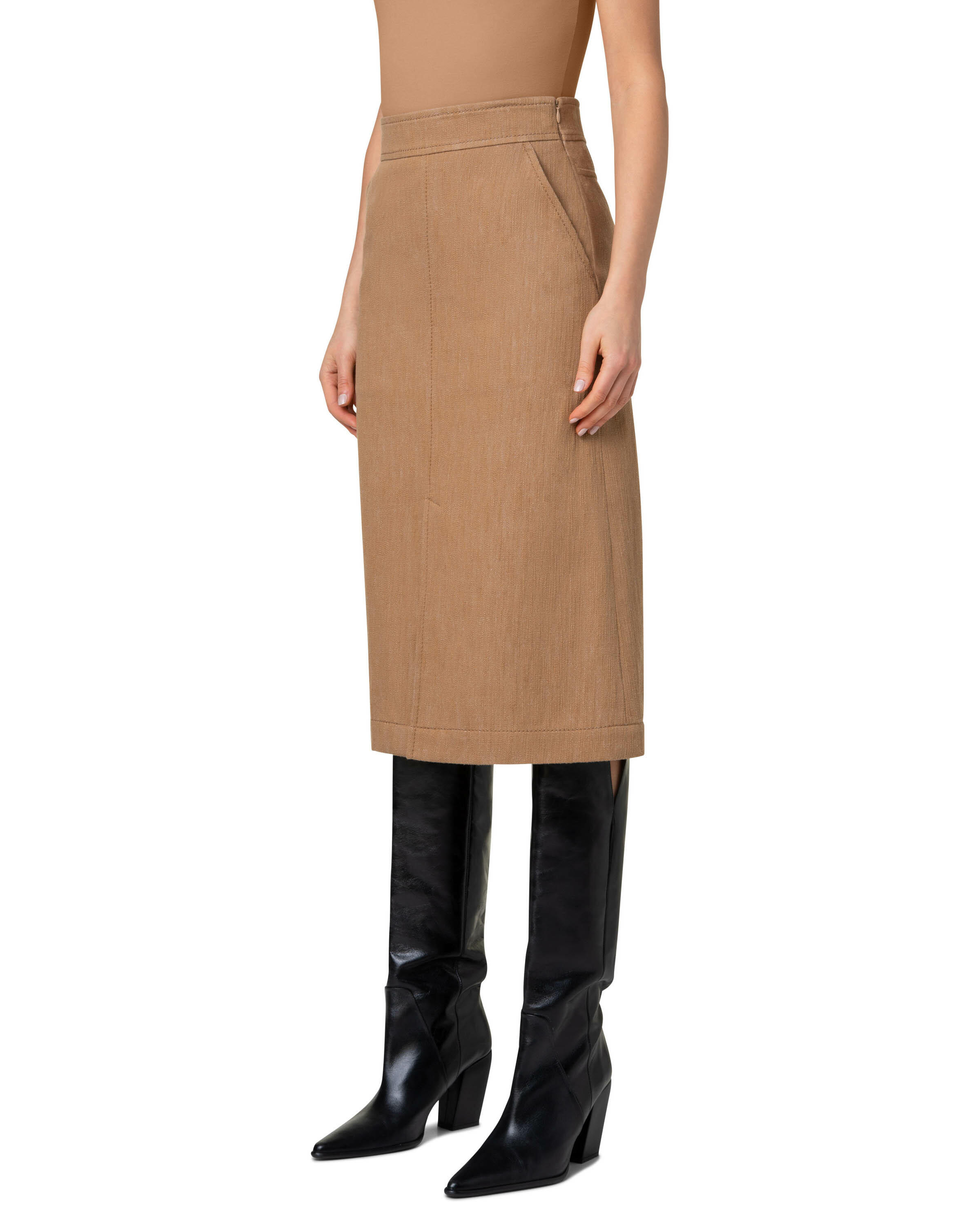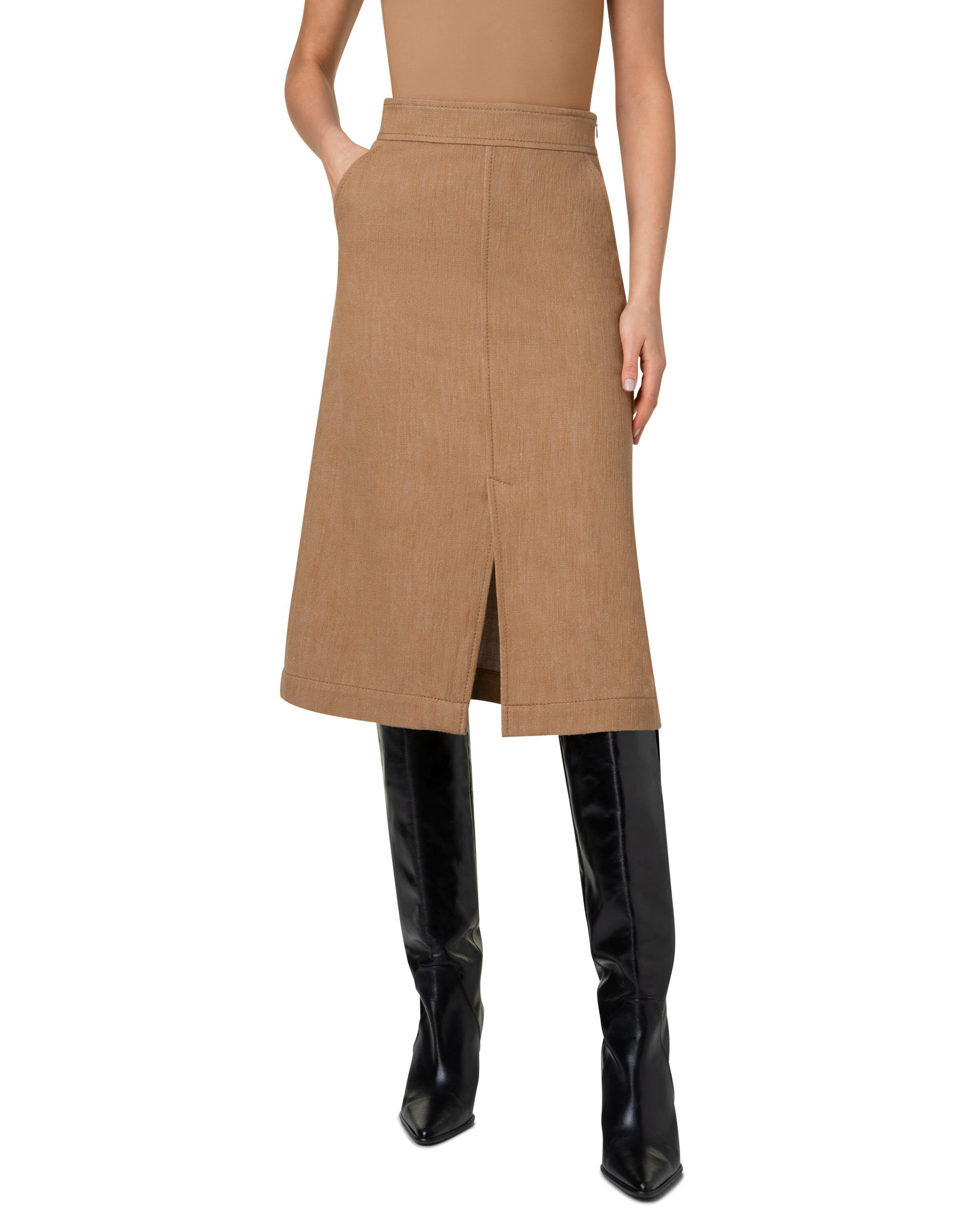 Concealed side zip. Front slash pockets. Front slit at hem. Fabric from Italy. 30" length (Measurements taken from a size 2).. 81% cotton, 15% wool, 4% polyamide. Dry clean.