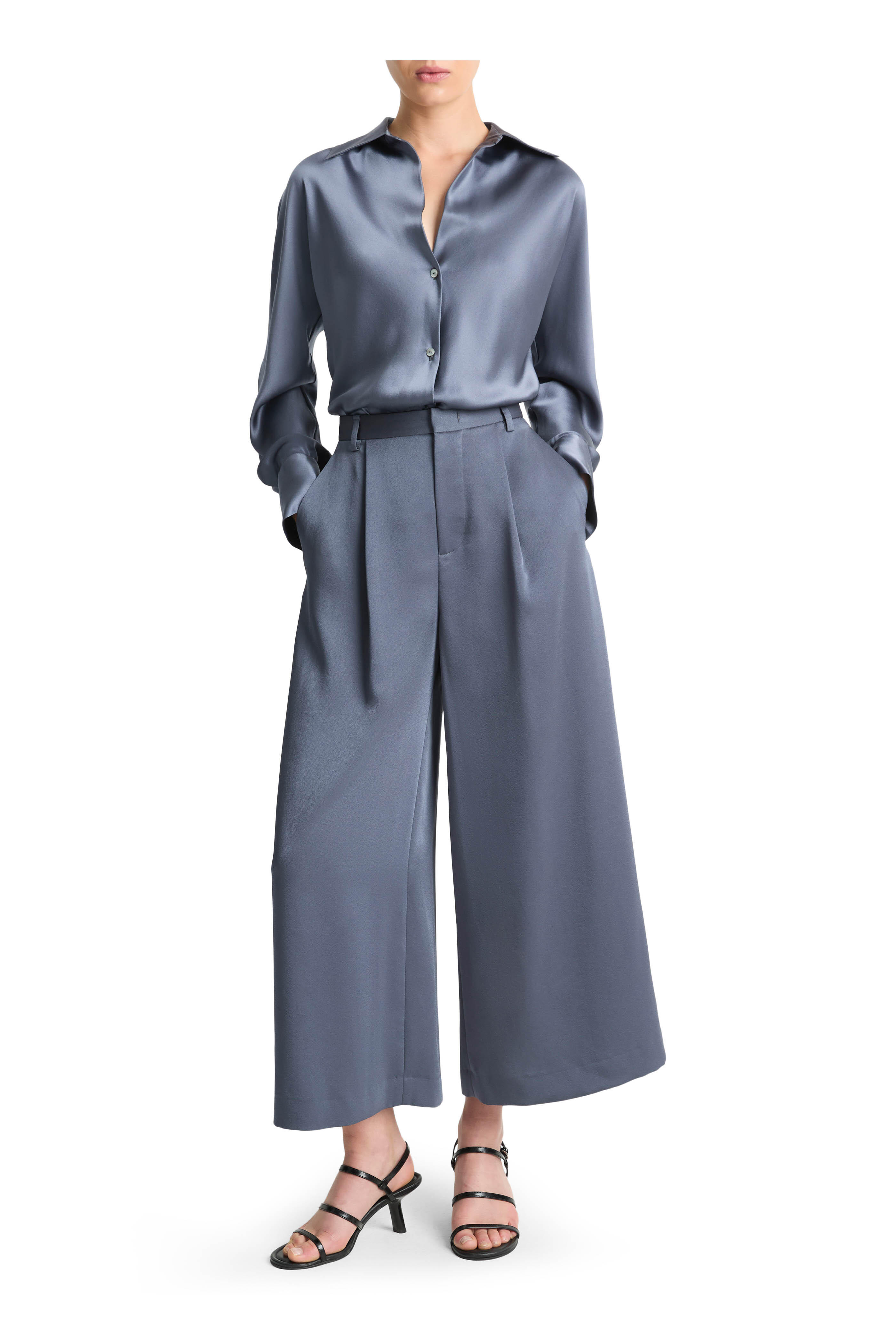 Spread collar; v-neckline. Front button placket. Single-button cuffs. Imported. 100% silk. Dry clean.