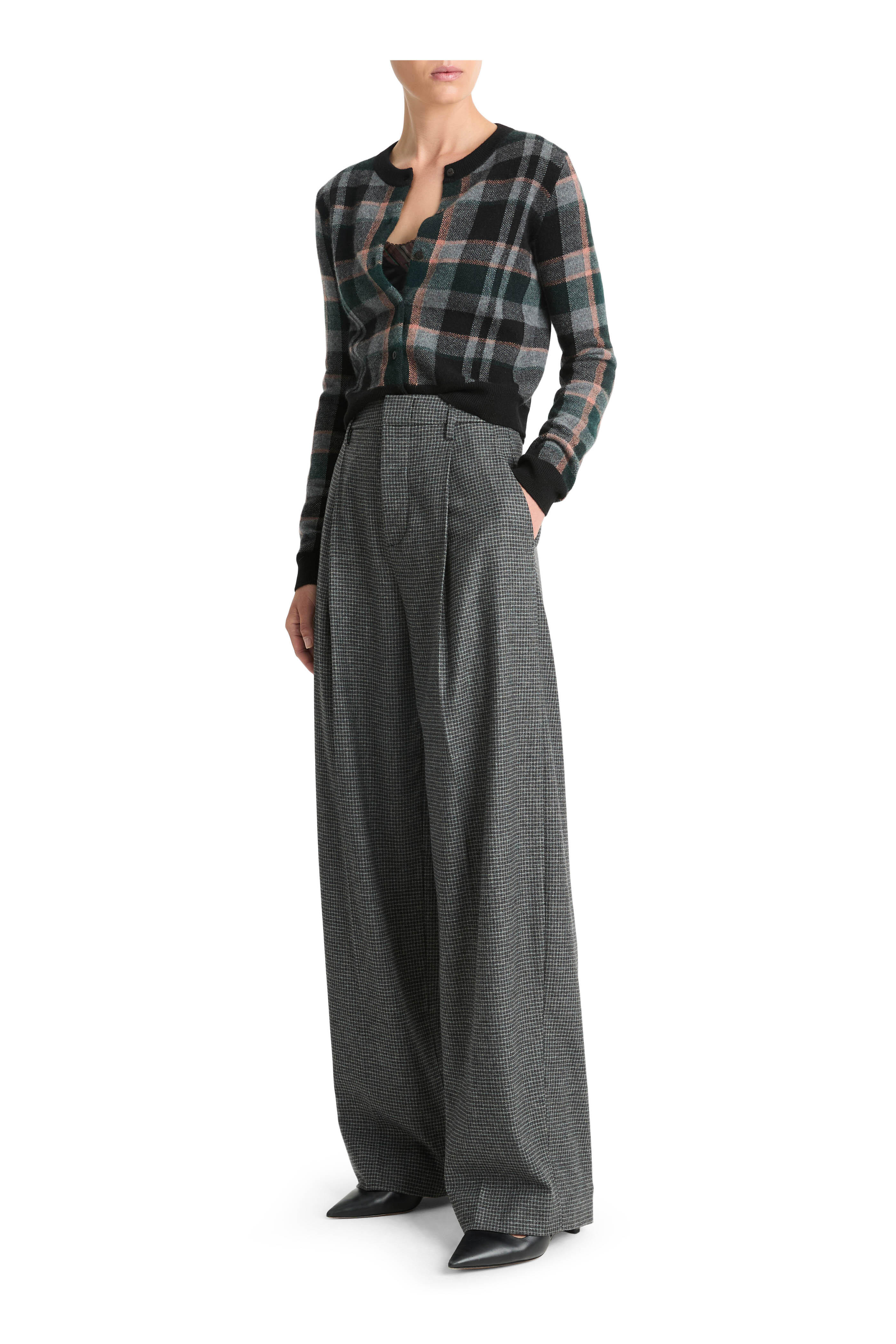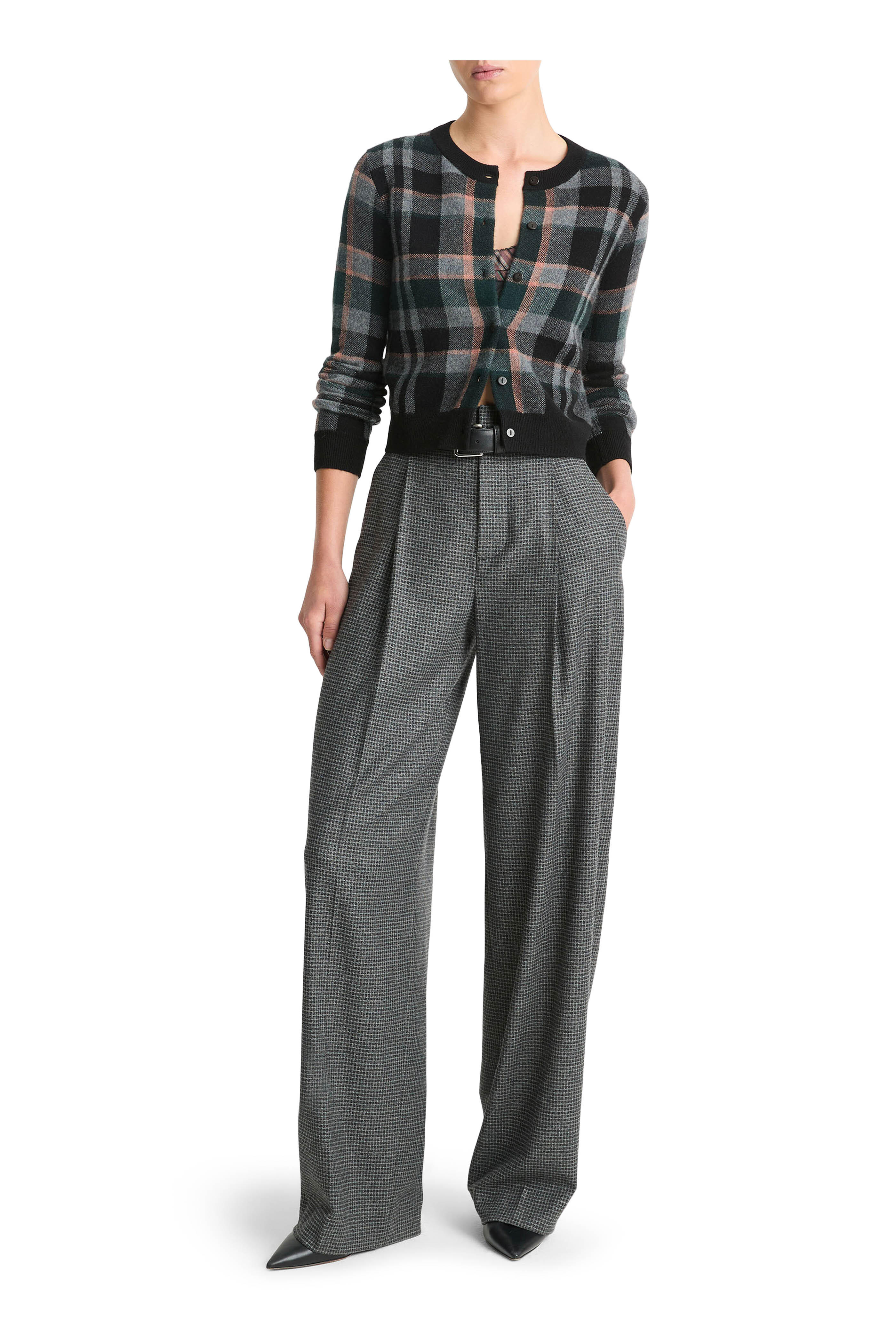 Gray Microcheck High Rise Wide Leg Pant