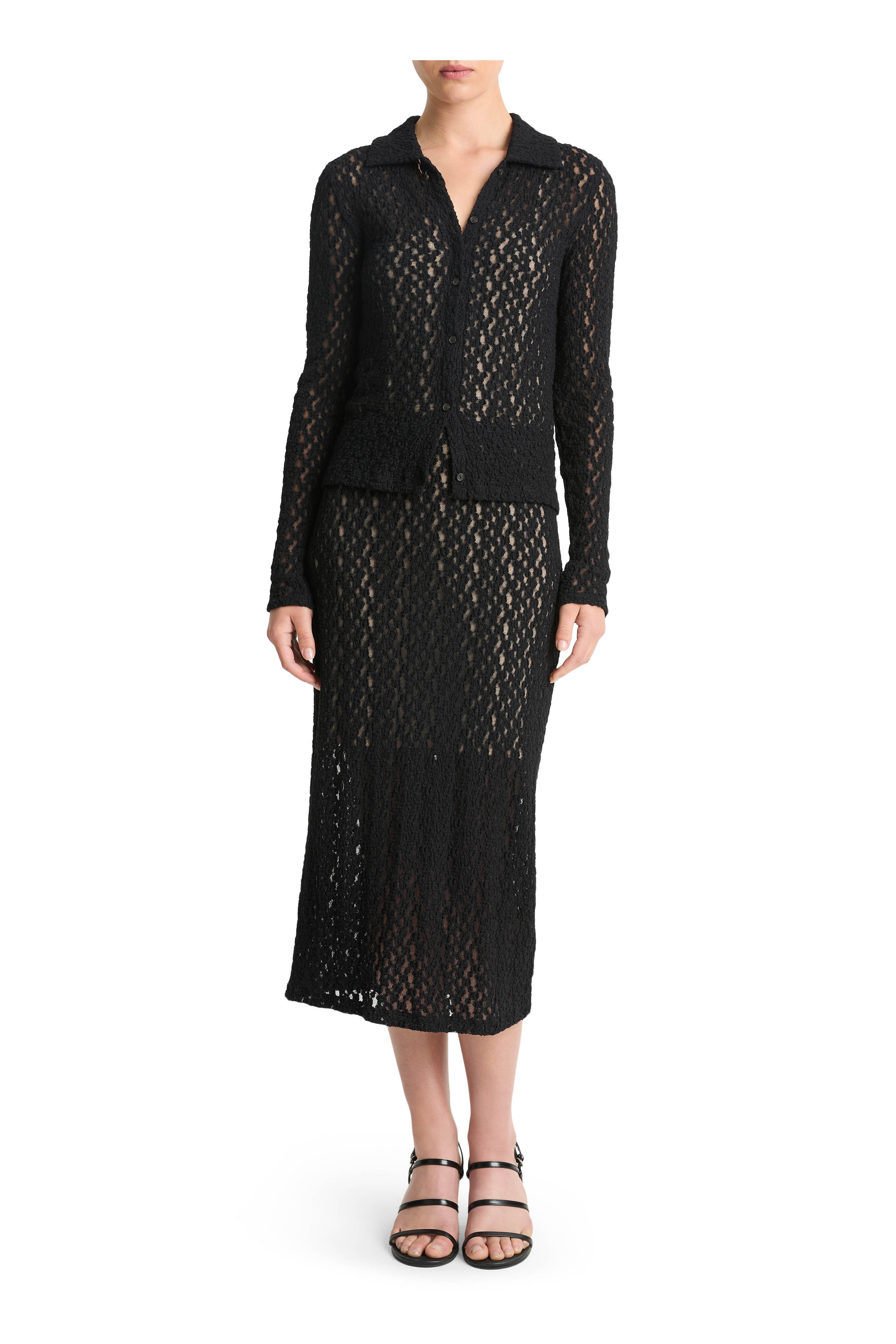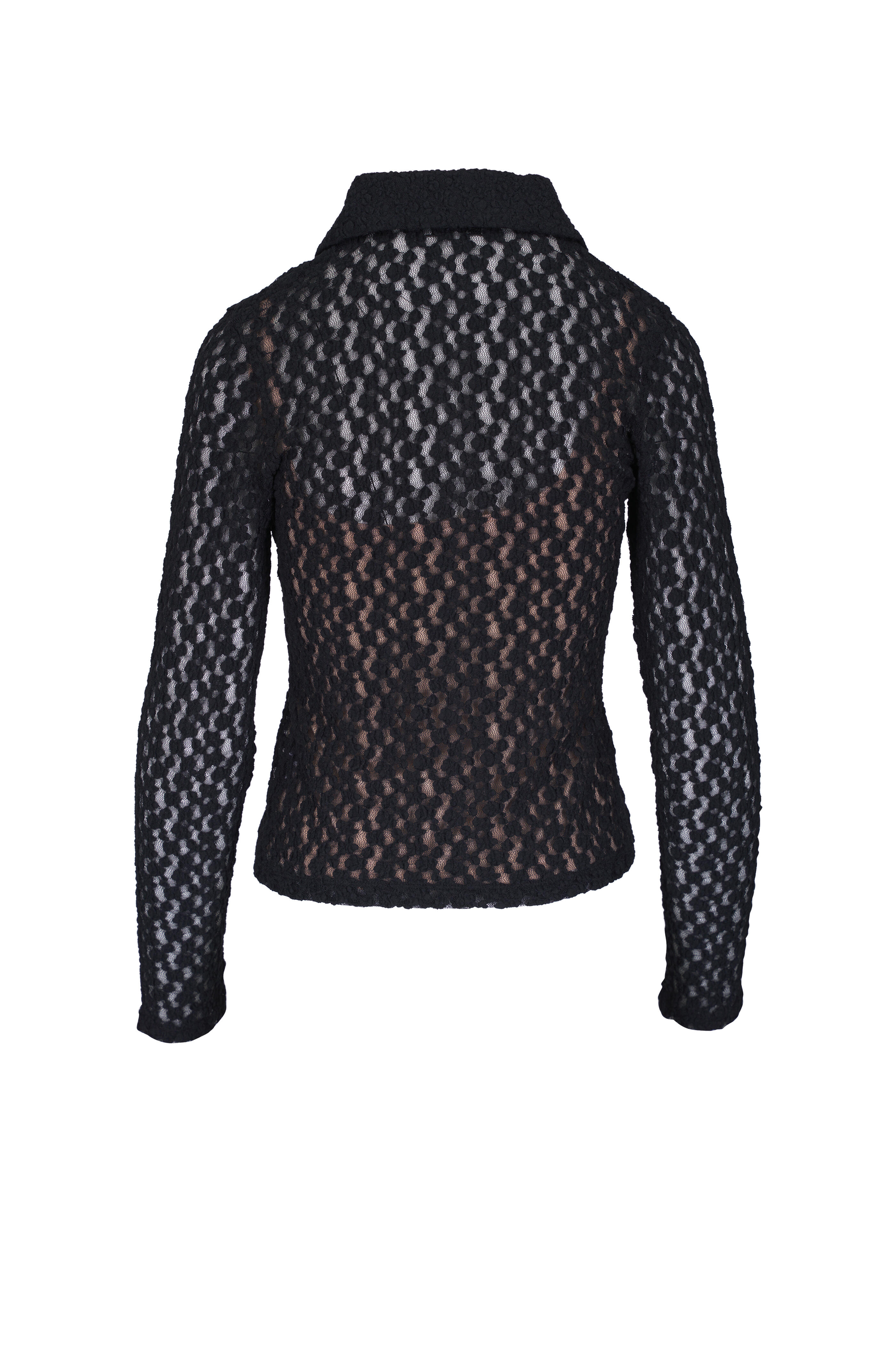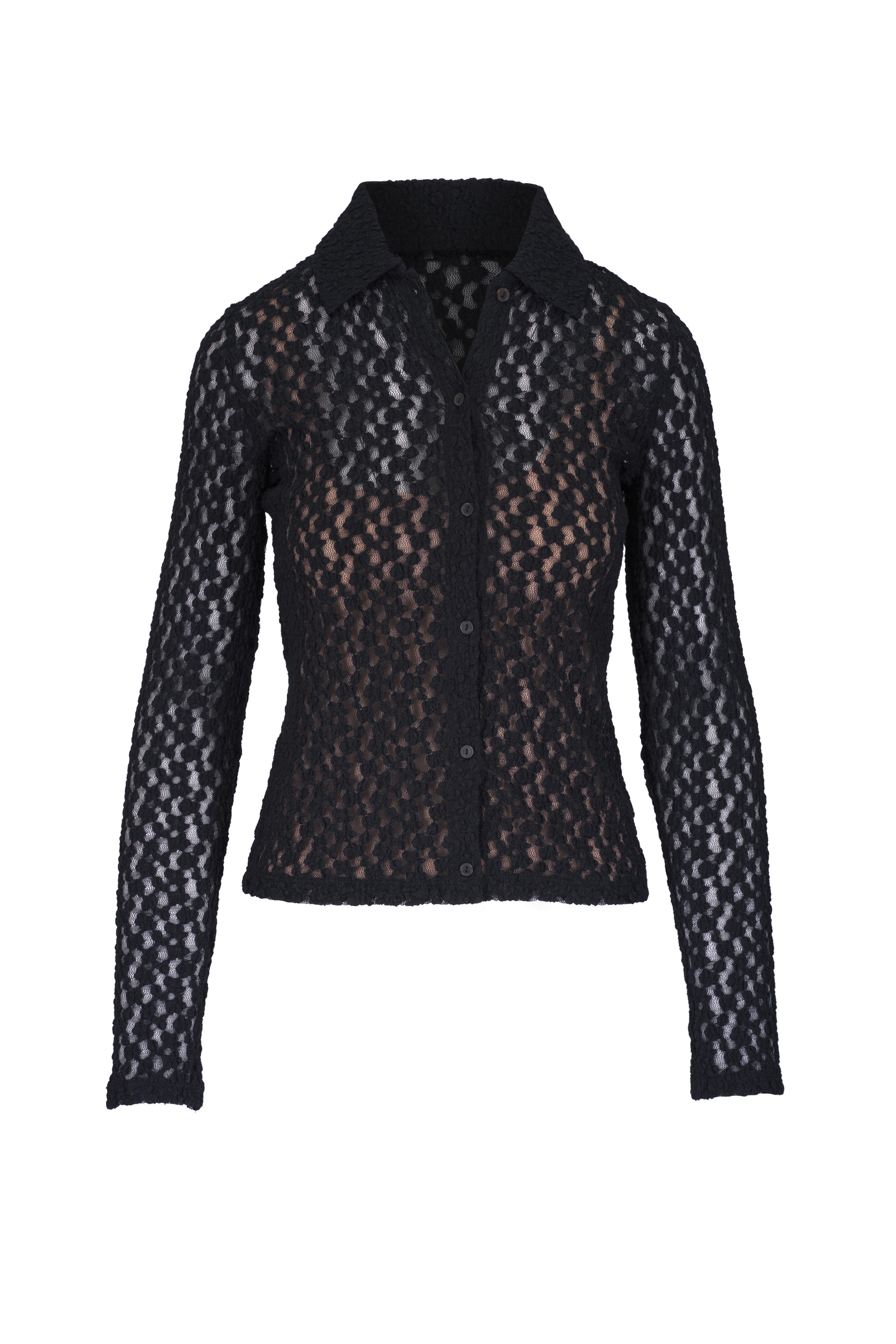 Spread collar. Front button placket. Removable camisole lining. Imported. 52% nylon, 45% cotton, 3% spandex. Dry clean.