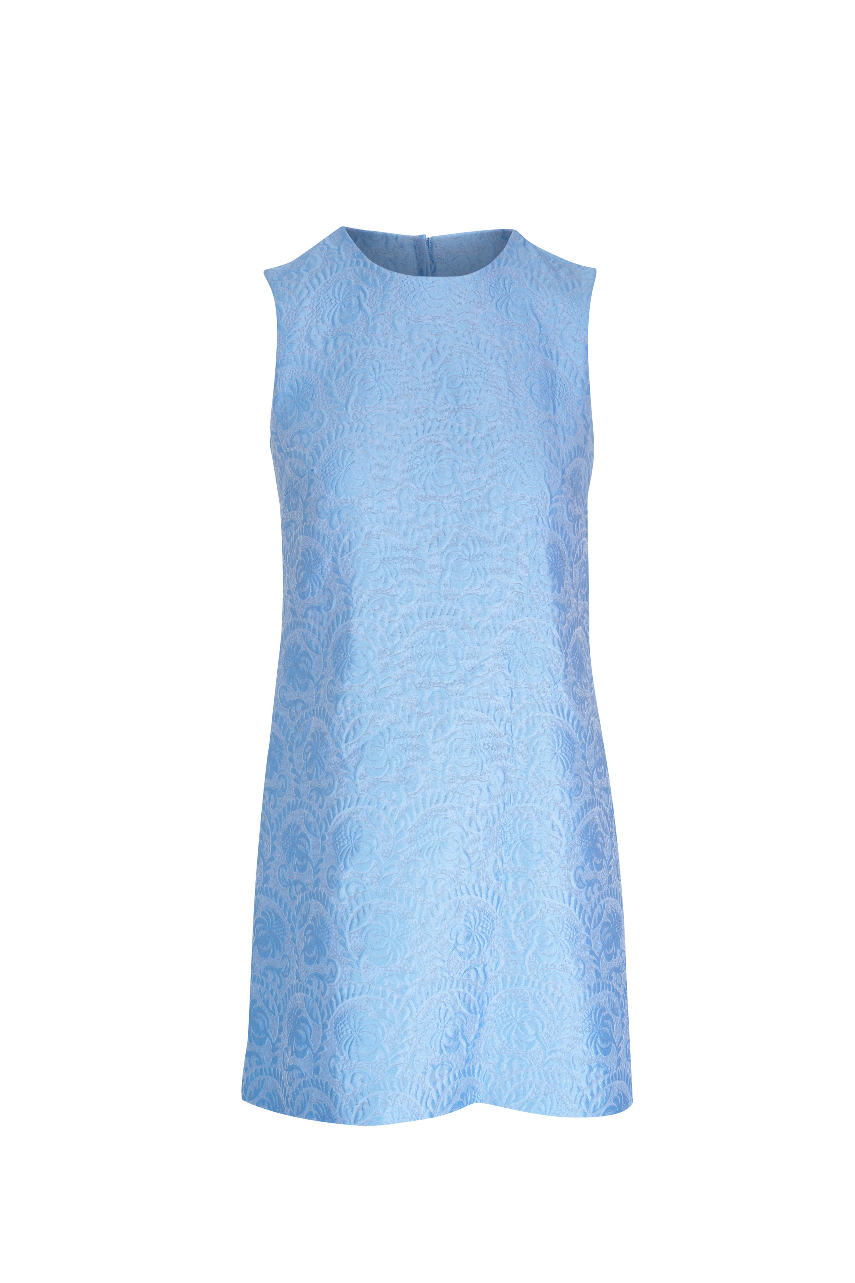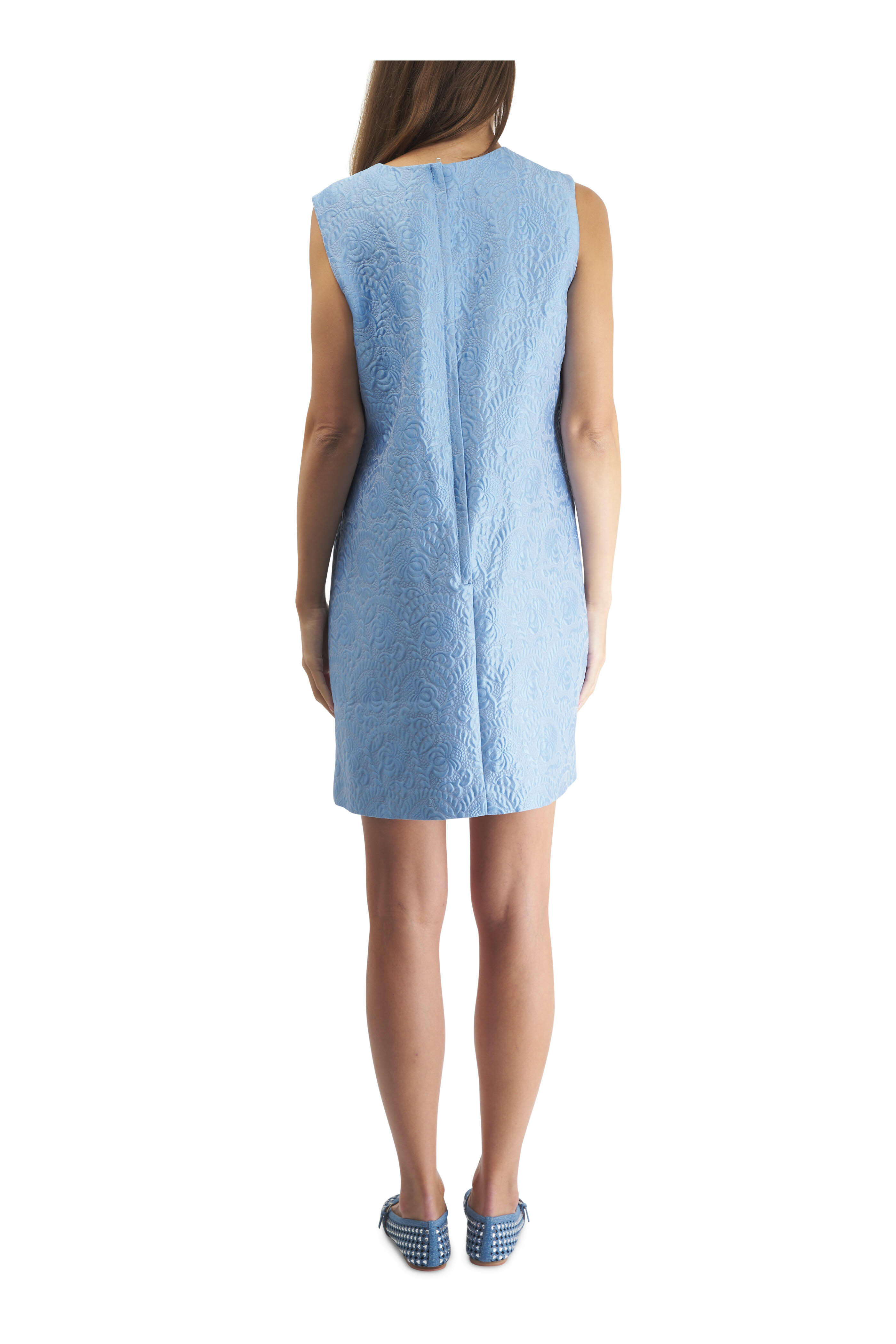 Fully lined. Round neckline. Concealed back zip. Bust shaping darts. Made in Italy. 33" shoulder to hem (Measurements taken from size 4).. 84% cotton, 23% polyester, 13% silk; Lining: 92% silk, 8% elastane. Dry clean.