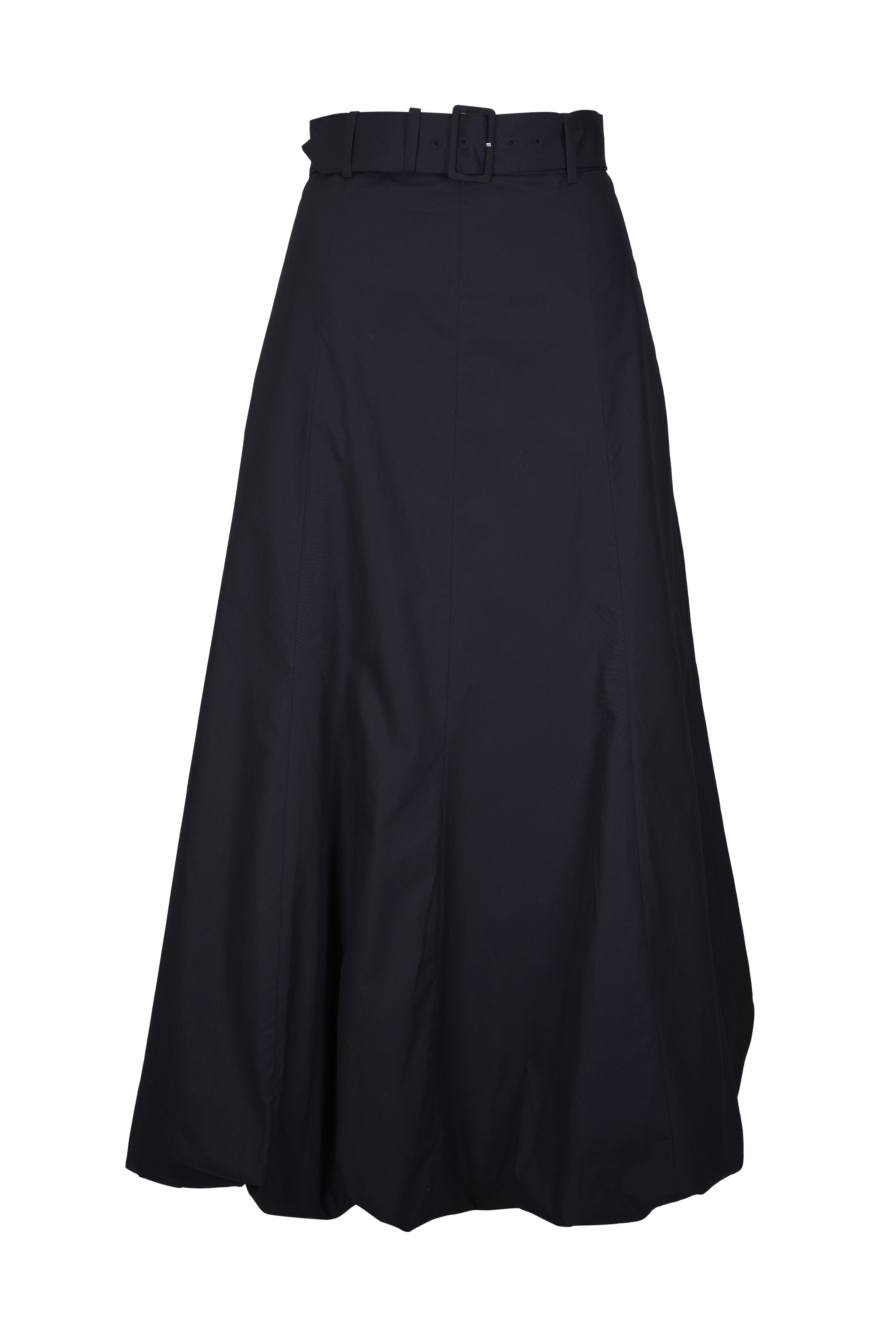 Concealed back zip. Banded waist with belt loops; belt. Side slip pockets. Elasticated bubble hem. Made in the USA. Approximately 40" waist to hem (measurements taken from size 2). 100% cotton. Machine wash cold.