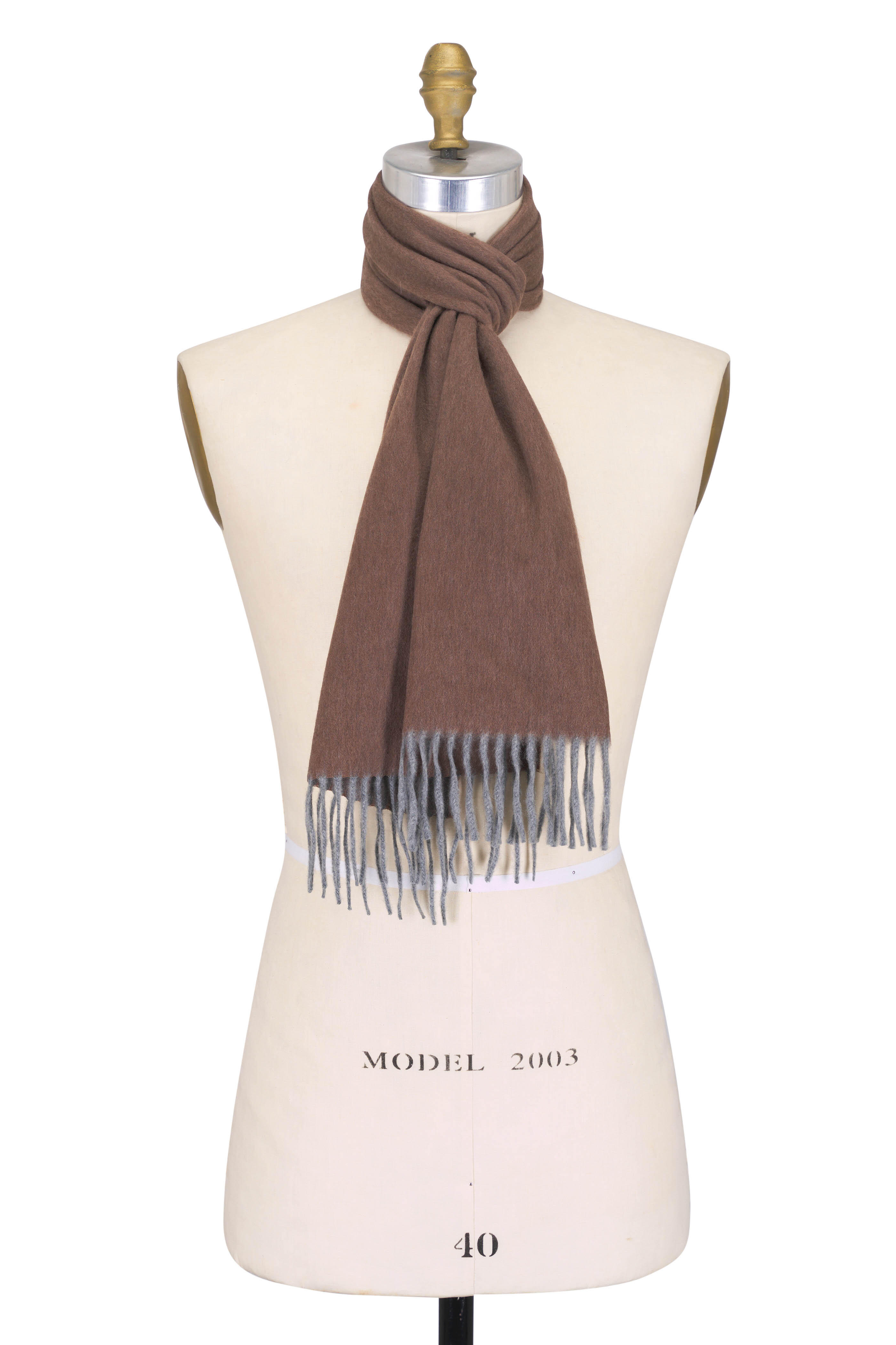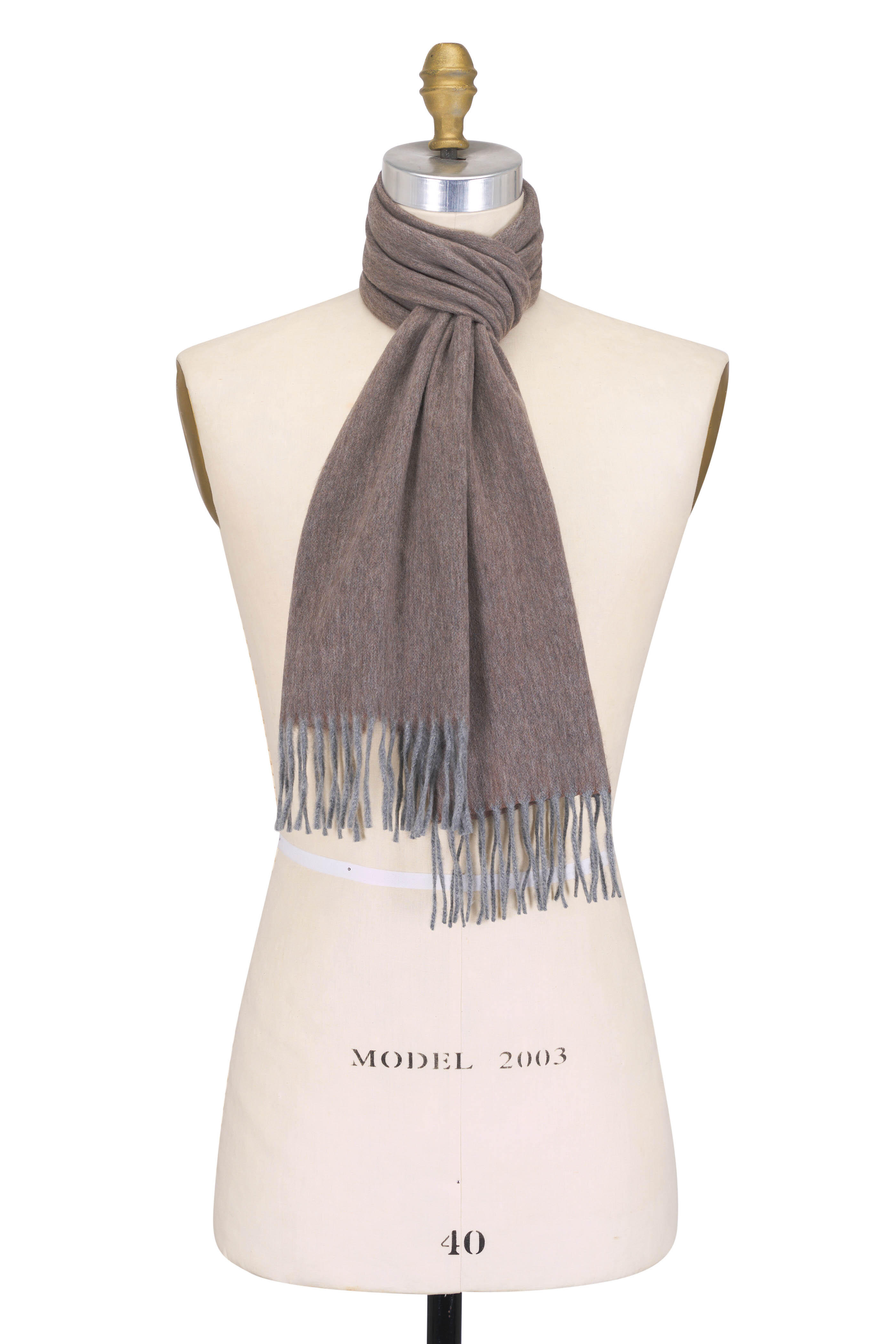 Fringe trim. Made in Scotland. 12" x 64". 100% cashmere. Dry clean.