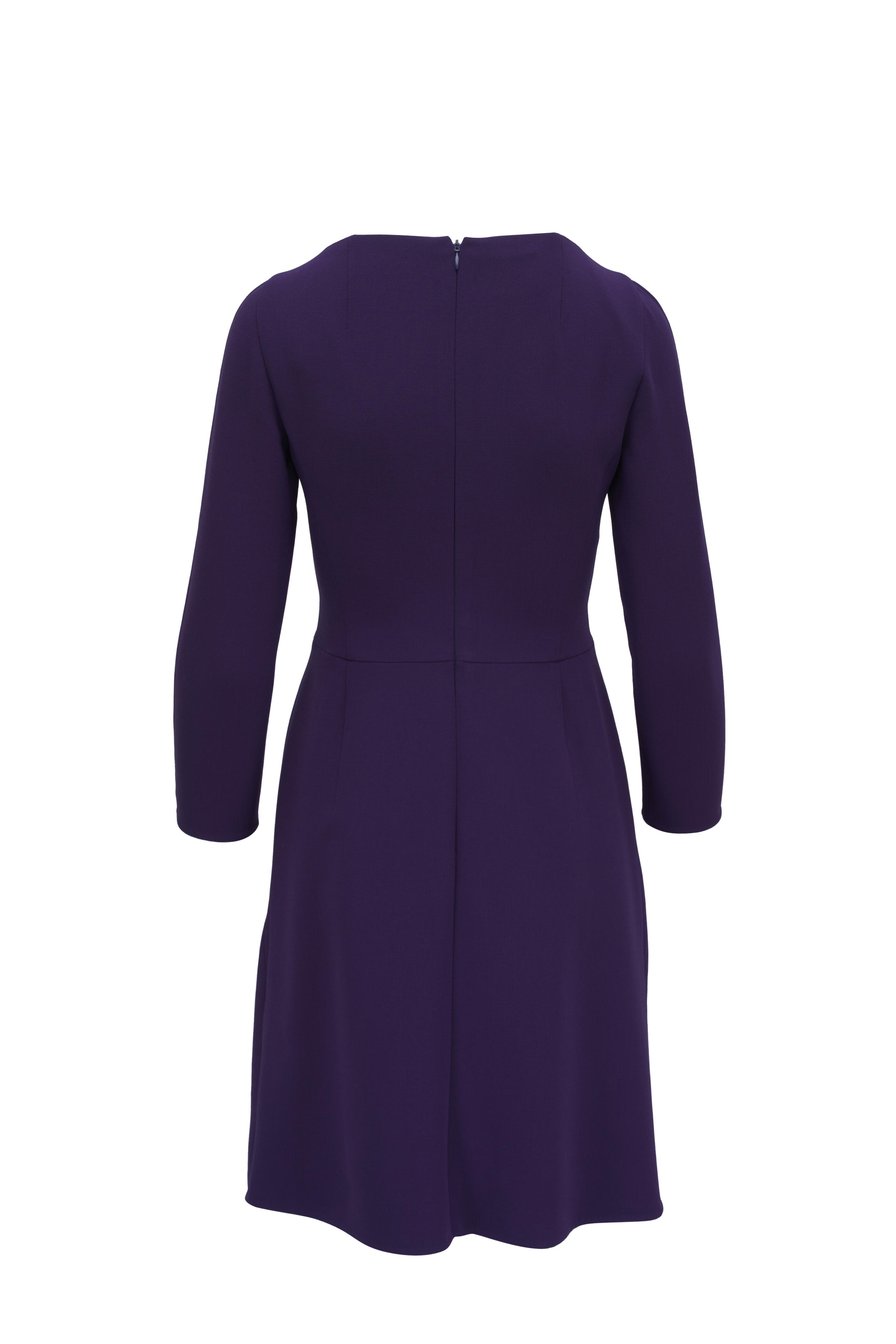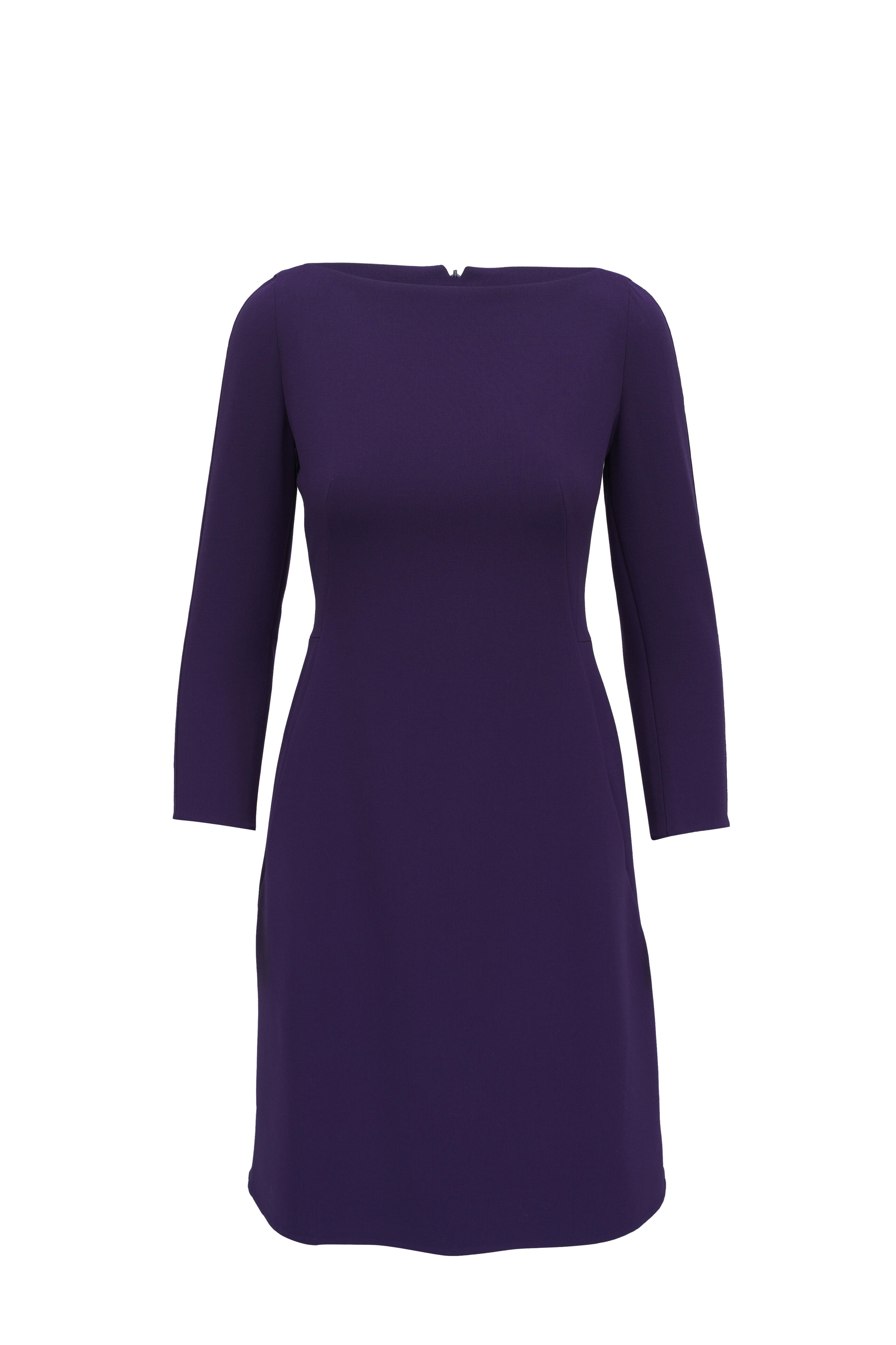 Bateau neckline. Concealead back zip. Bracelet-length sleeves. Concealed side zip pockets. Fabric from Italy. Approx. 37 ½" shoulder to hem (Measurements taken from a size 4).. 96% wool, 4% elastane. Dry clean.