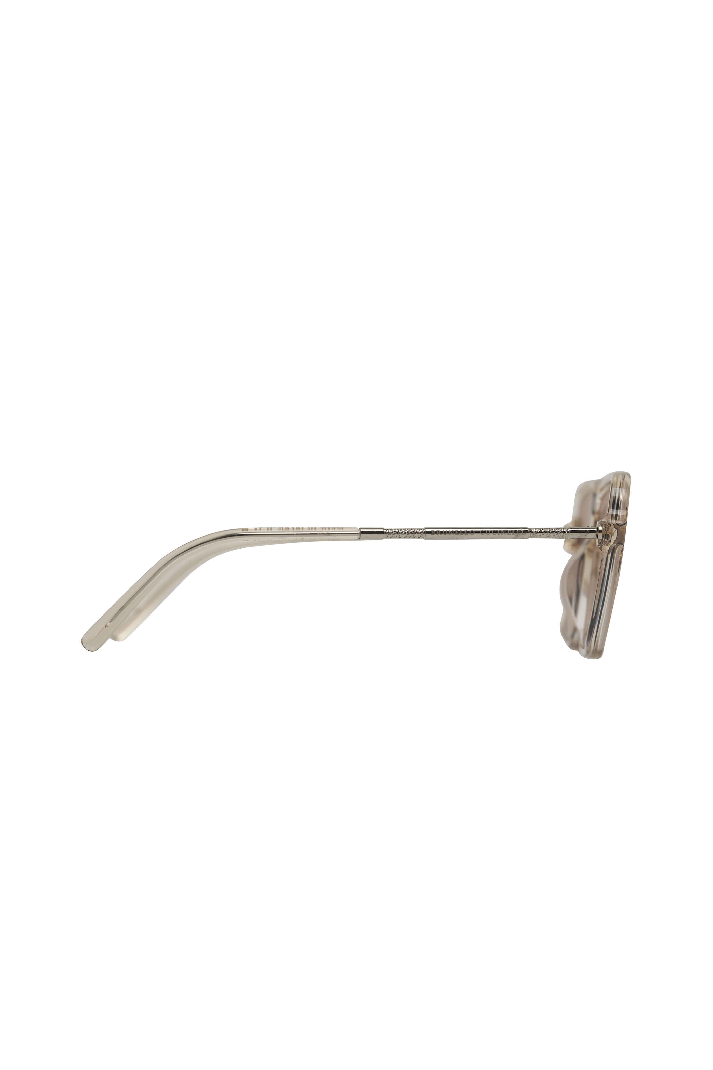 Frame material: acetate and titanium. Frame color: silver. Frame fit: regular fitting. Lens type: polyamide. Lens color: powder. Made in Japan. 100% UV protection.