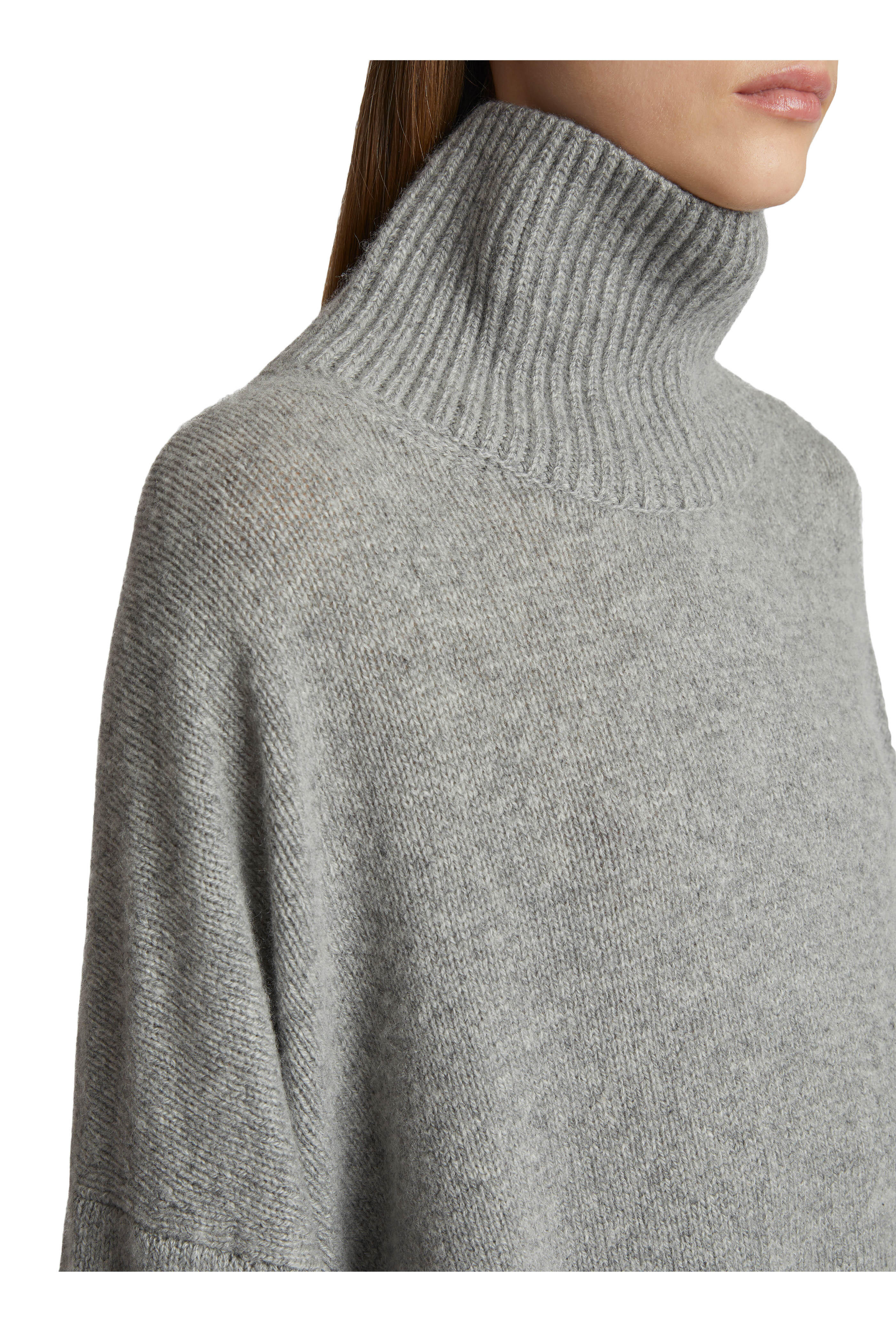 Turtleneck. Ribbed trims. Imported. 96% cashmere, 4% elastane. Dry clean.