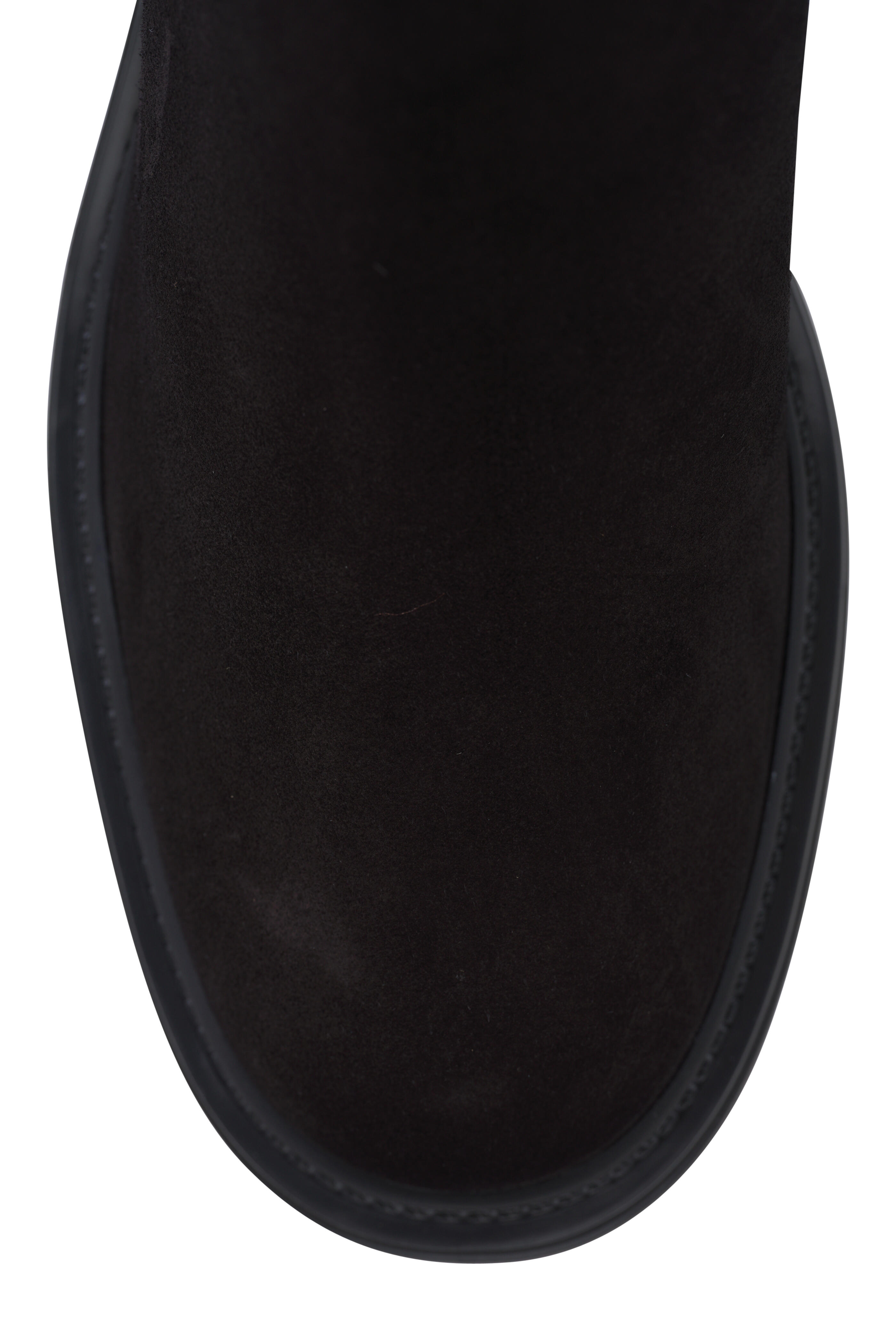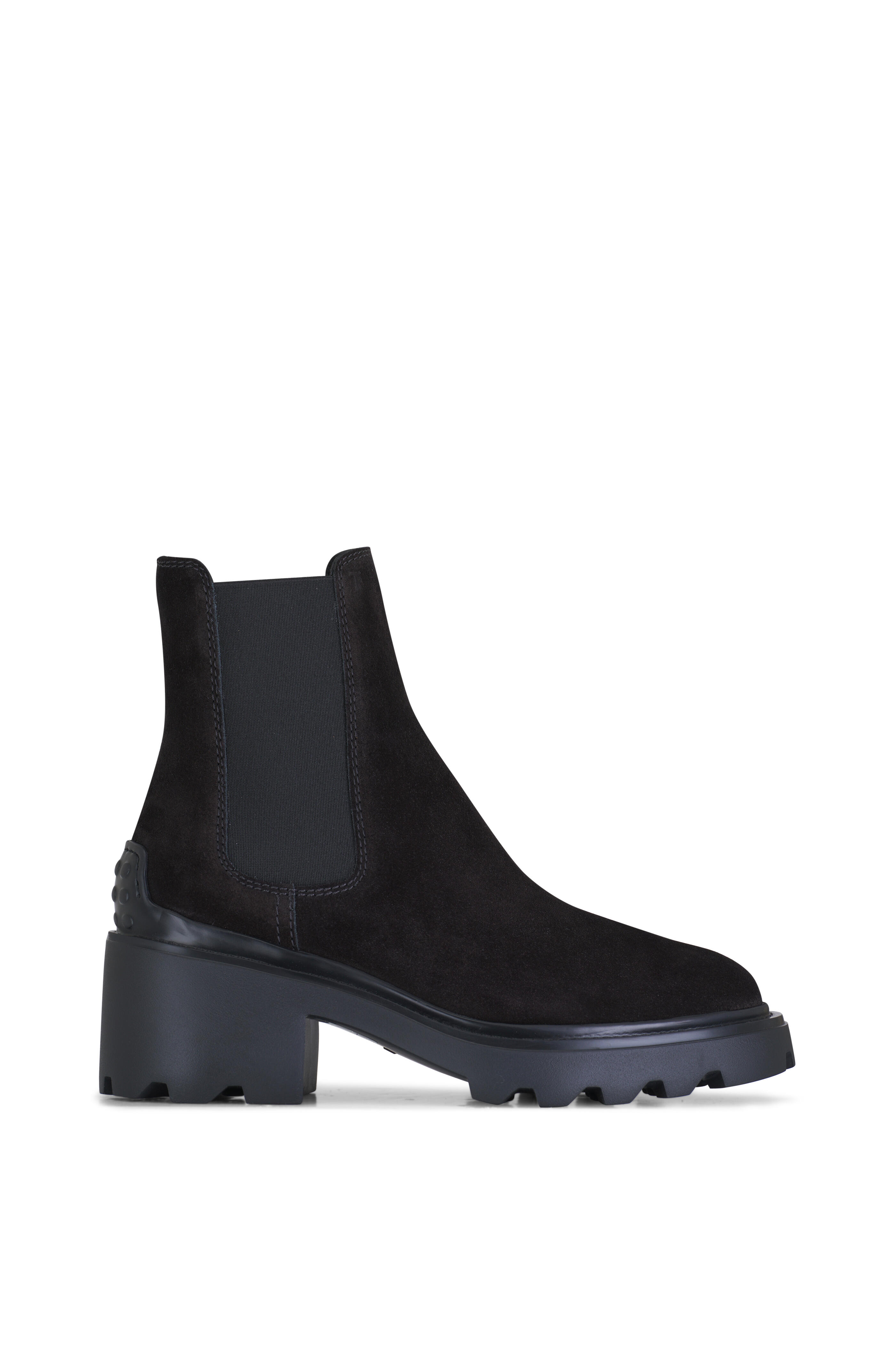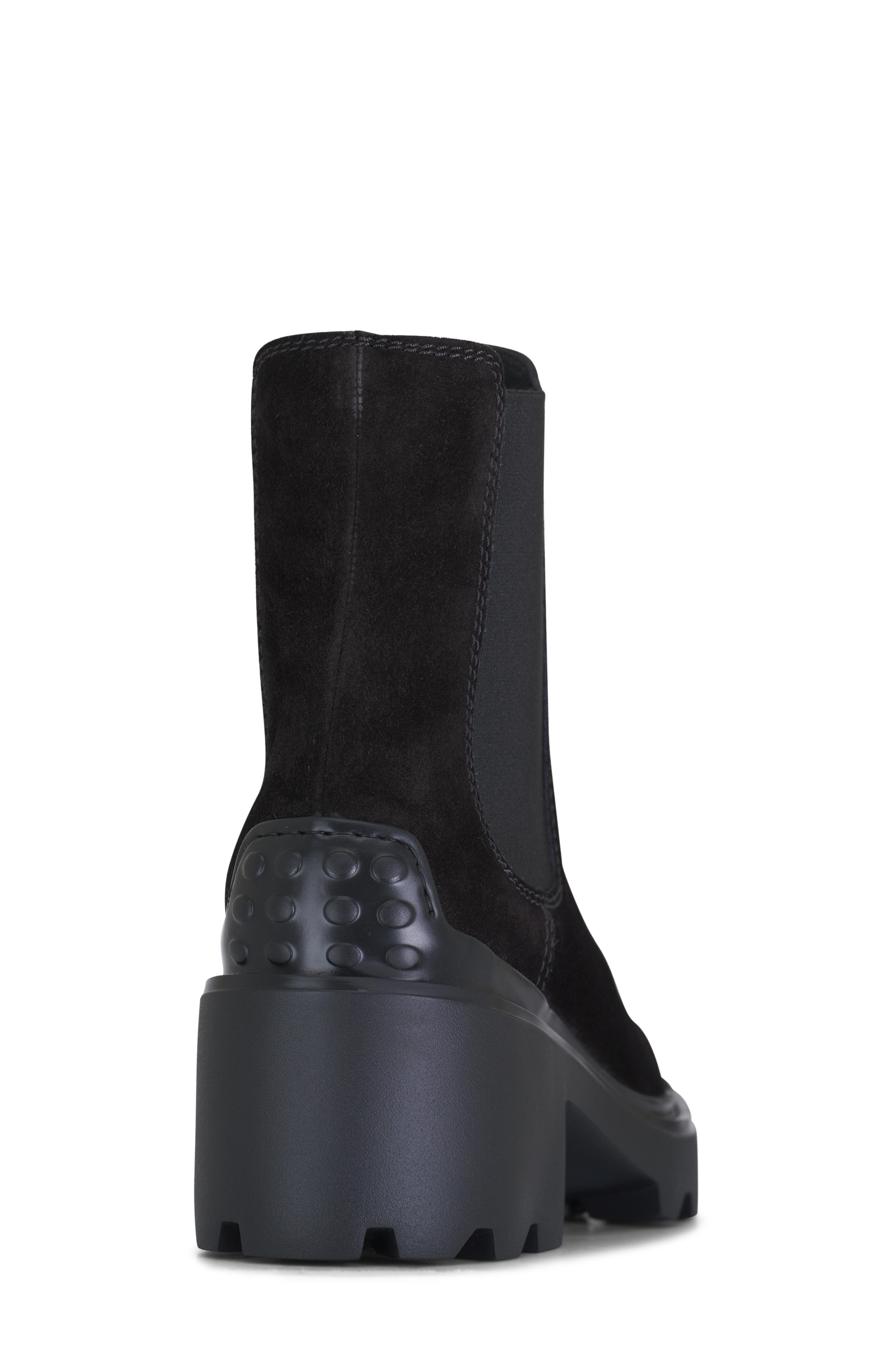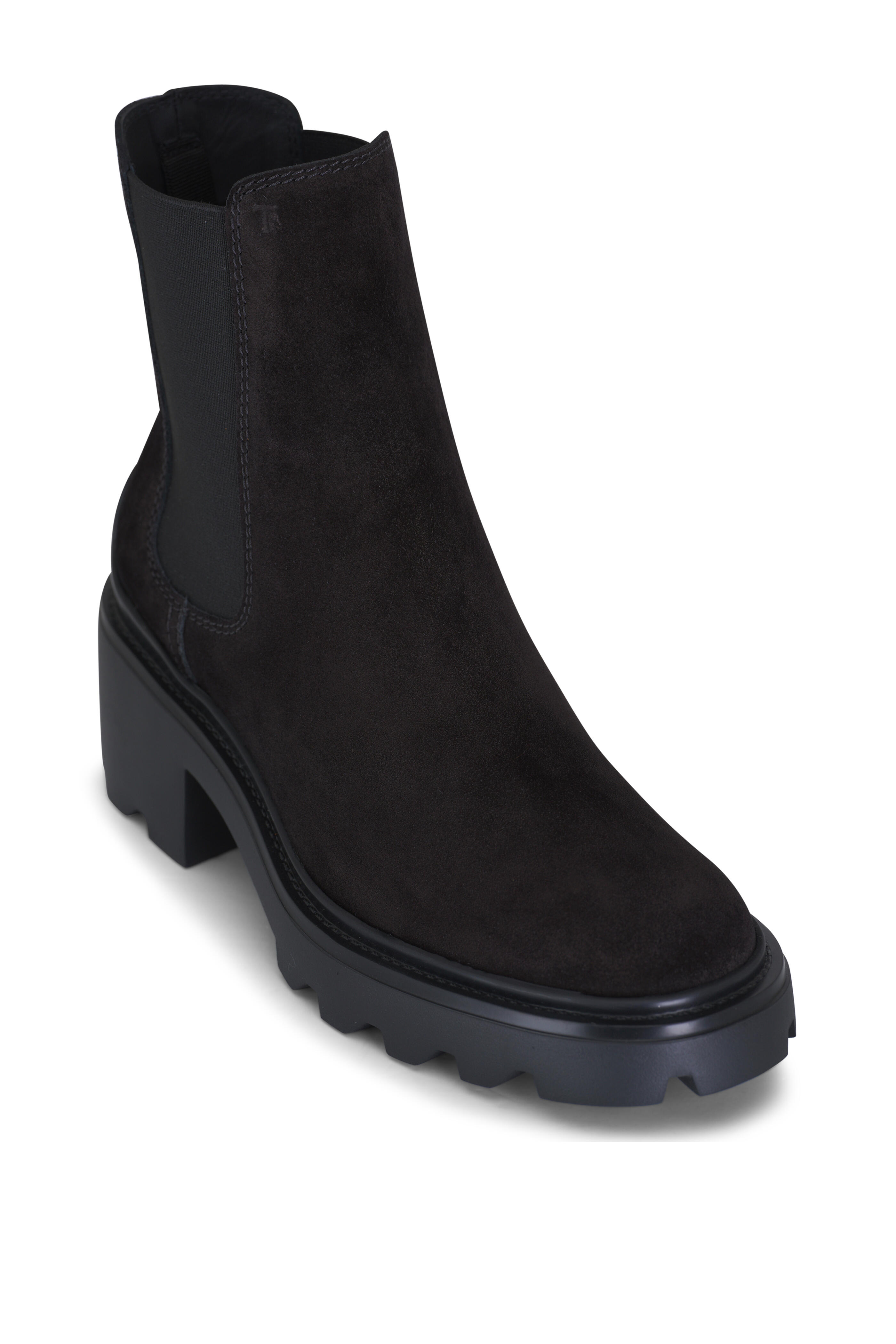 Suede upper. Round toe. Elasticized side gores. Leather lining and insole. Rubber pebble detail on back of heel. Rubber chunky lug sole. Made in Italy. Heel measurement 60mm, (2.35").