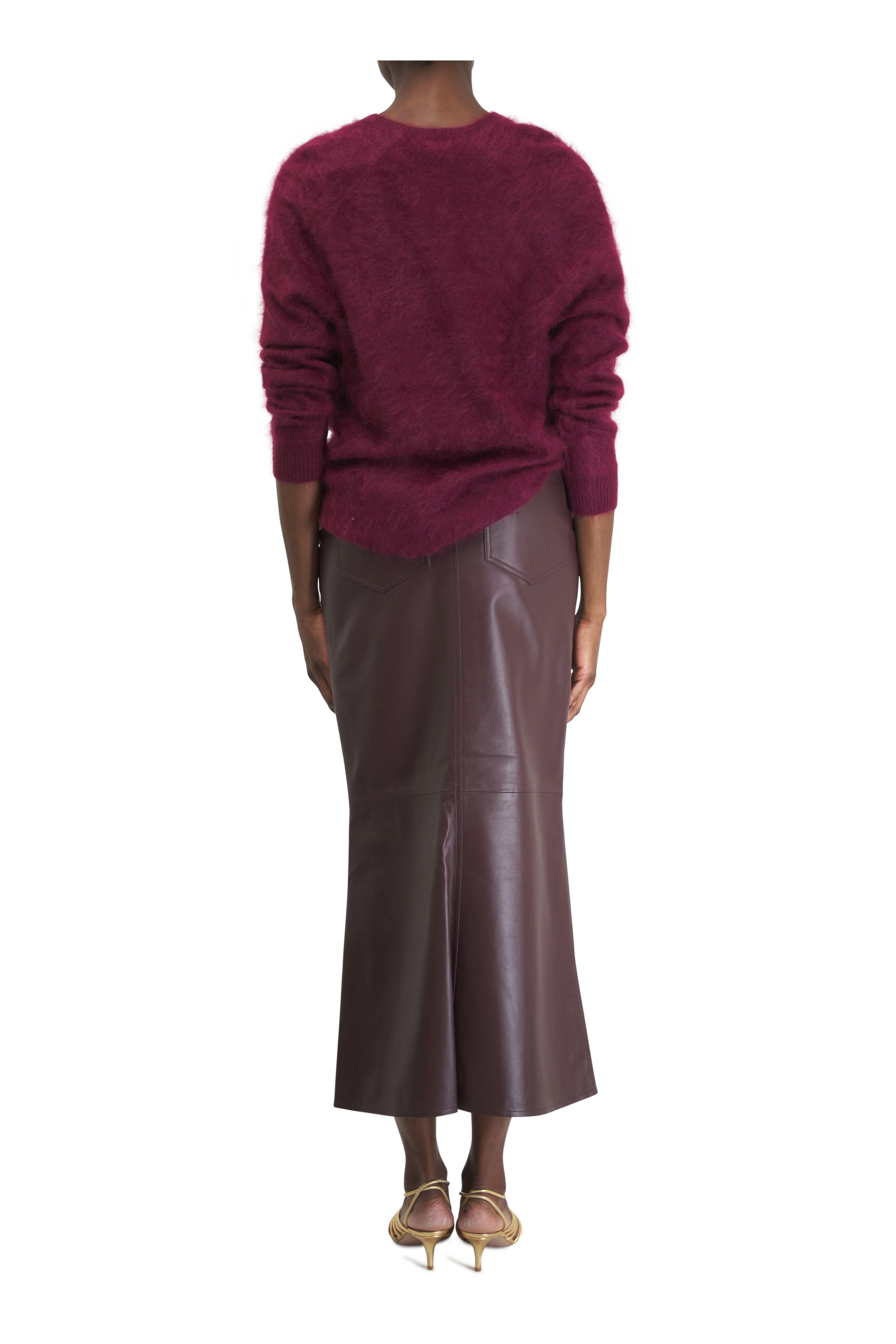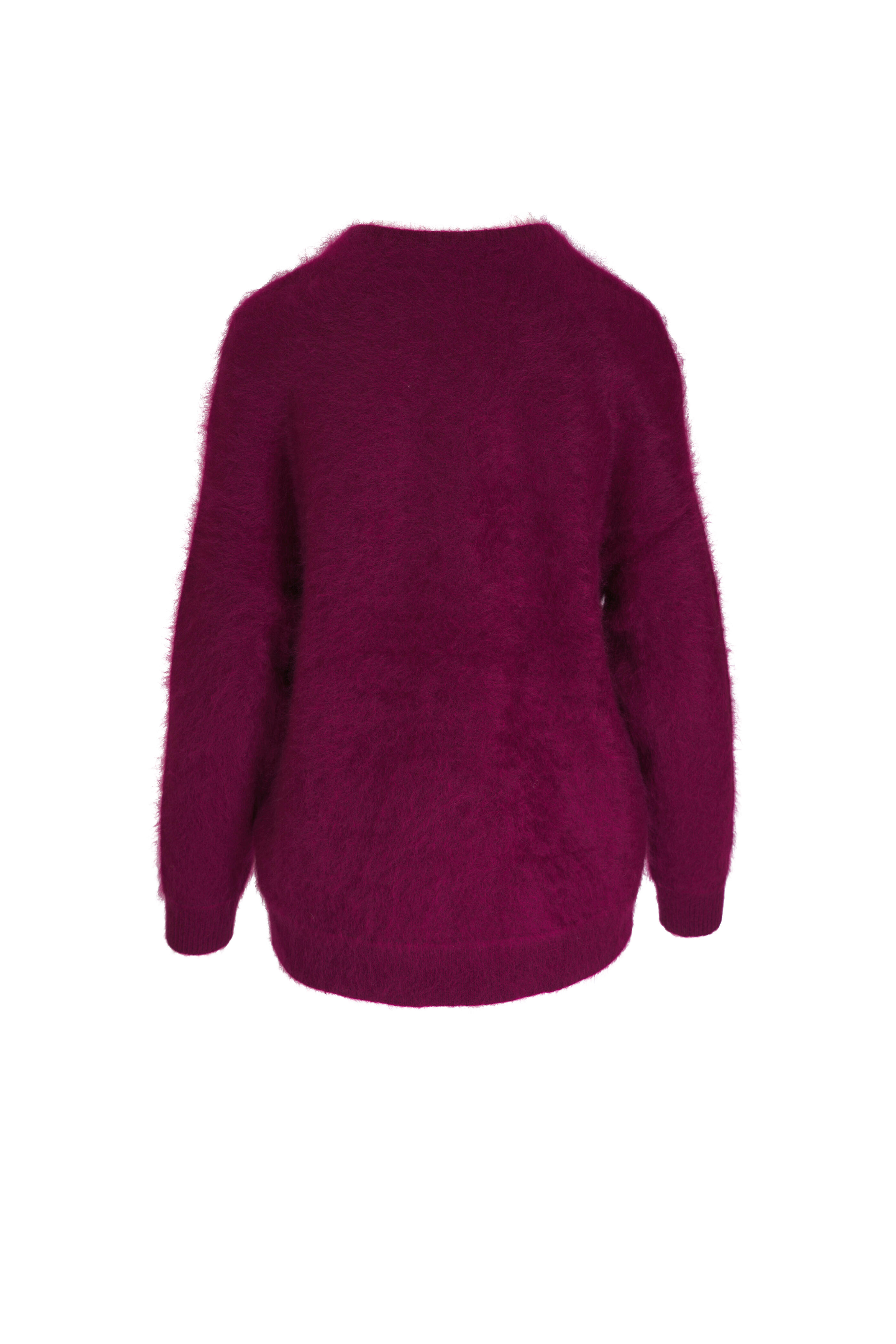 V-neckline. Ribbed trims. Imported. Shoulder to hem 28" ( measurement size 1/XS). 100% cashmere. Hand wash.