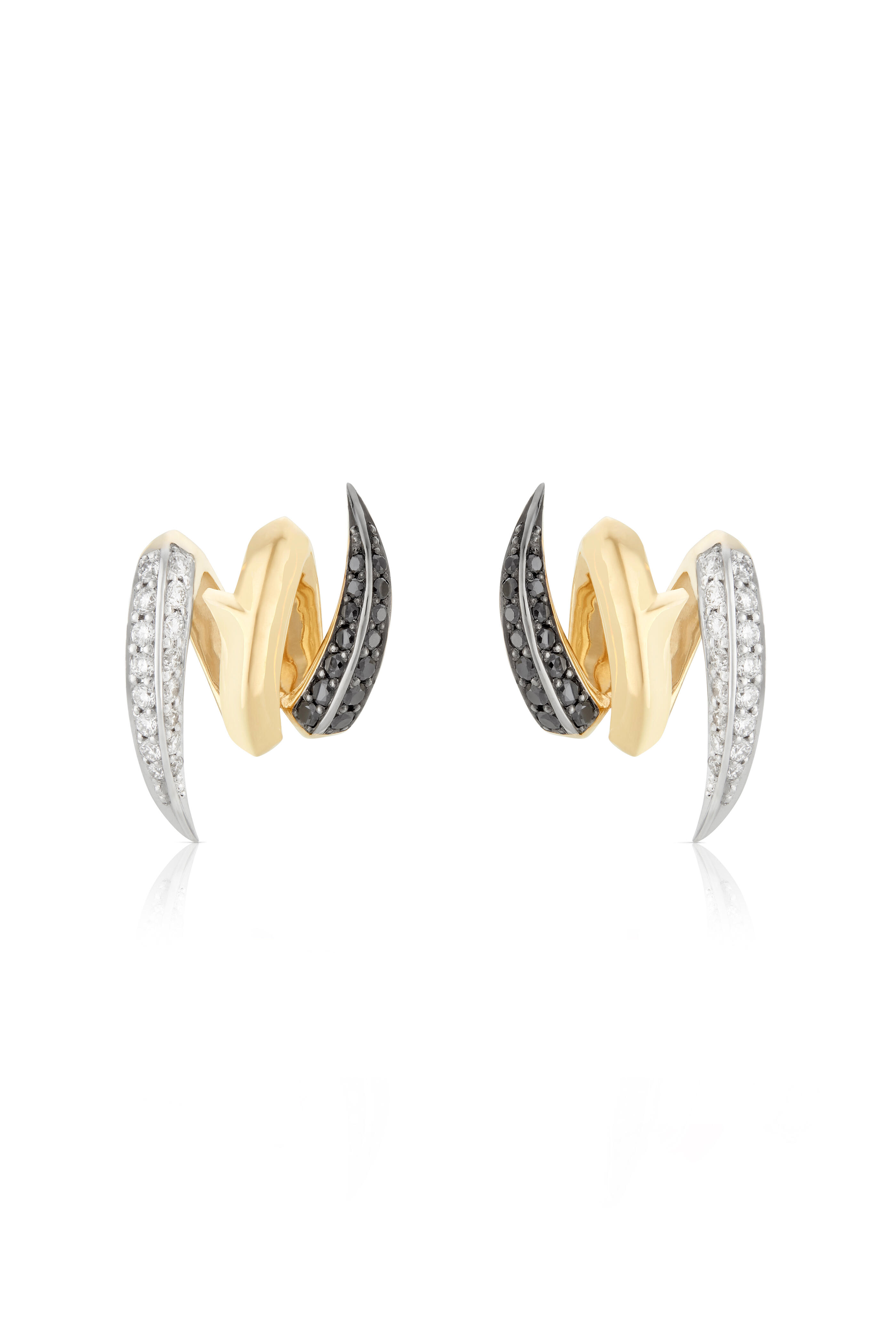 18k Yellow Gold/White Gold. .14 ct White Diamond Pave. .09 ct Black Diamond Pave.