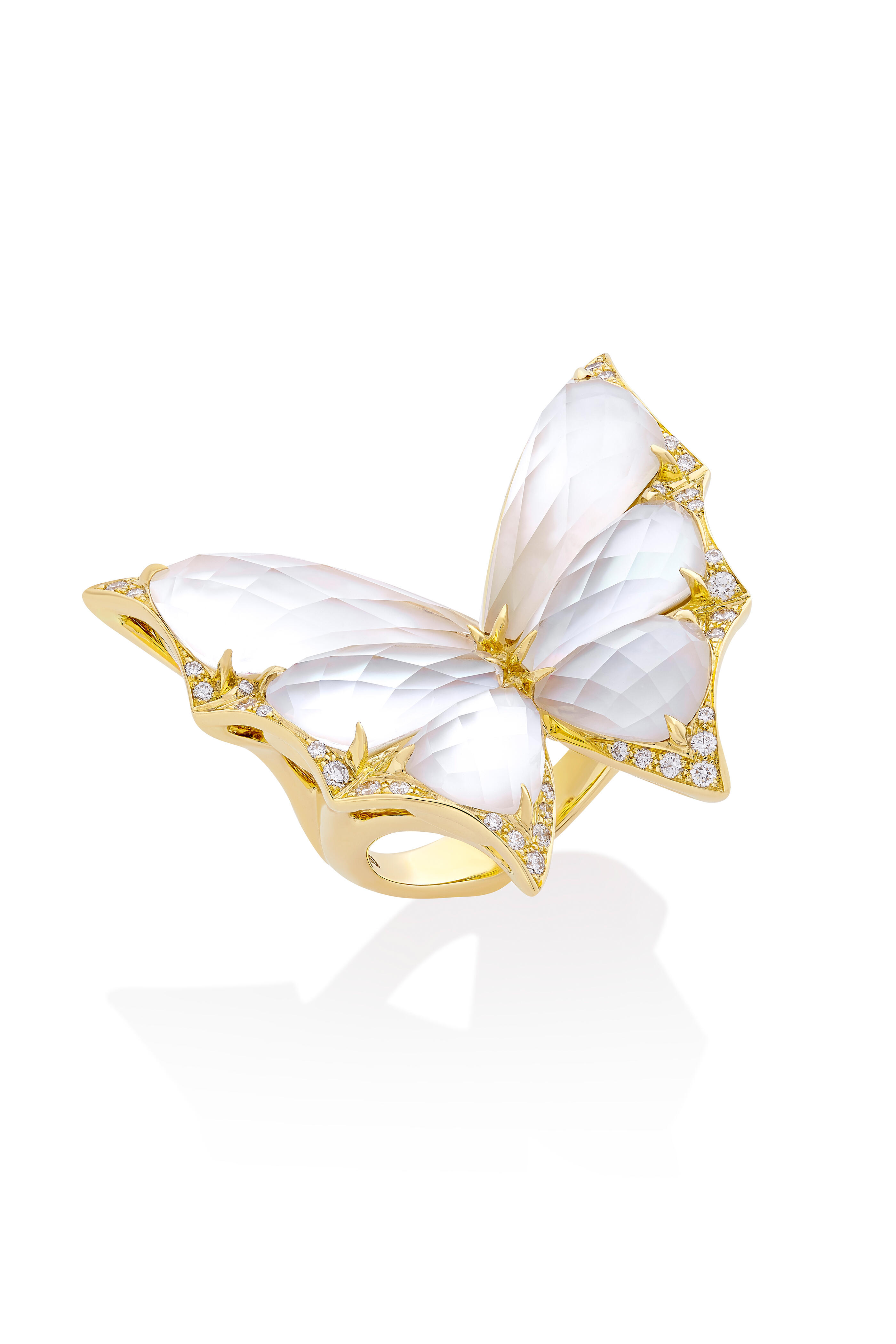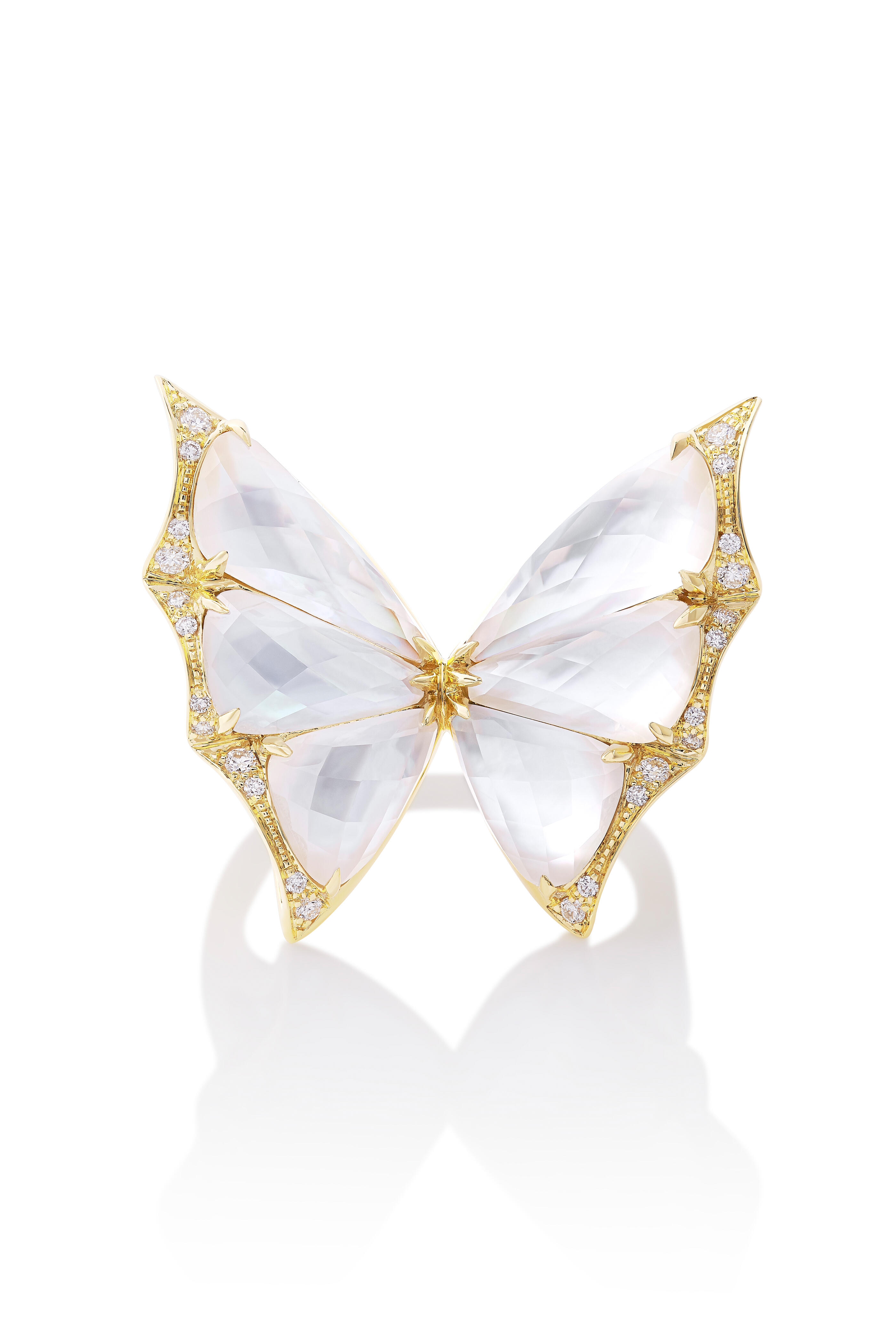 18k Yellow Gold. .14 ct White Diamond Pave. White Mother of Pearl.