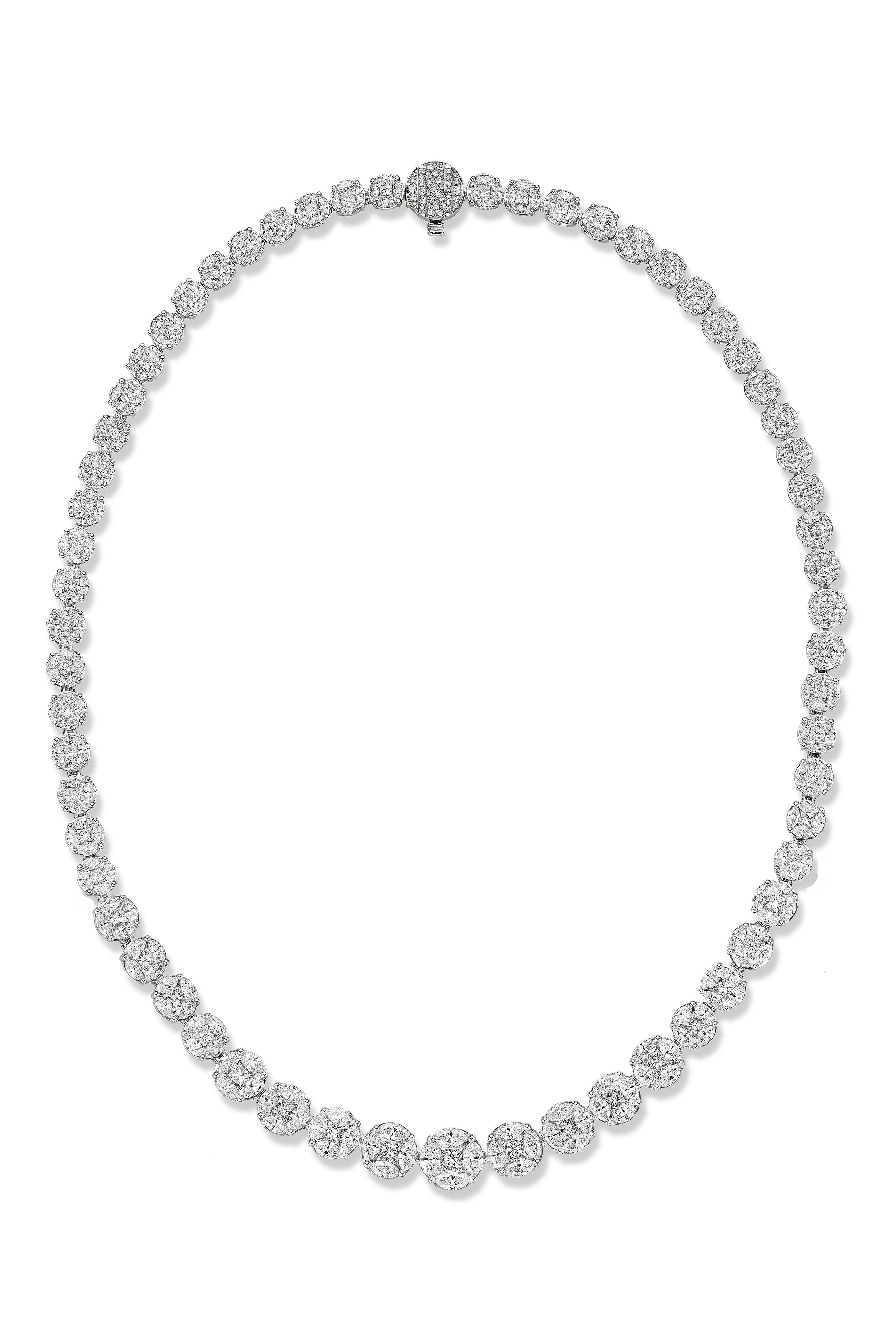 18K White Gold. White Rhodium. White Diamond=18.22 CT. 16 IN.