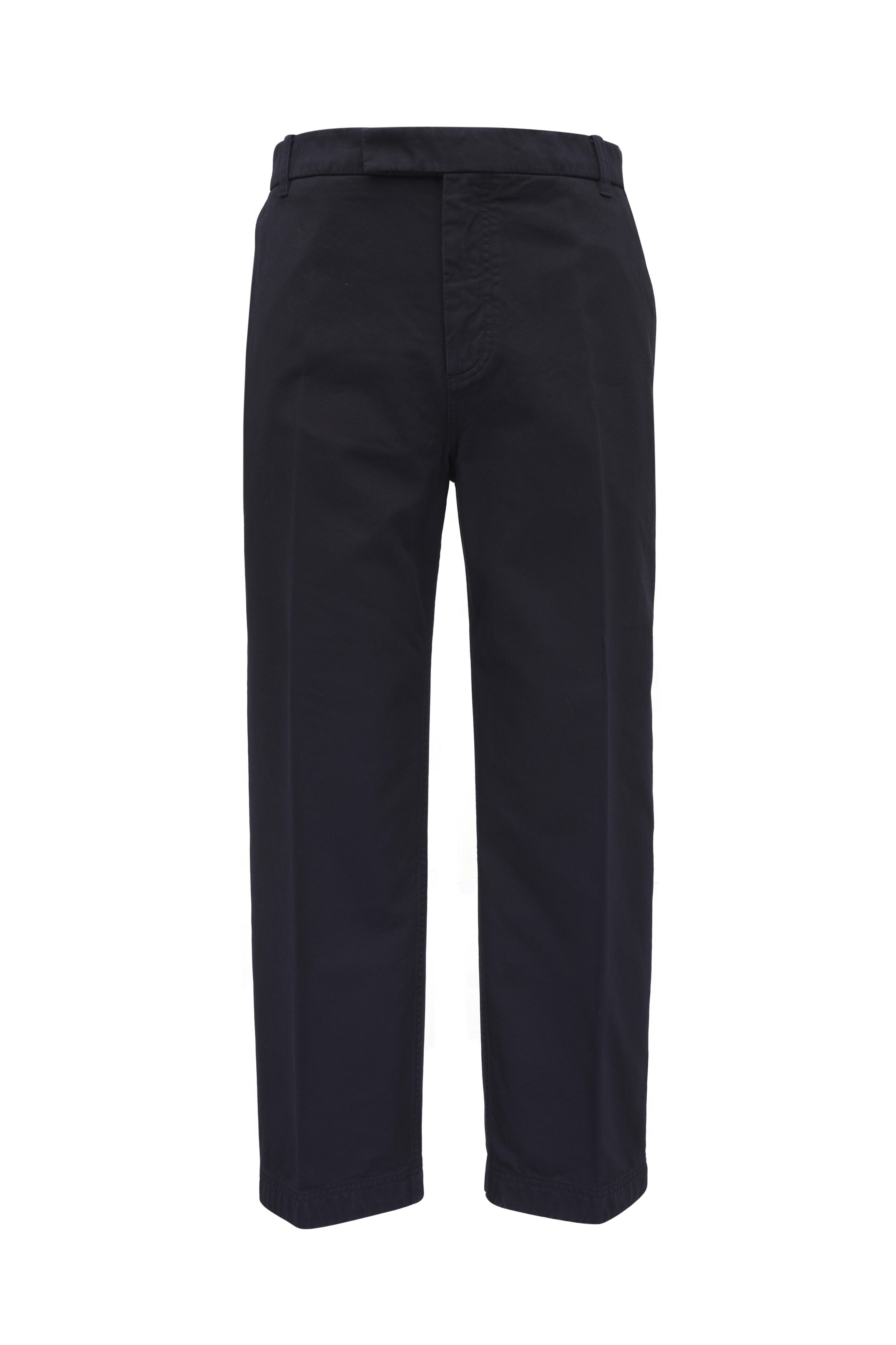 Zip fly; extended waist tab. Side seam pockets; back besom pockets. Made in Italy. 27" Inseam (size 36R). 100% cotton; unlined. Dry clean.