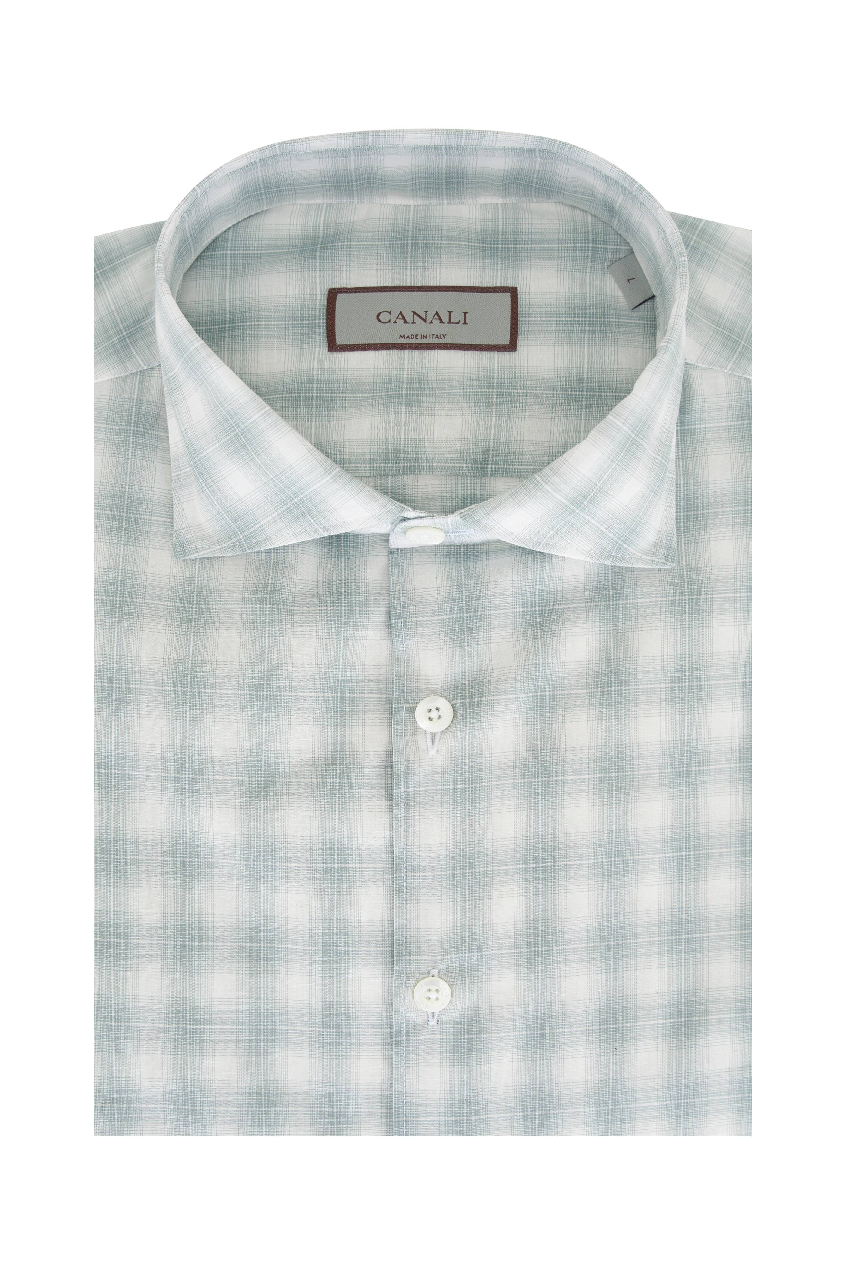 Spread collar. French placket. Single button cuffs. Made in Italy. 100% cotton. Machine wash.