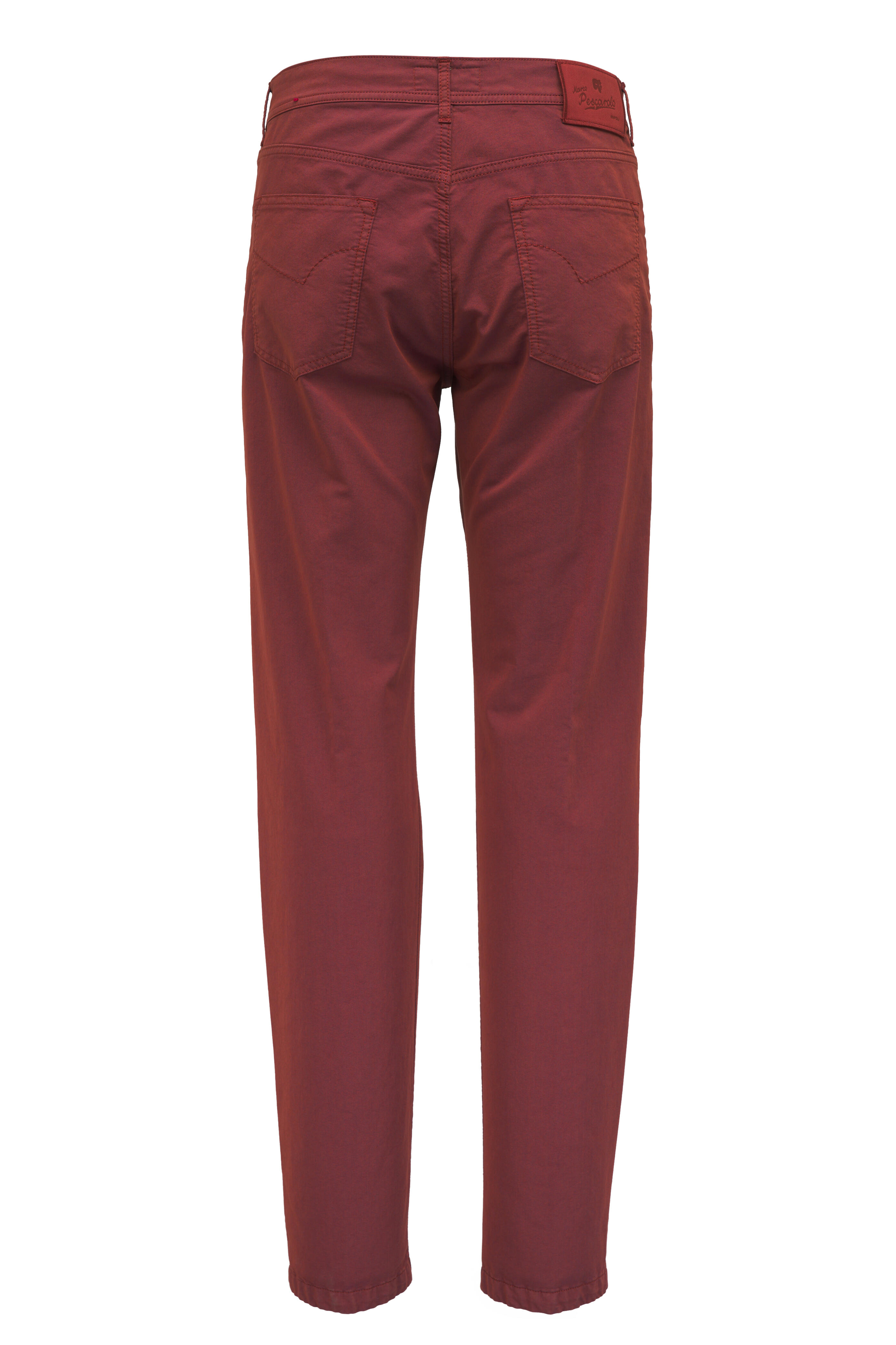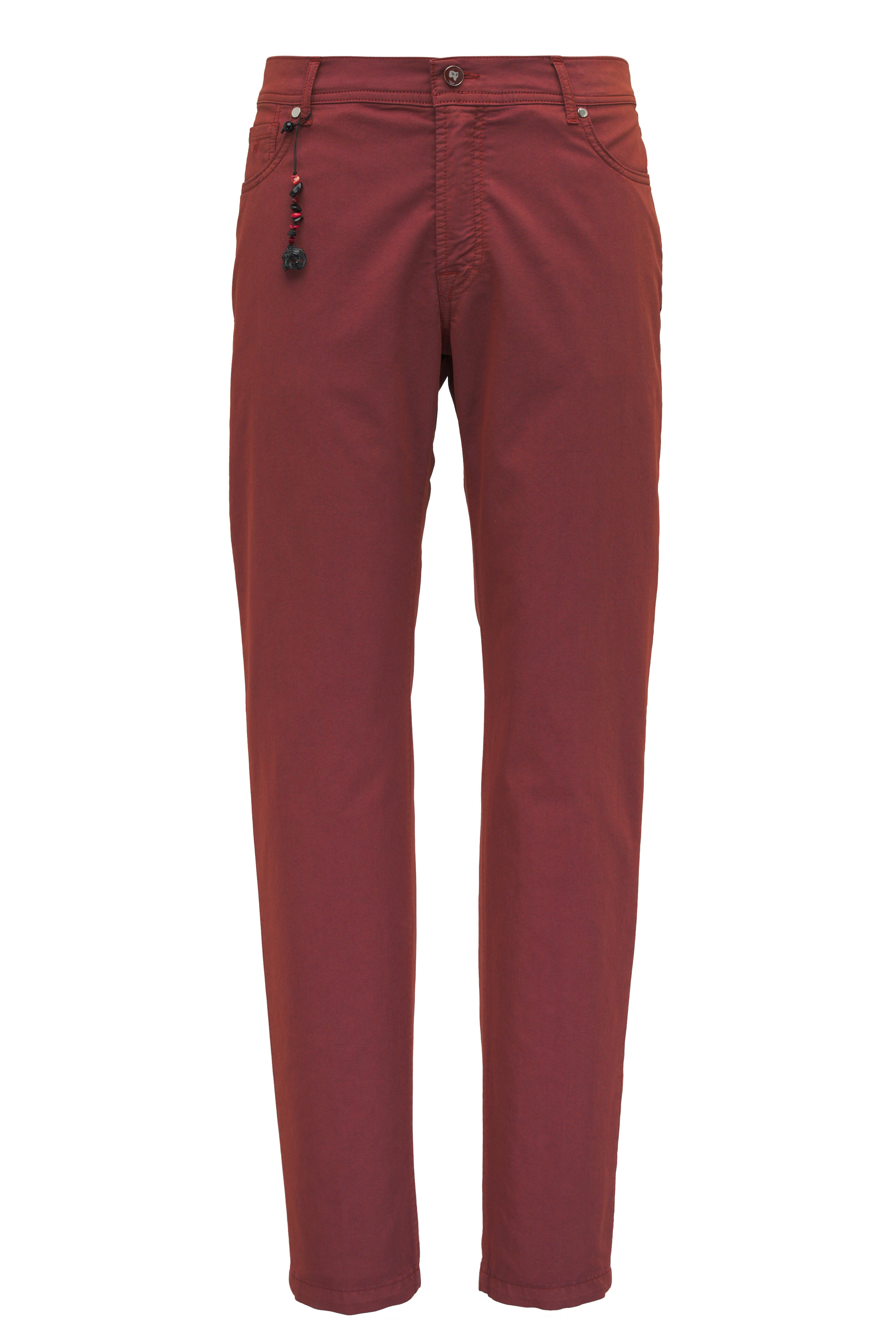 Zip fly with button closure. Banded waistband; belt loops. Five pocket styling. Made in Italy. Inseam 35" (size 36R). 58% cotton, 39% polyester, 3% elastane. Dry clean.