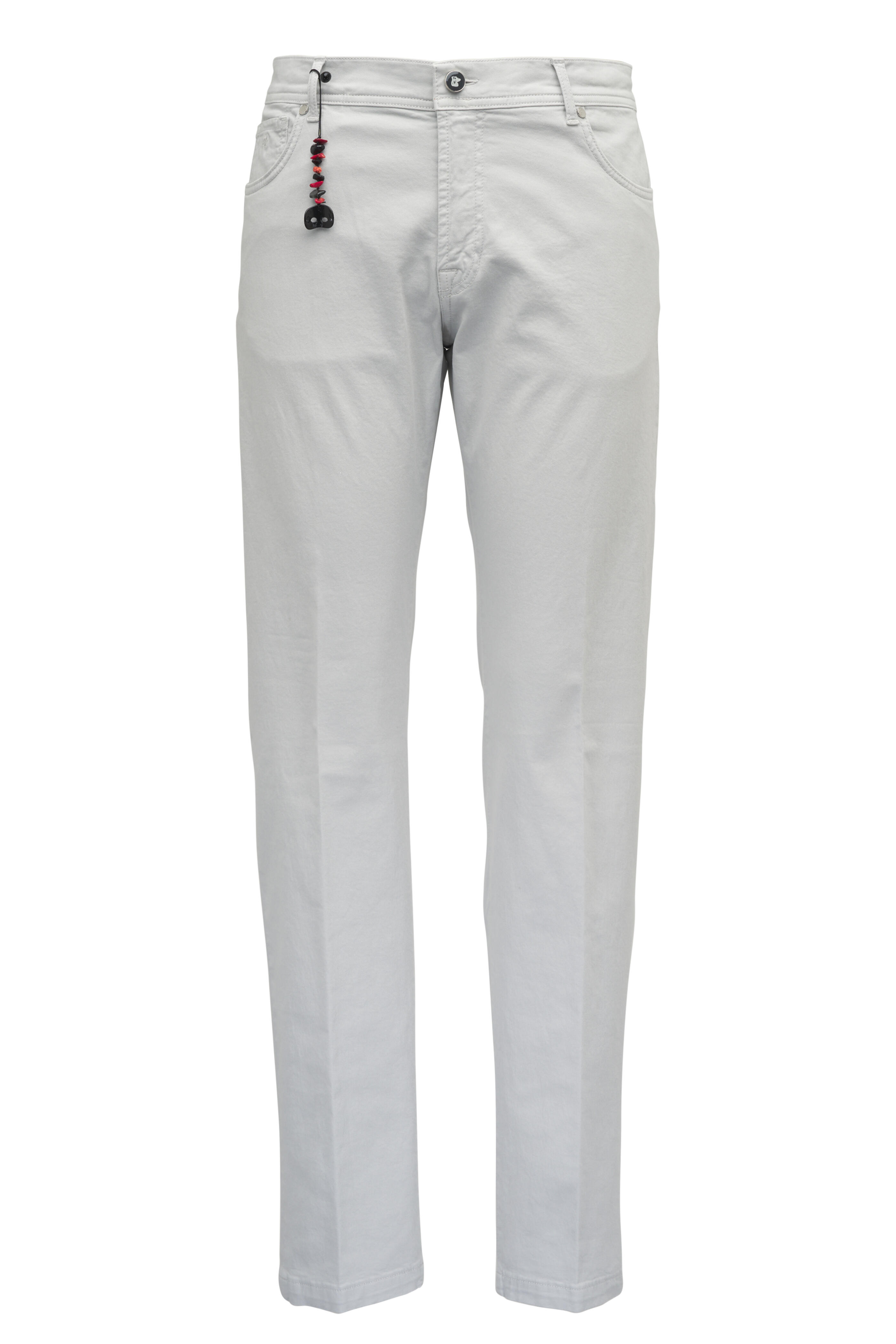 Zip fly with button closure. Five pocket styling. Made in Italy. 34" inseam (Measurements taken from a size 36R).. 98% cotton, 2% elastane. Dry clean.